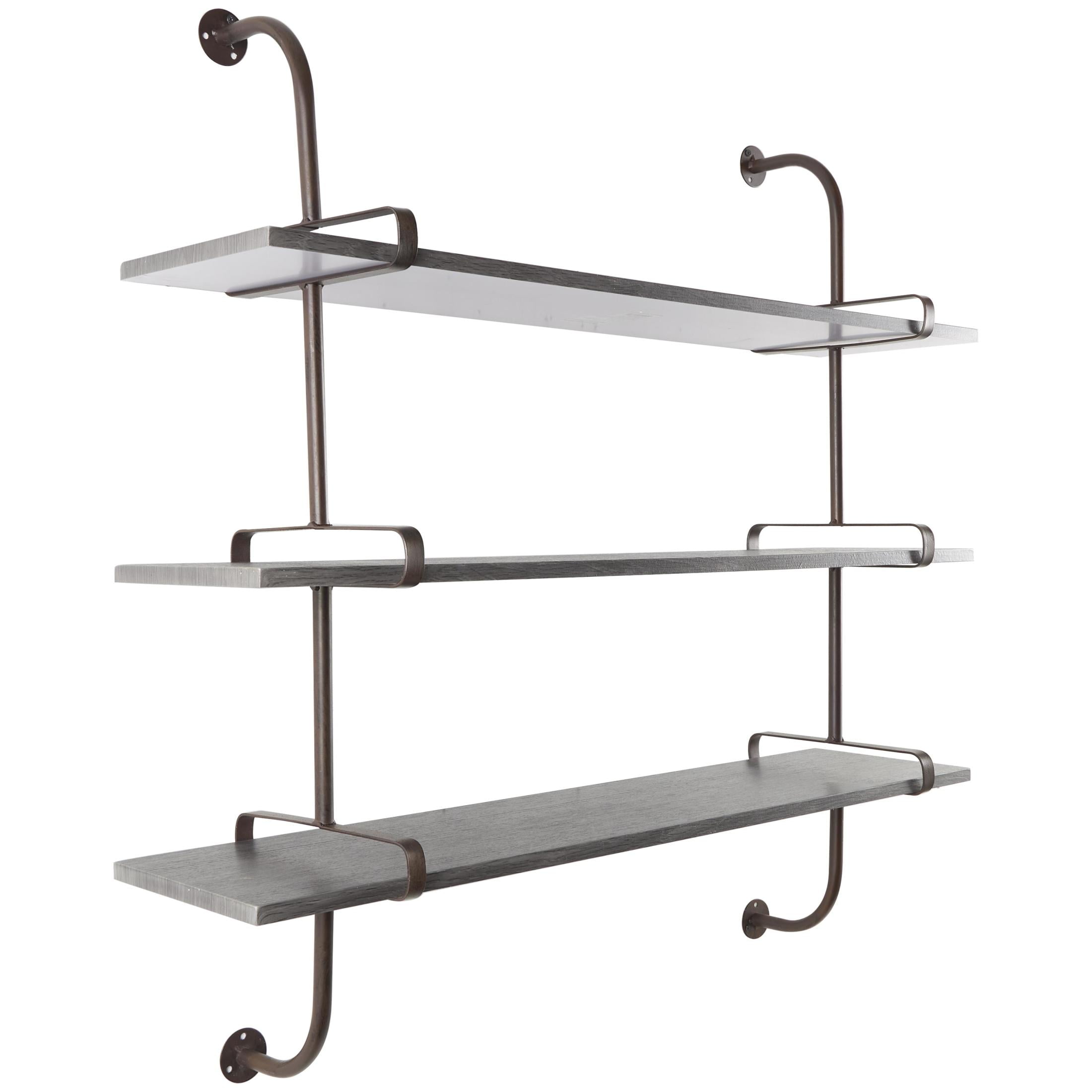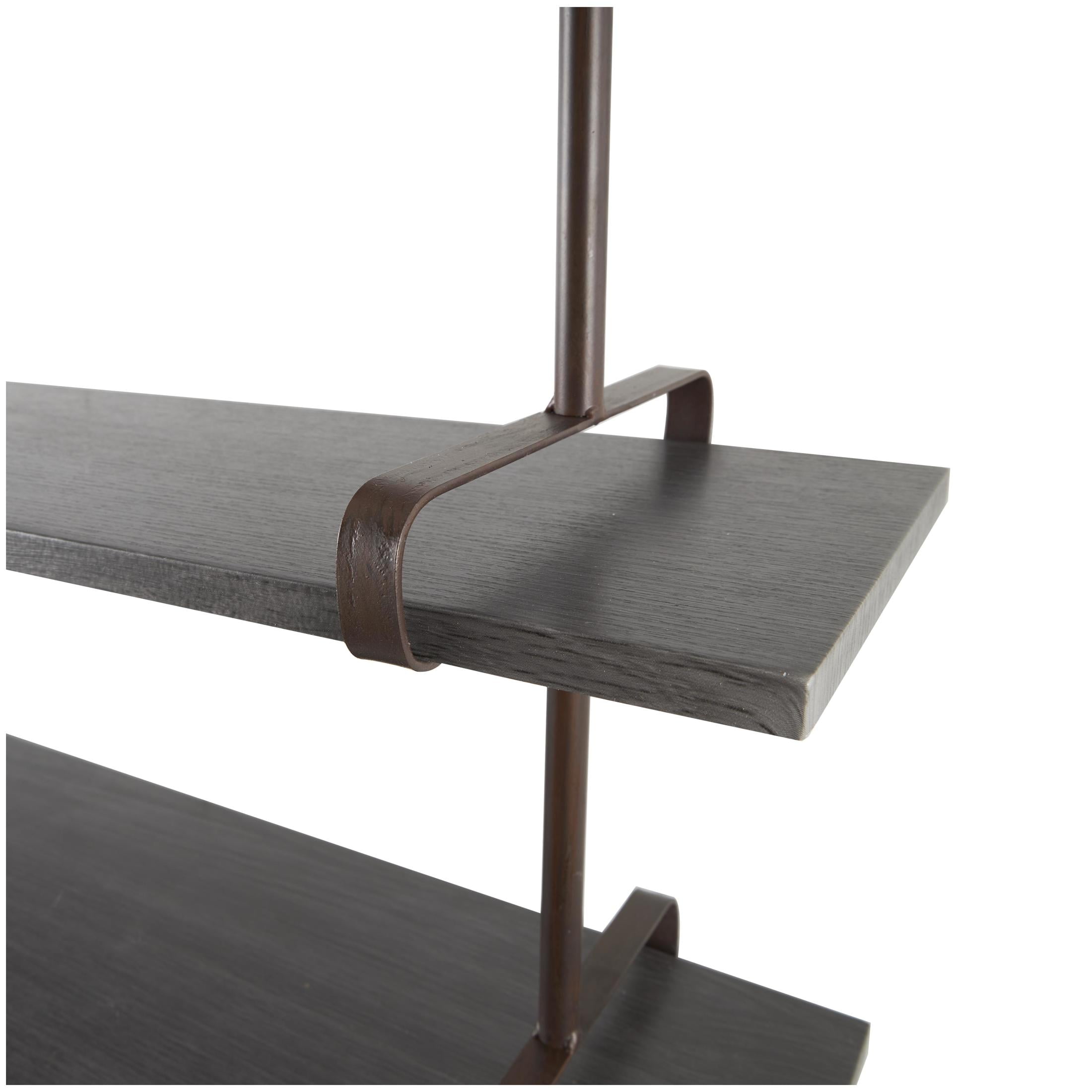 Designed with rugged charm and edgy allure, where metal finishes and raw materials unite to create an urban aesthetic that showcases your artistic expression The gray room wall shelf is crafted from iron, wood, and MDF material, offering a durable and stylish design Rectangular shelf for wall showcases a dark brown frame complemented by gray shelves with an oiled finish, creating a striking contrast The two metal wall brackets feature rectangular cutouts, allowing the wood wall shelf to slide securely into place The gray wood wall shelf measures 38L x 10W x 38.50H inches, and weighs 21 lbs Oiled gray room floating shelf showcases three rectangular shelving units and two side metal bars with decorative top and bottom mounting features Wipe clean with a dry cloth Industrial mounted wall shelf is crafted with welded iron bars, providing a sturdy support for the wooden shelves Industrial style DecMode 38″ x 10″ 3-Tier Gray Wall Shelf with Black Metal Brackets makes a perfect addition to any home
