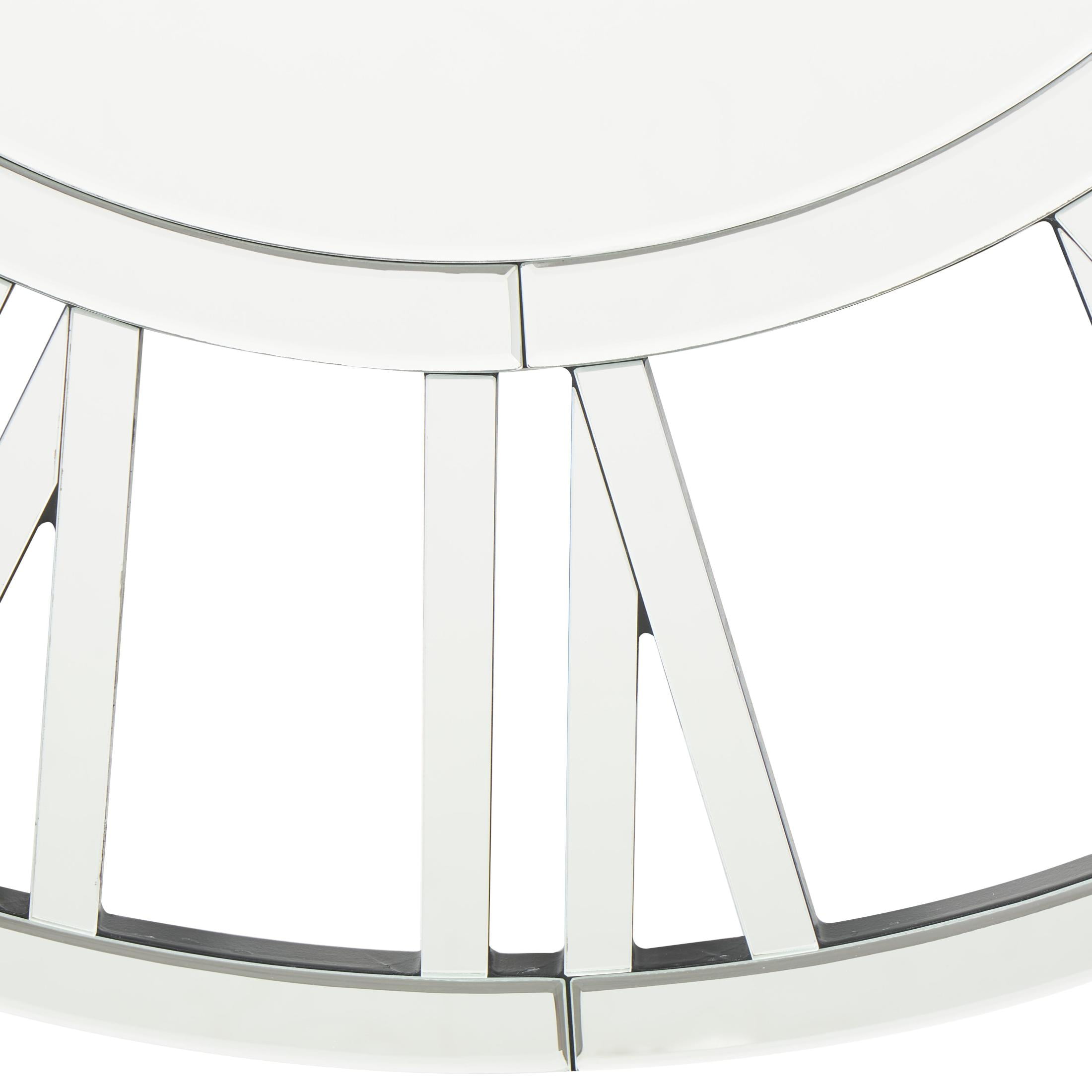 Embrace artistic expression with a style that highlights bold designs with sleek lines, neutral elements, and a minimalist aesthetic The frame and face are crafted from glass with an MDF backing, creating a striking, silver decorative wall clock Round wall clock for decoration features a polished silver finish with a glass panel at the center contrasted by black hands Glass wall clock features an easy-to-read dial with large Roman numerals, making it perfect for keeping track of time in any space The silver glass wall clock measures 39.50L x 0.75W x 39.50H inches, and weighs 20 lbs Polished silver oversized wall clock features a round frame with Roman numerals and tapered hands, embodying timeless style and elegance Wipe clean with a dry cloth Contemporary wall clock for kitchen is molded from glass, with MDF used for the backing Contemporary style DecMode 40″ Silver Glass Mirrored Wall Clock makes a perfect addition to any home