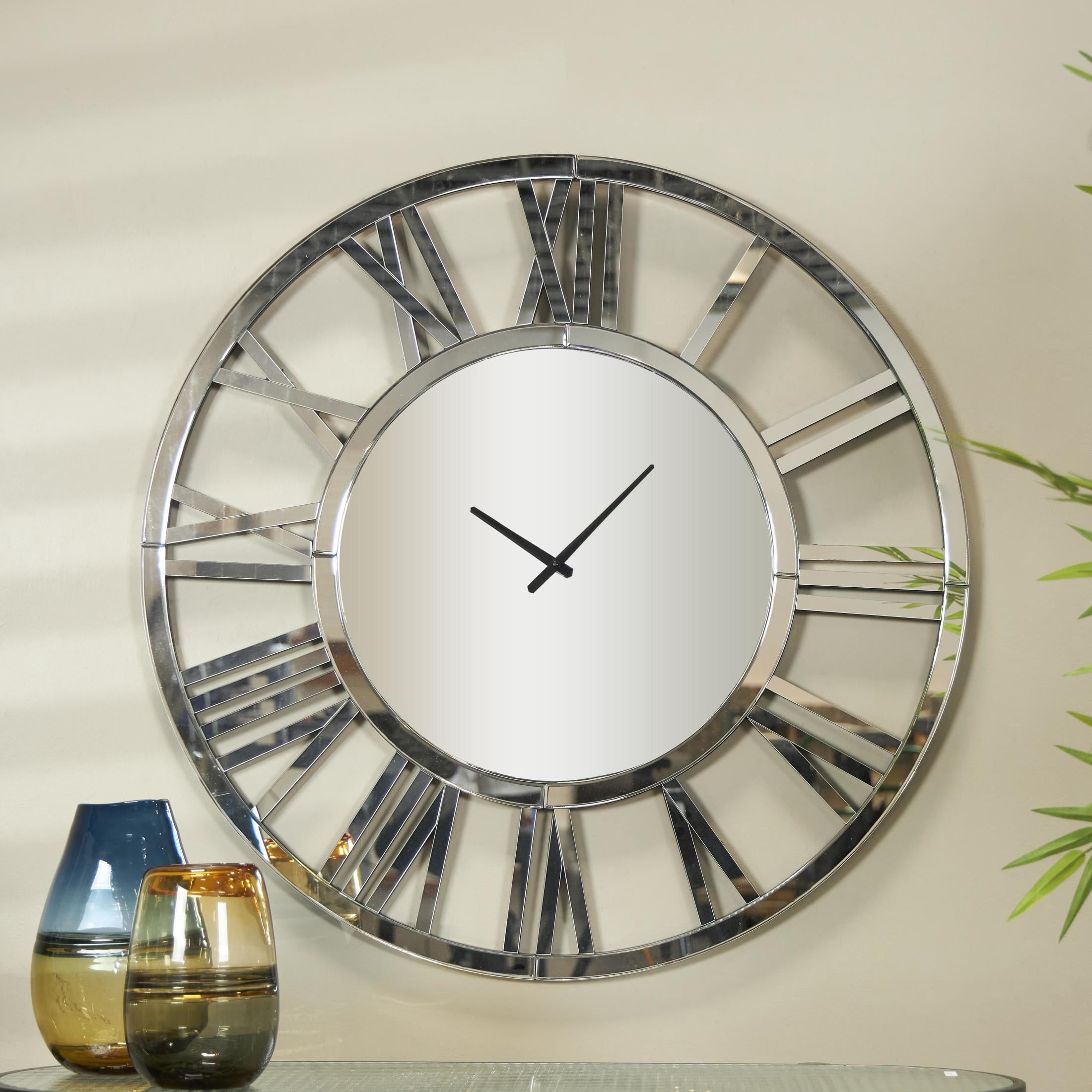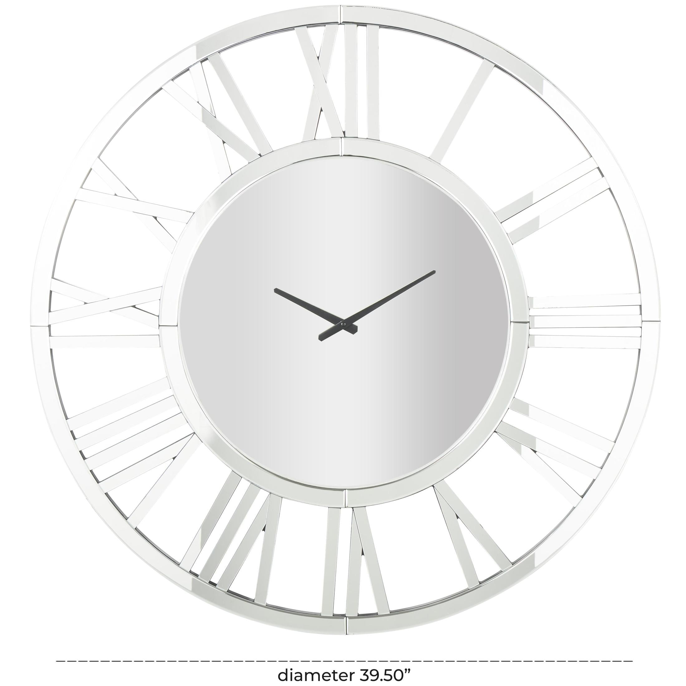 DecMode 40″ Silver Glass Mirrored Wall Clock