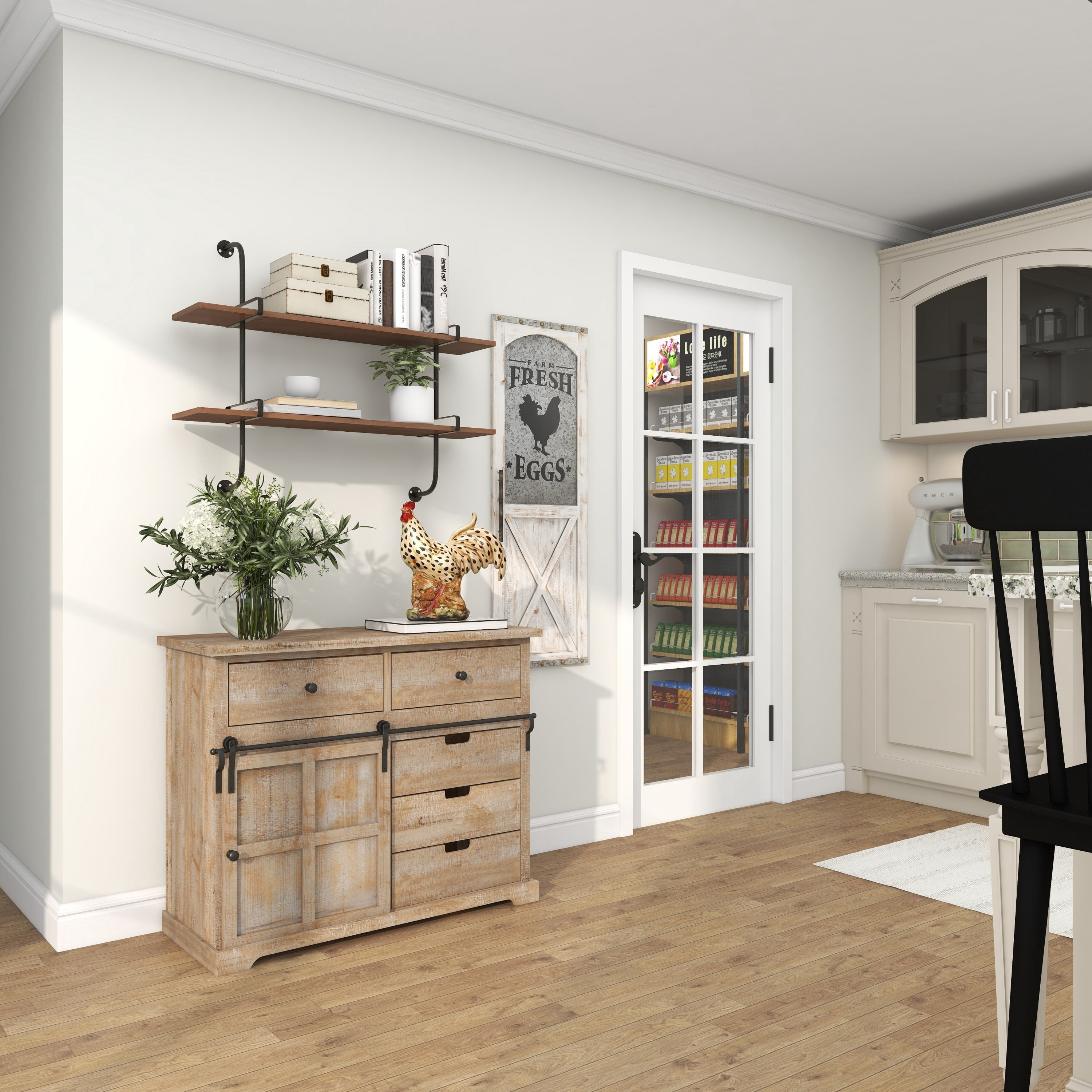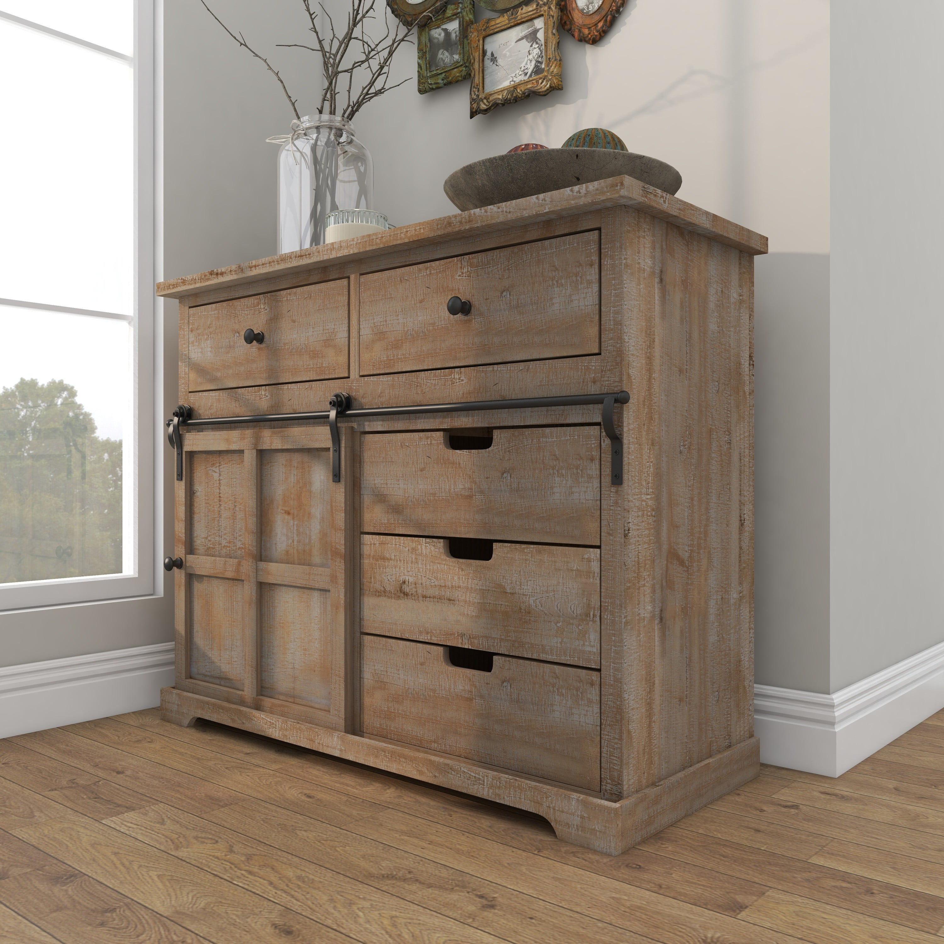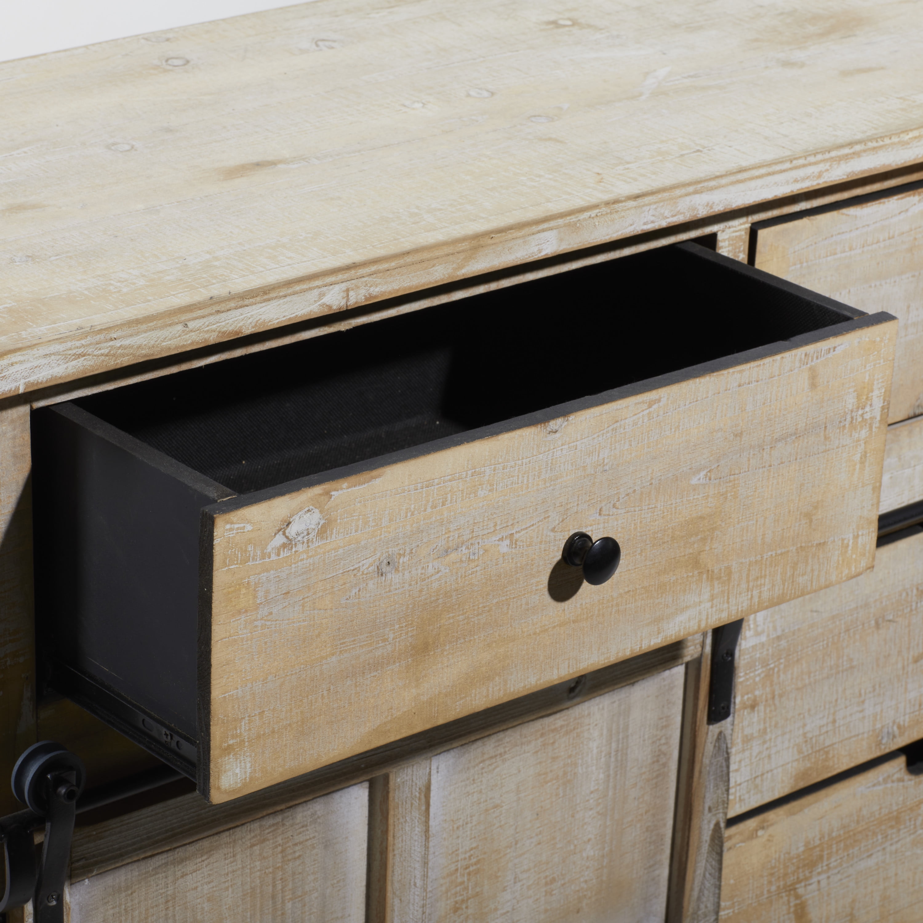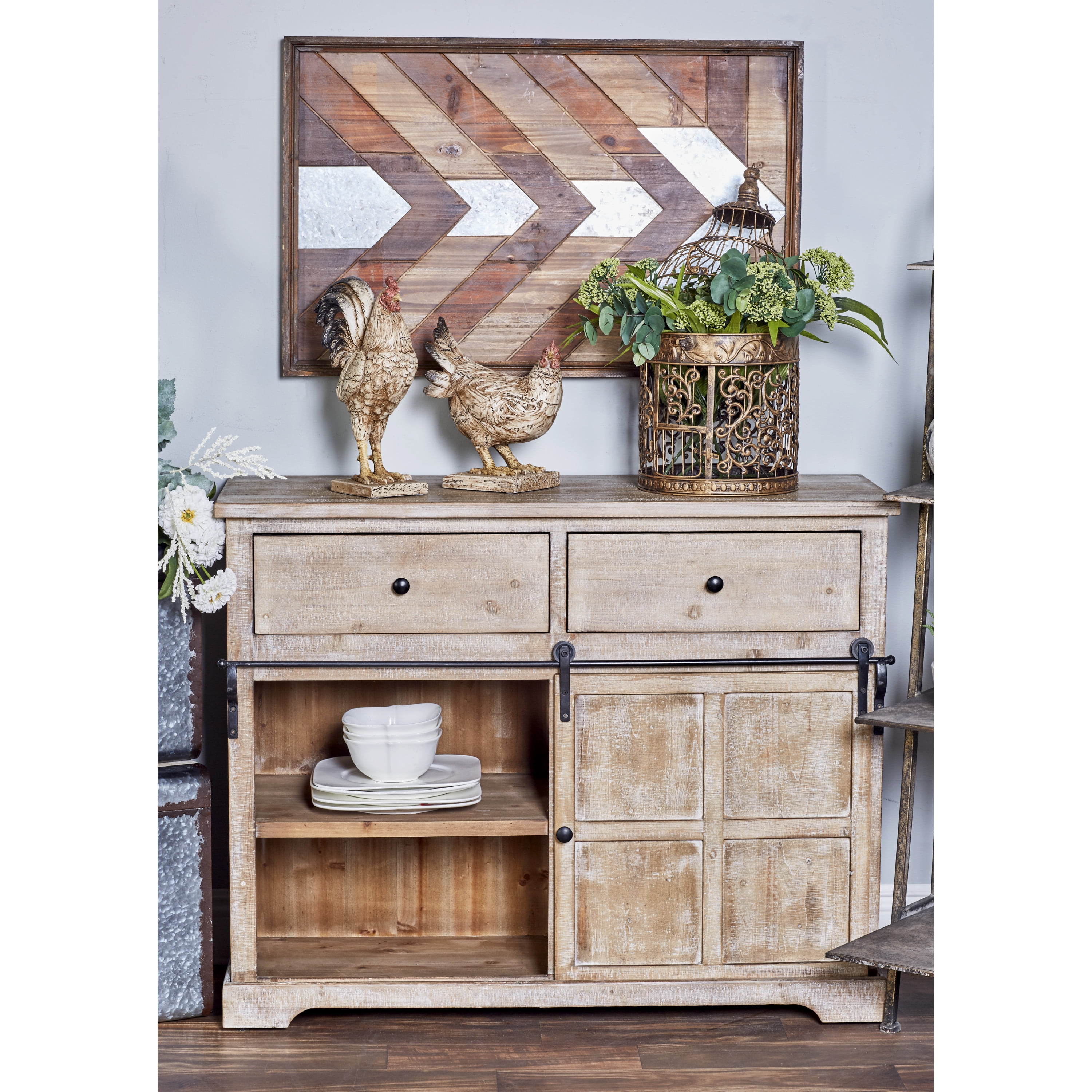 Infuse your home with cozy charm, where weathered textures, rustic finishes, and warm earthy tones create a wholesome atmosphere Large storage chest made from Chinese fir wood and pine wood with iron hardware and handles Farmhouse sideboard cabinet carries a natural light brown finish with whitewash distressing and black metal hardware Brown wooden storage unit features a combinations of pull out drawers and a sliding cabinet door for whimsical yet eye catching display This item measures 40.50L x 15.50W x 32H inches, and weighs 54 lbs This cabinet features rectangular drawers and a square cabinet with an elevated base Wipe clean with a dry cloth This cabinet is shaped and attached wood materials with shaped metal Farmhouse style DecMode 41″ x 32″ Brown Wood 5 Drawers 1 Shelf and 1 Door Cabinet, 1-Piece makes a perfect addition to any home