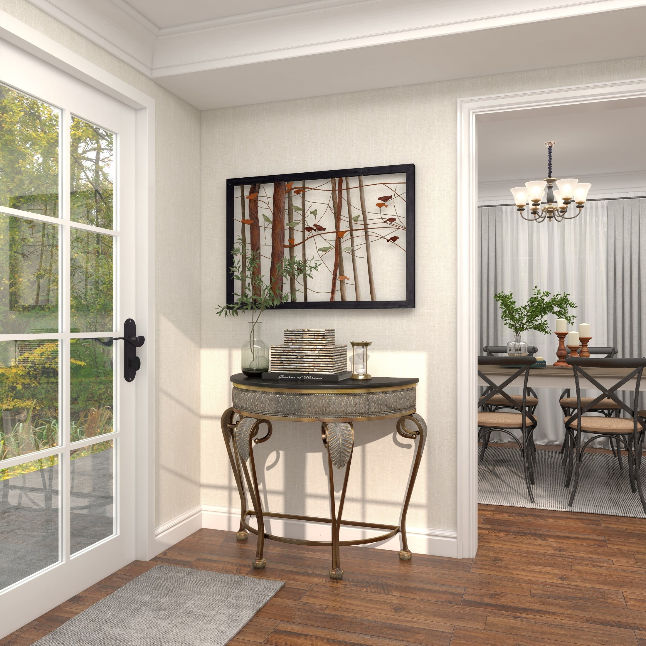 DecMode 41″ x 33″ Gold Metal Embossed Leaf Console Table with Ornate Scroll Legs, 1-Piece