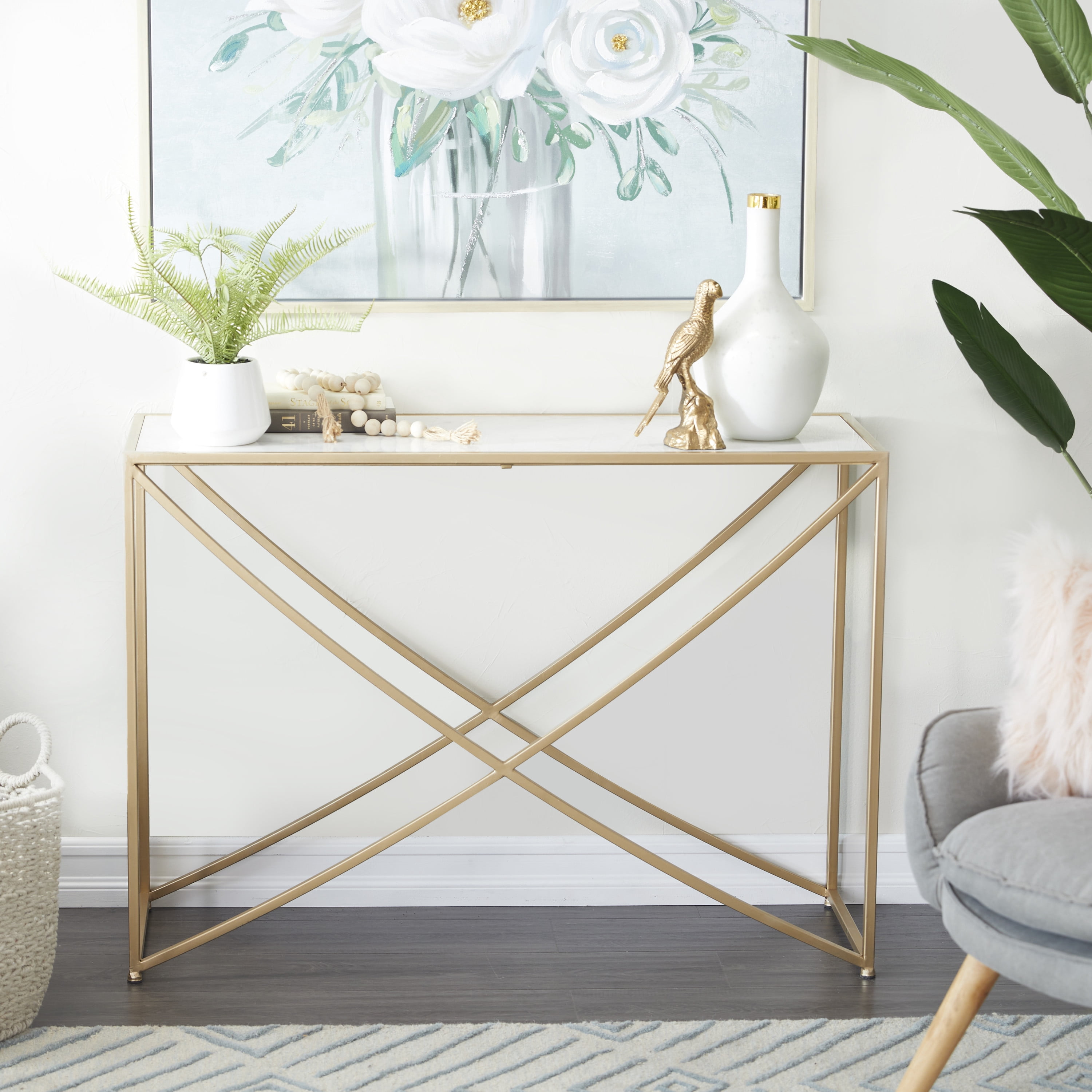 DecMode 42″ x 30″ Gold Metal Console Table, 1-Piece
