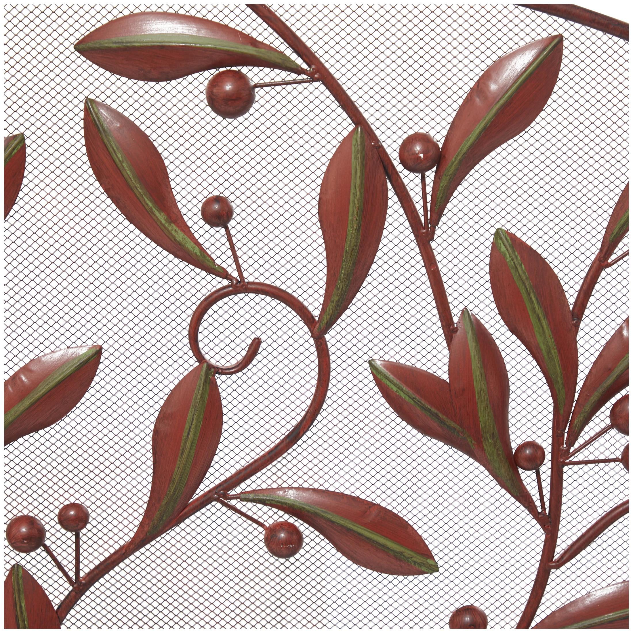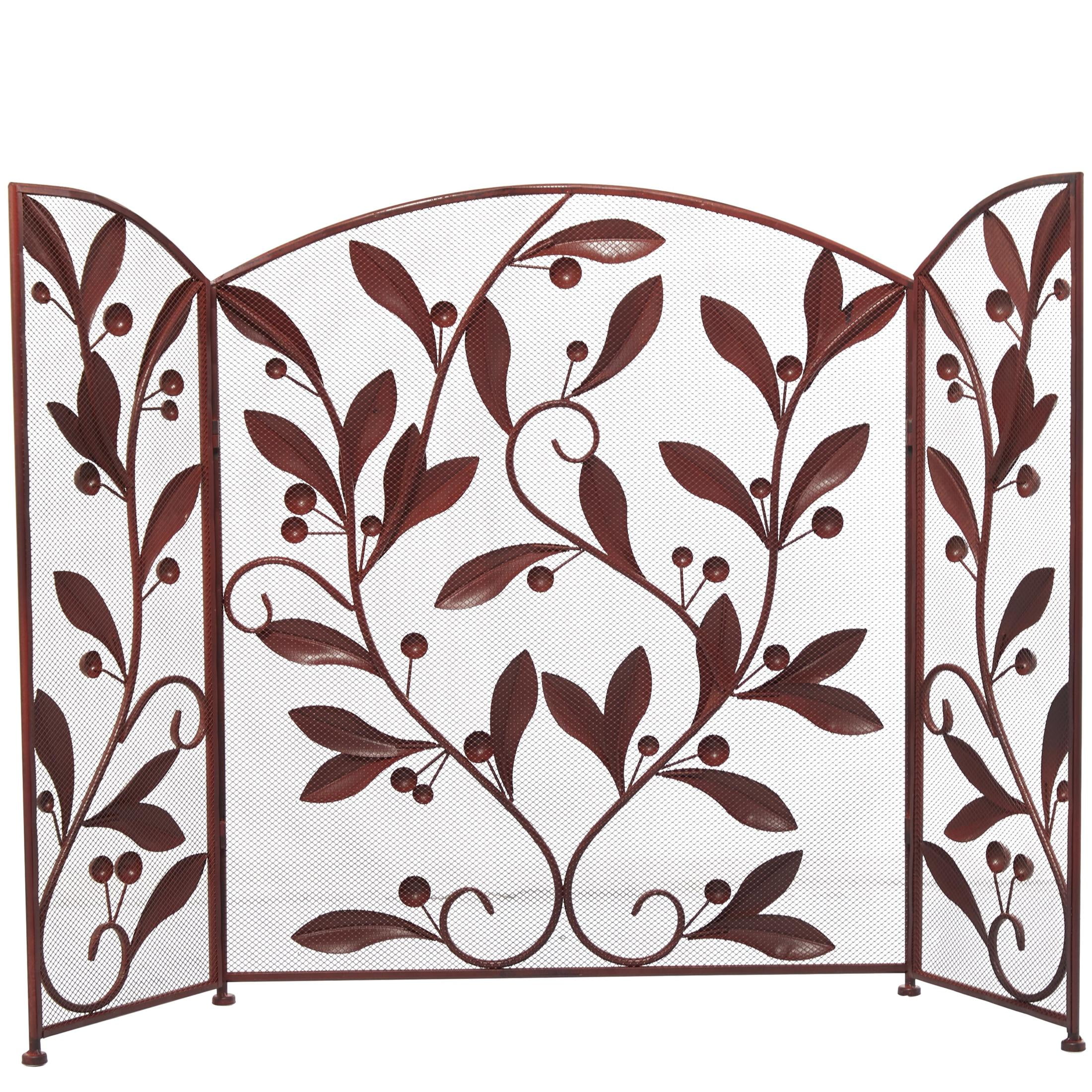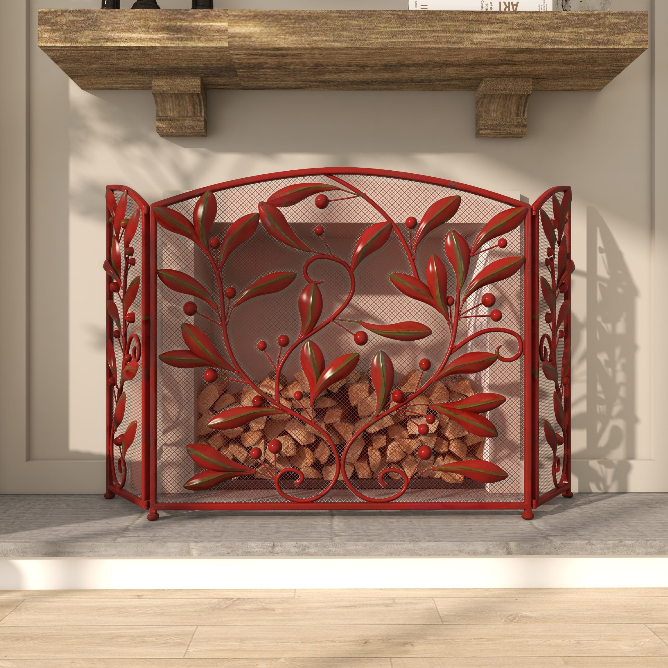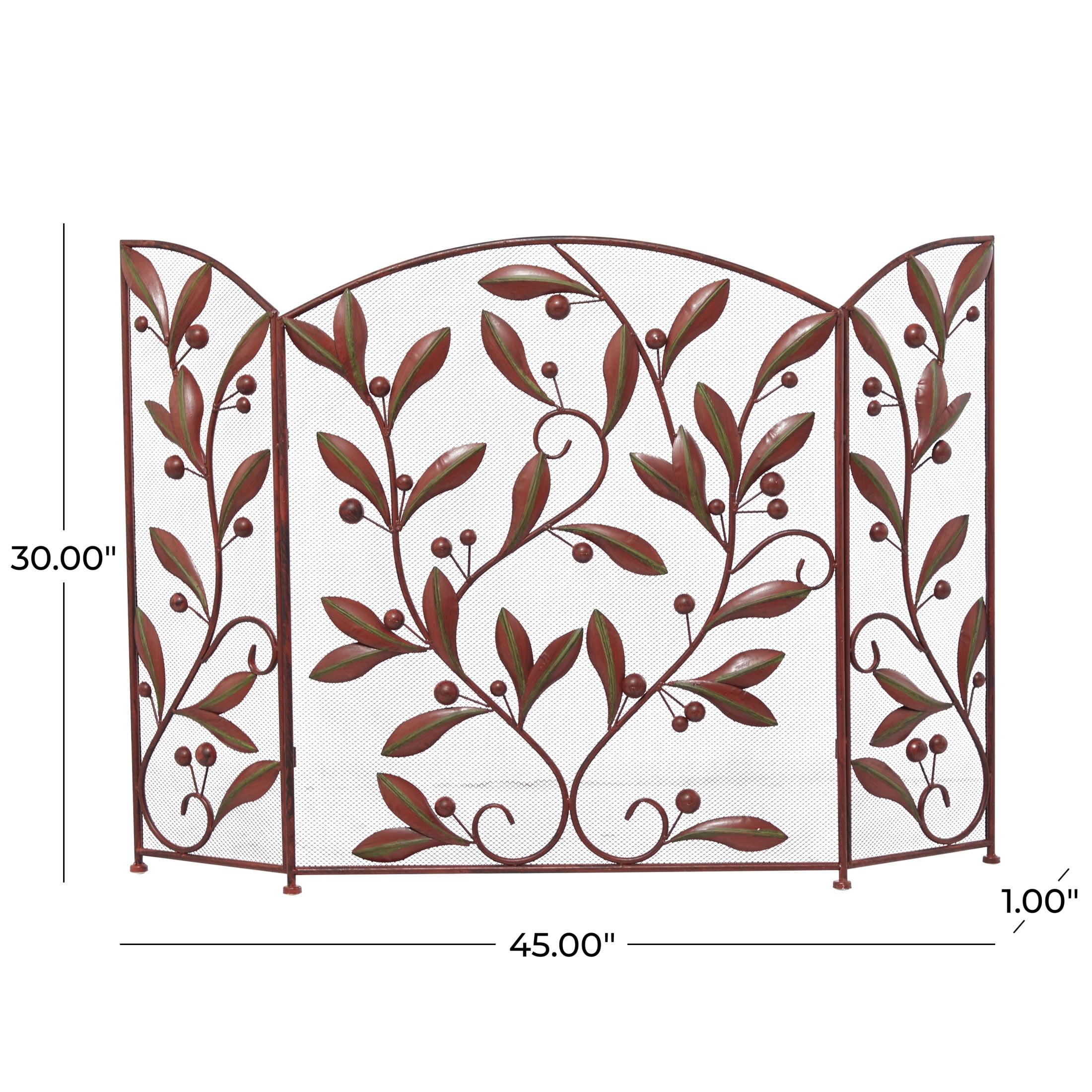 DecMode 45″ x 30″ Red Metal Foldable Mesh Netting 3 Panel Leaf Fireplace Screen with Leaf and Vine Relief, 1-Piece