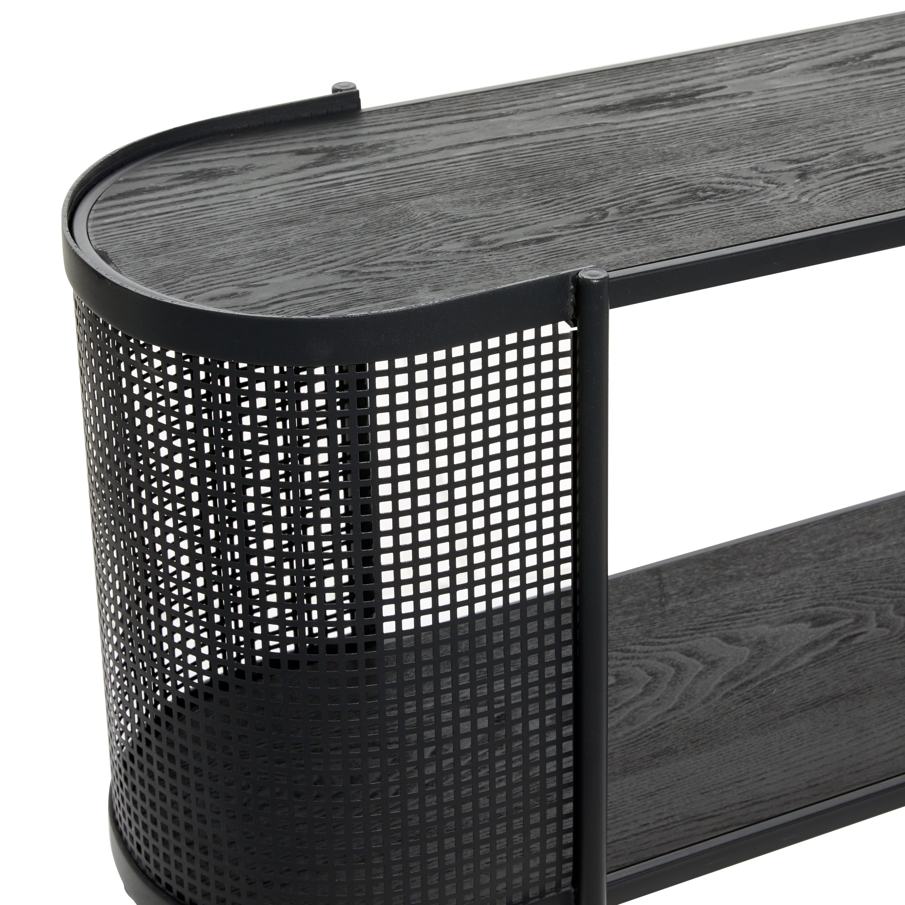 DecMode 47″ x 32″ Black Metal Mesh Side Panel 1 Shelf Console Table with Open Center Storage, 1-Piece