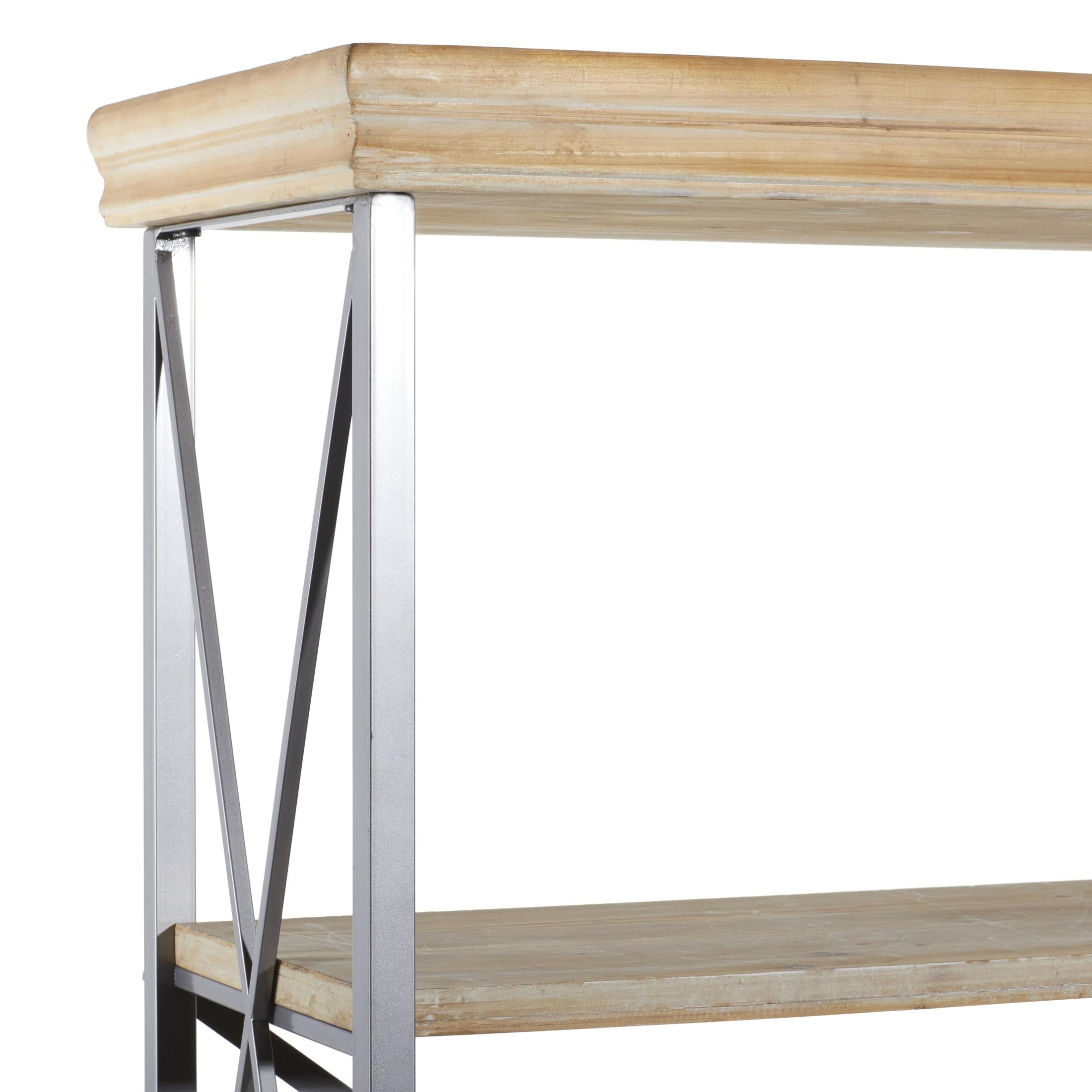 Designed with rugged charm and edgy allure, where metal finishes and raw materials unite to create an urban aesthetic that showcases your artistic expression The brown storage shelving unit is crafted from fir wood and iron, ensuring durability and style Rectangular shelf organizer boasts a silver frame and light brown wooden shelves with an oiled finish, providing a sophisticated blend of industrial tones The fir shelving unit boasts an X-shaped frame and tall rectangular sides that support thick wooden shelves for a sturdy display The brown wood shelving unit measures 48L x 17W x 72H inches, and weighs 58.50 lbs Oiled brown corner shelving unit showcases an X-shaped metal supports, and sleek rectangular wooden shelves with natural wood grain pattern Wipe clean with a dry cloth Industrial standing shelving unit is constructed with precisely cut wood panels and expertly welded metal rods for strength Industrial style DecMode 48″ x 72″ Brown Wood 5-Tier Shelving Unit with Gray Metal X-Frame, 1-Piece makes a perfect addition to any home