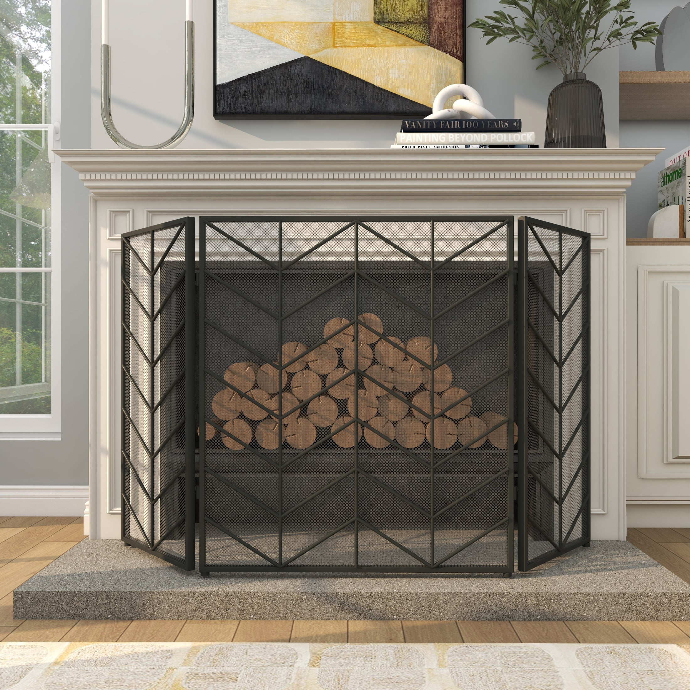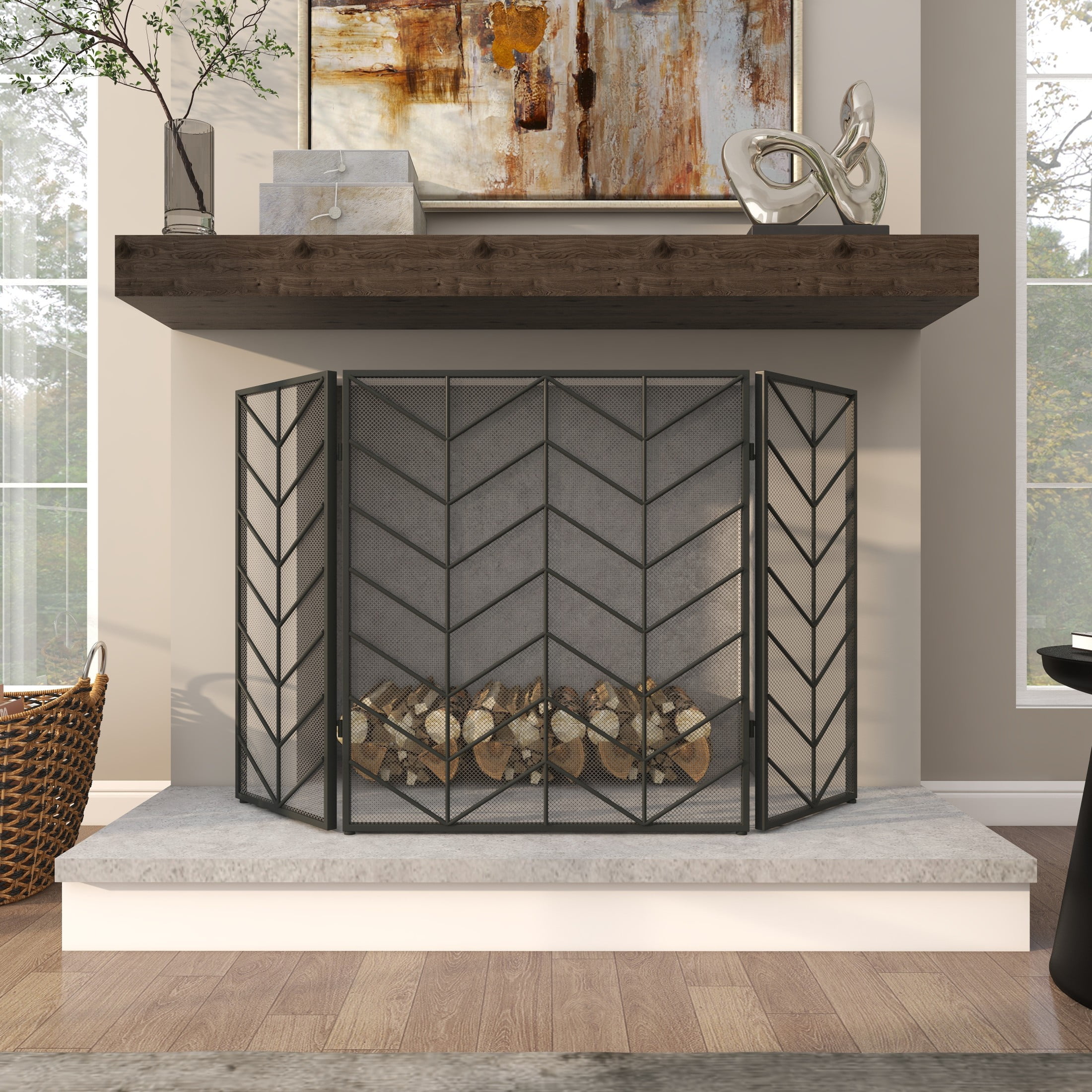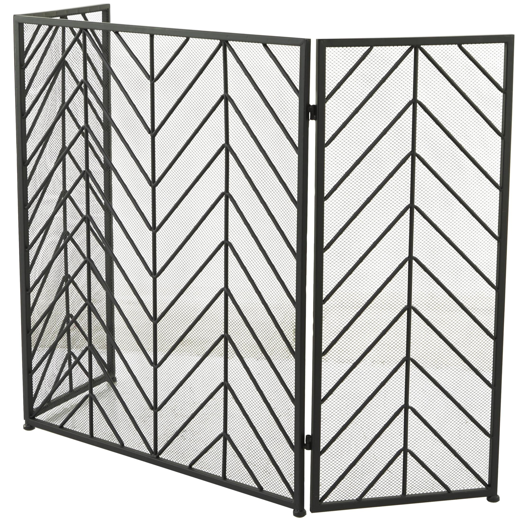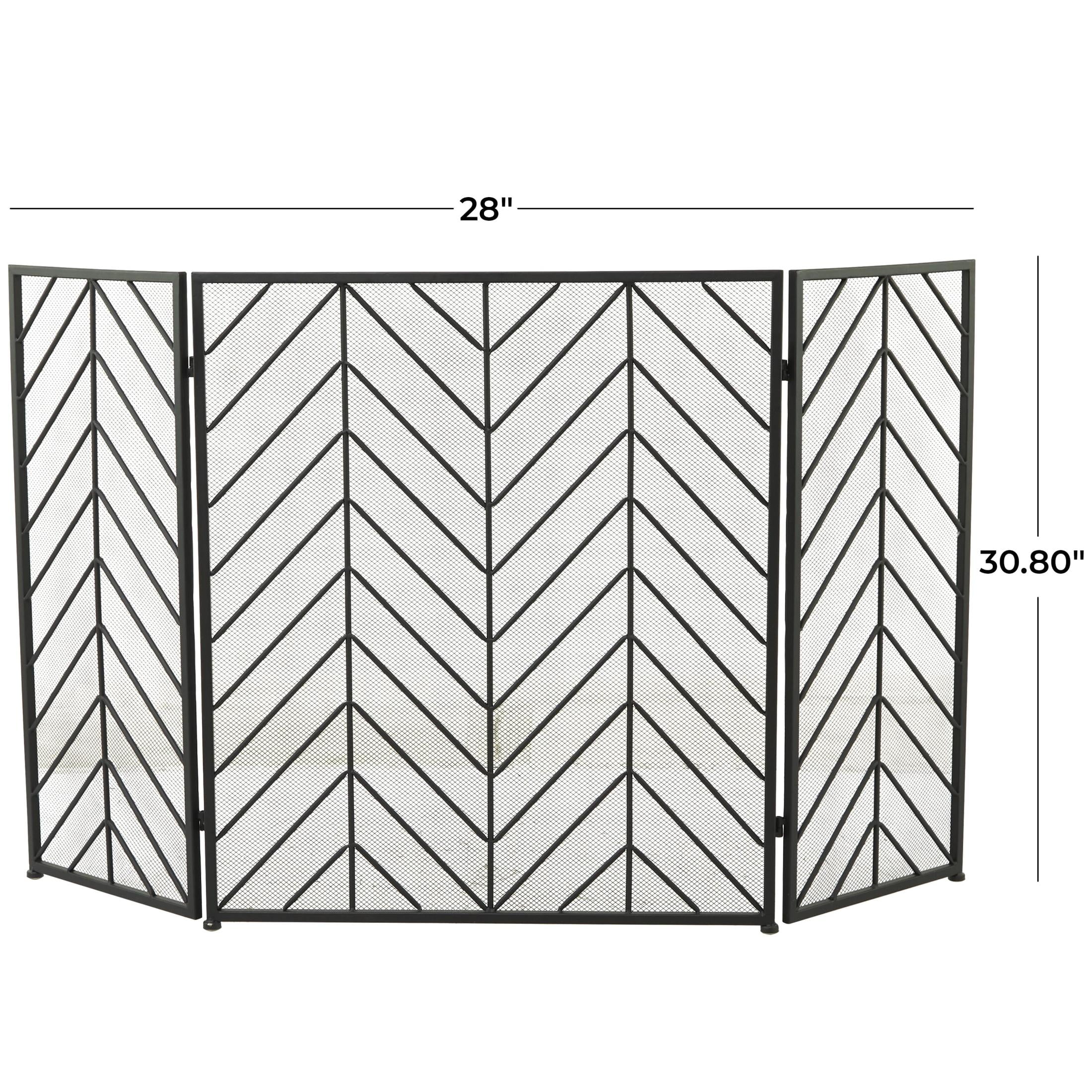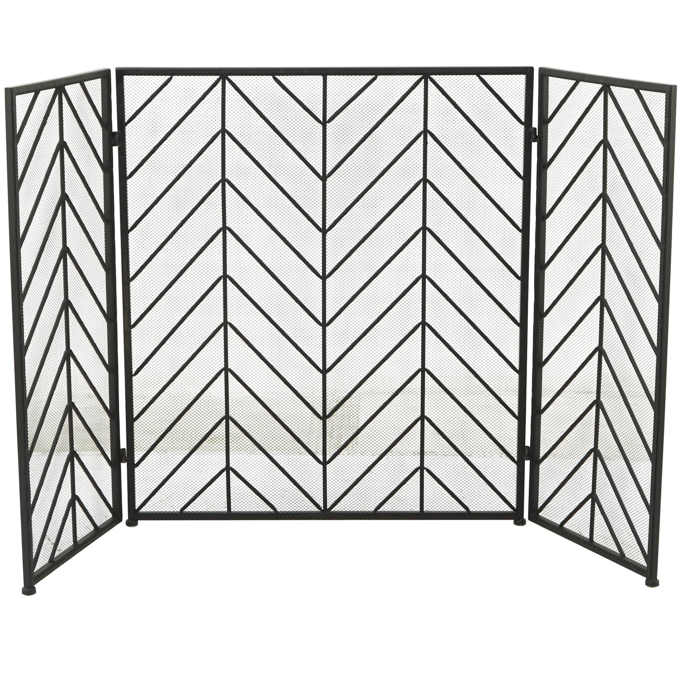 DecMode 52″ x 31″ Black Metal Zig Zag Foldable Chevron 3 Panel Geometric Fireplace Screen with Mesh Netting, 1-Piece