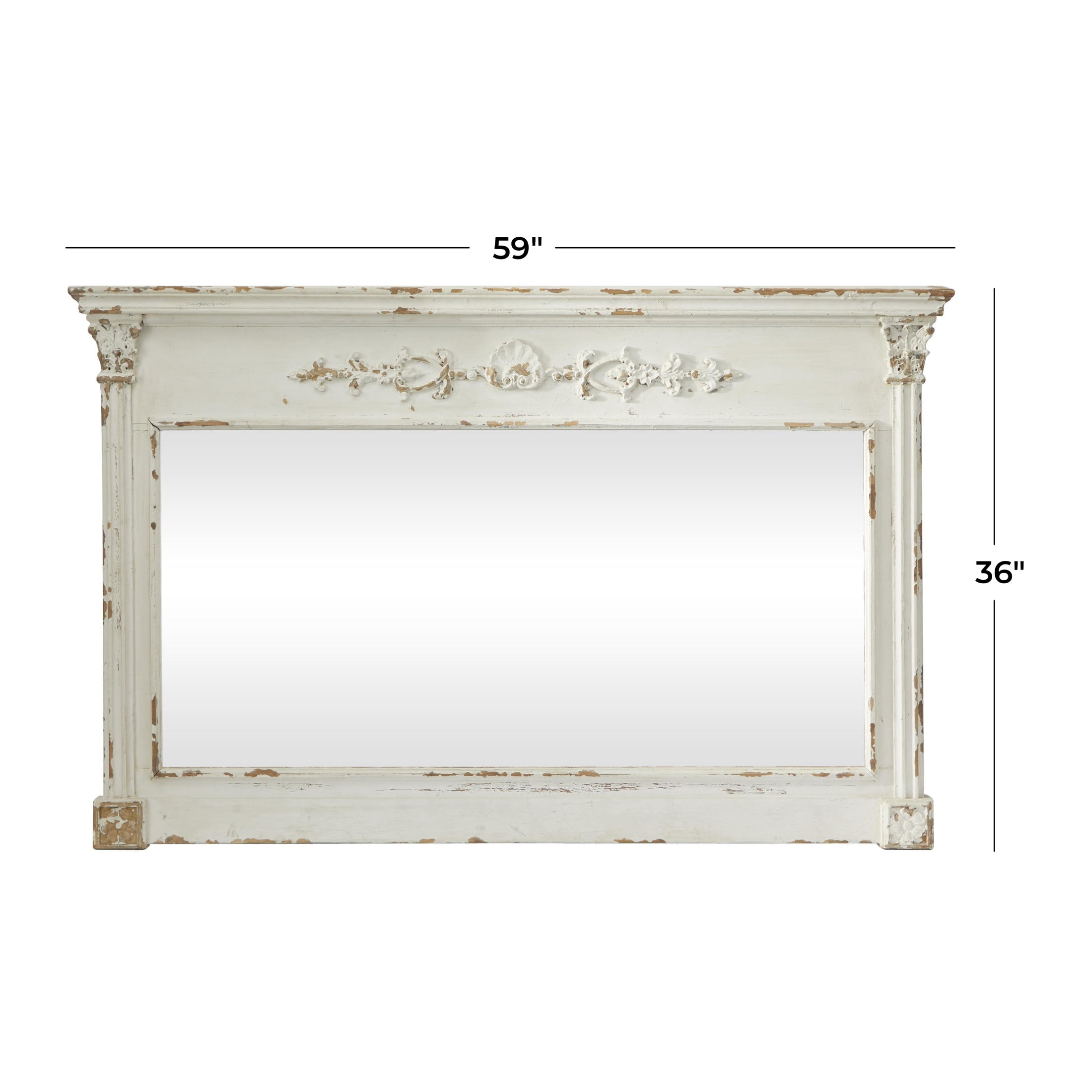 DecMode 59″ x 36″ Cream Carved Floral Wall Mirror with Distressing