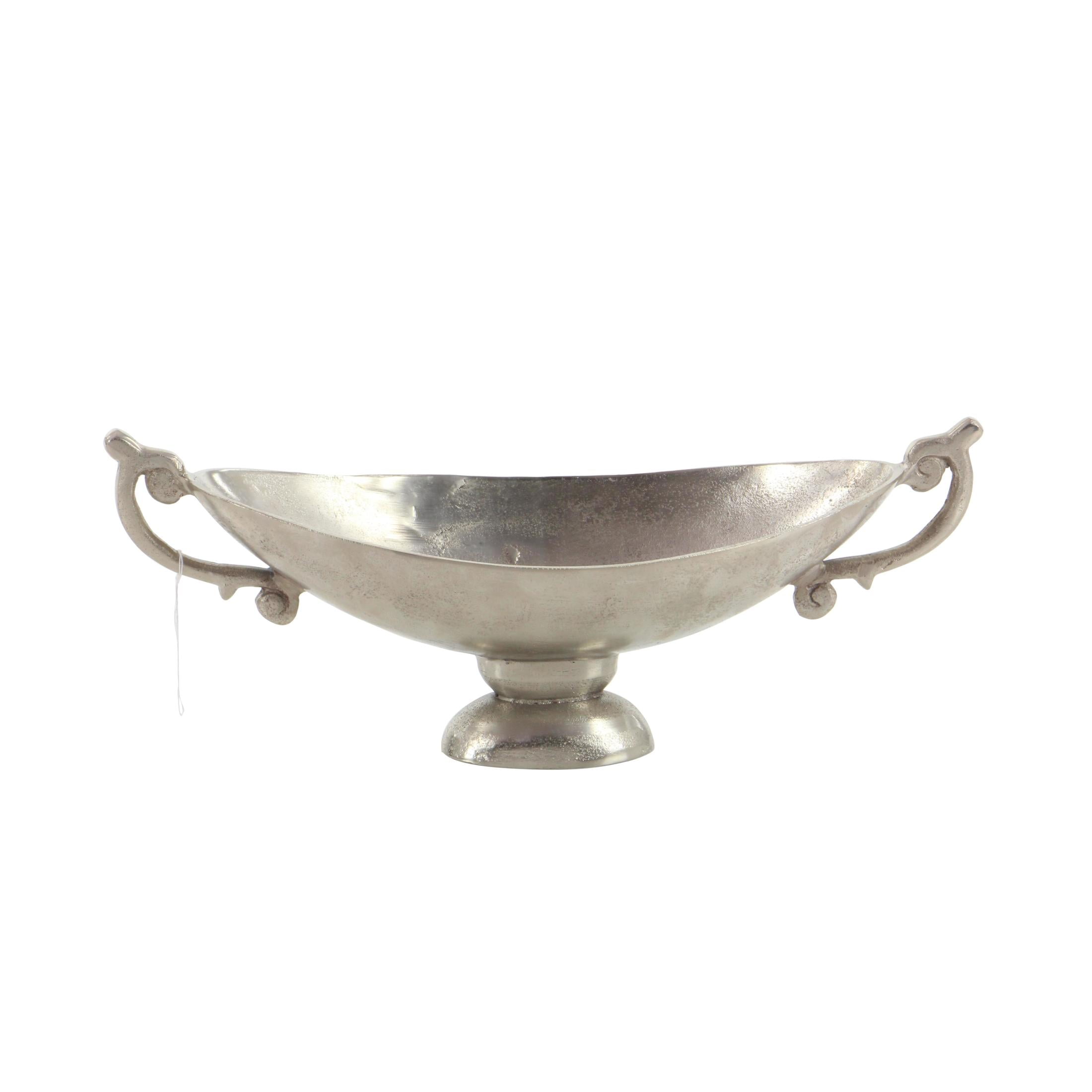 DecMode 8″ Oval Silver Aluminum Metal Decorative Bowl with Handles