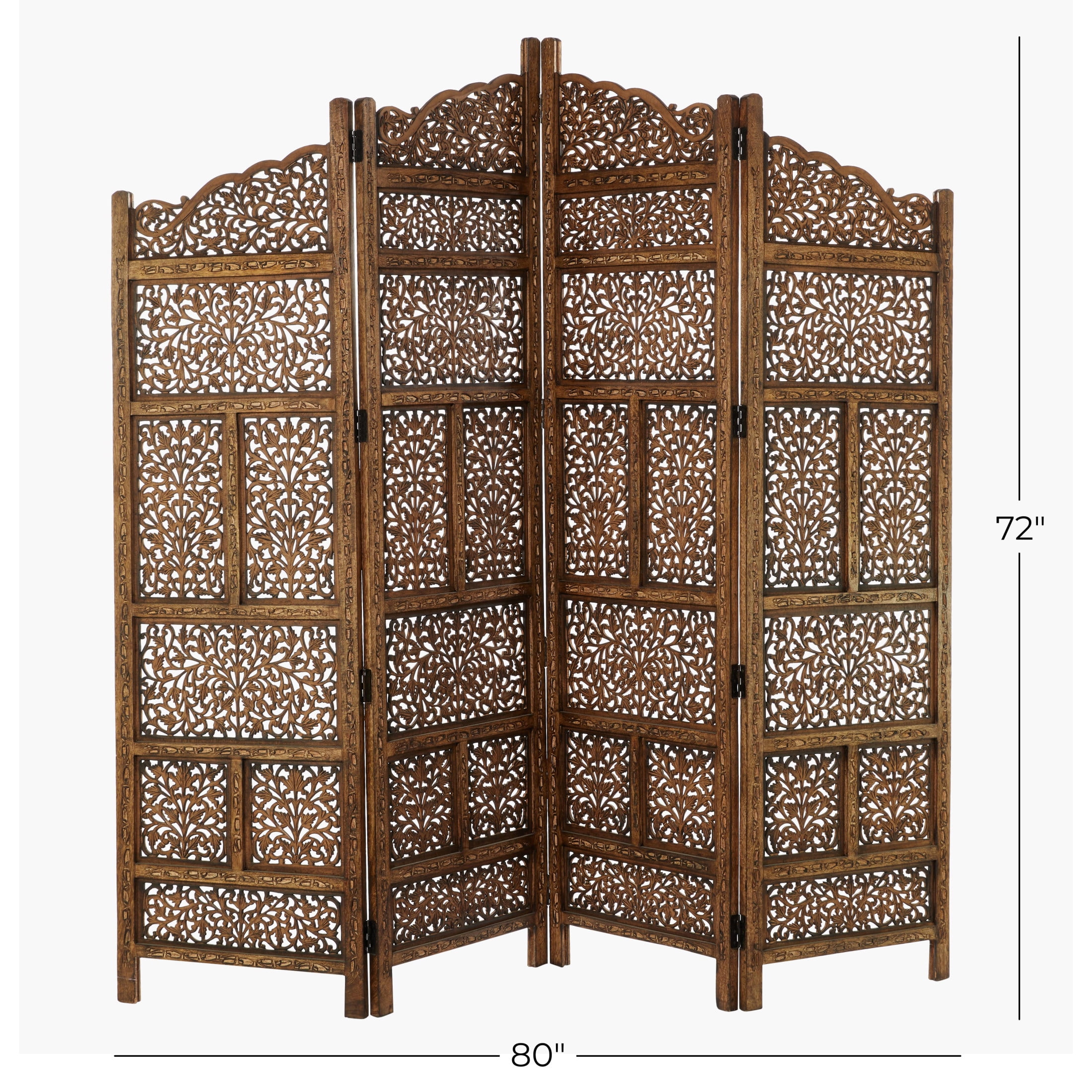 DecMode 80″ x 72″ Brown Wooden Floral Handmade Foldable Partition 4 Panel Room Divider Screen with Carved Designs, 1-Piece