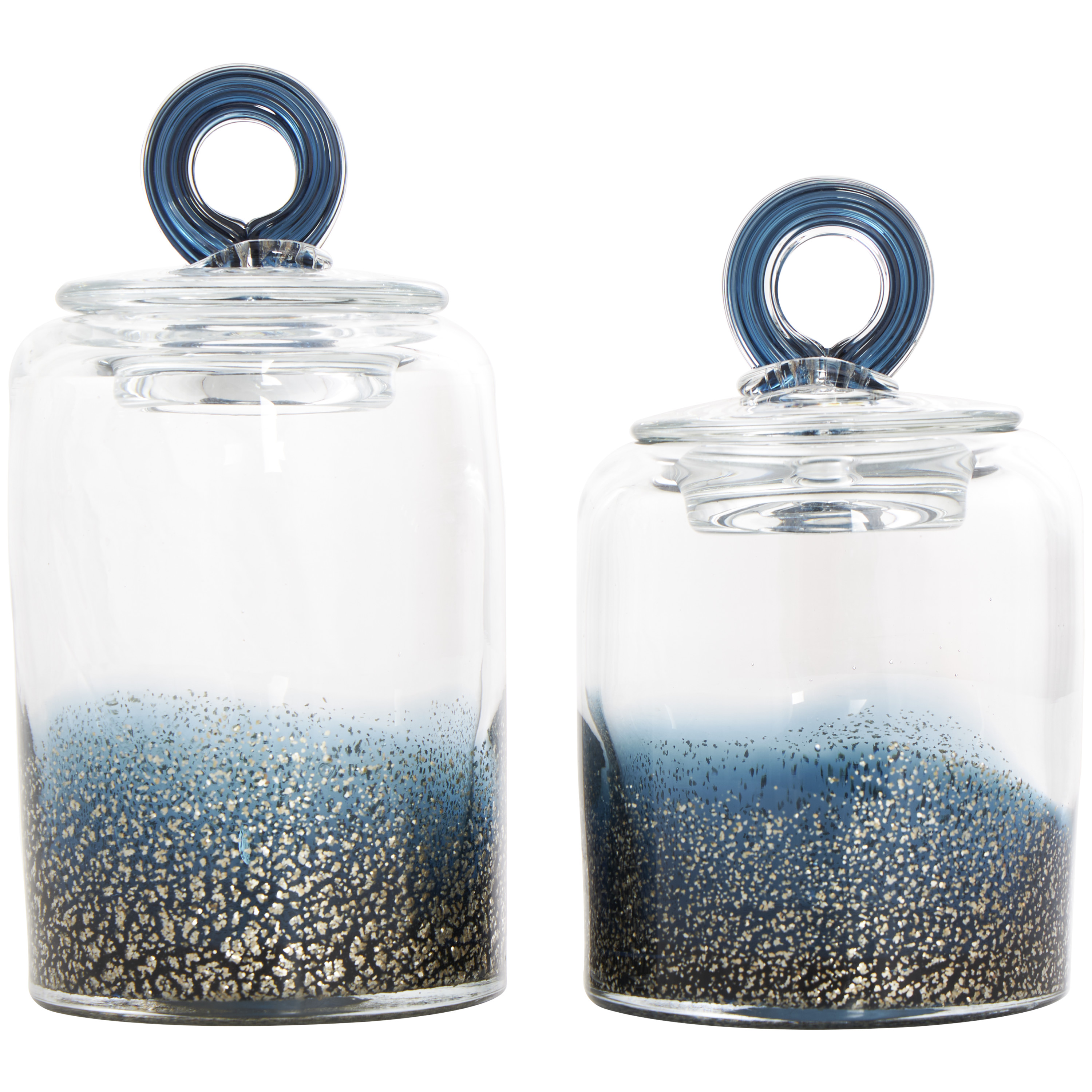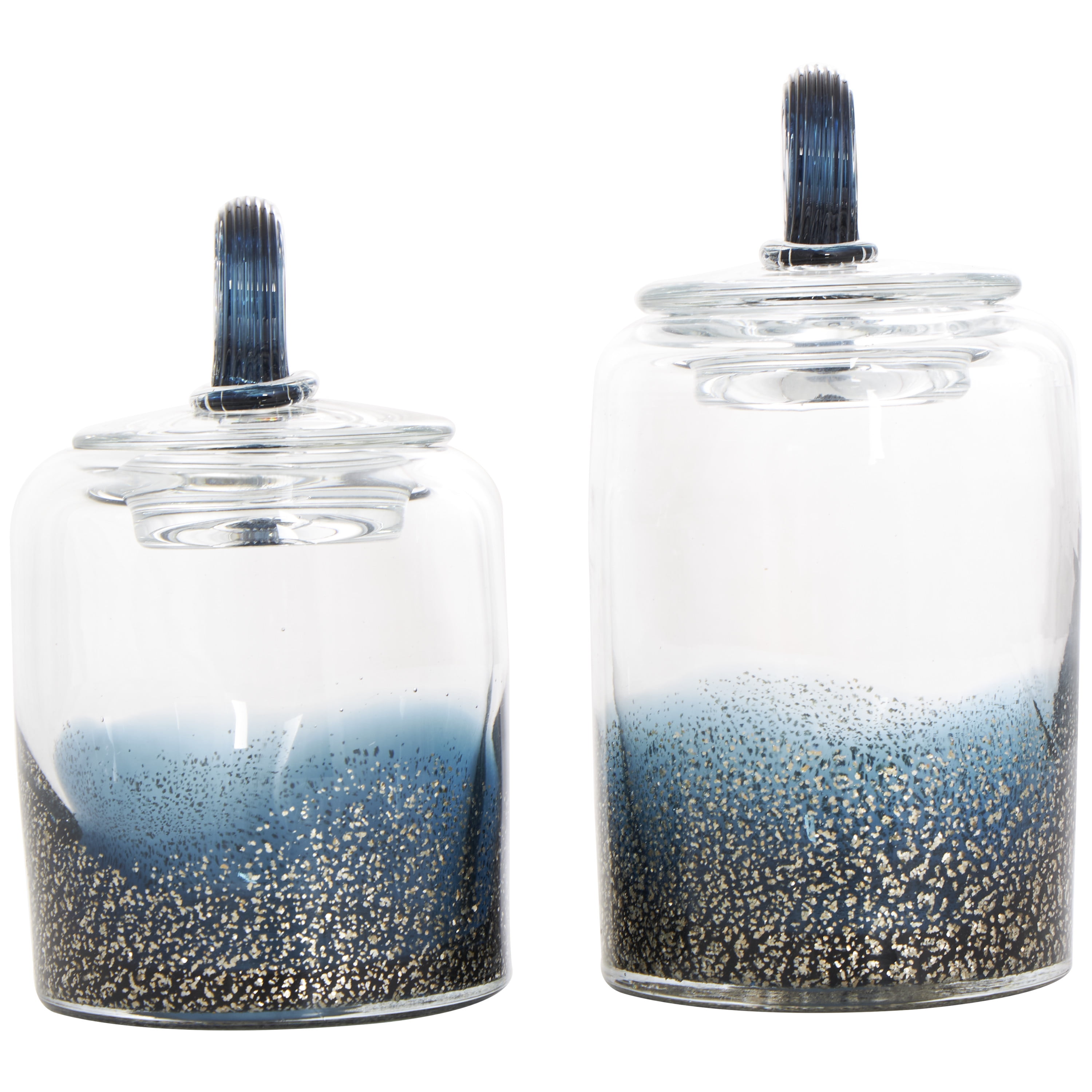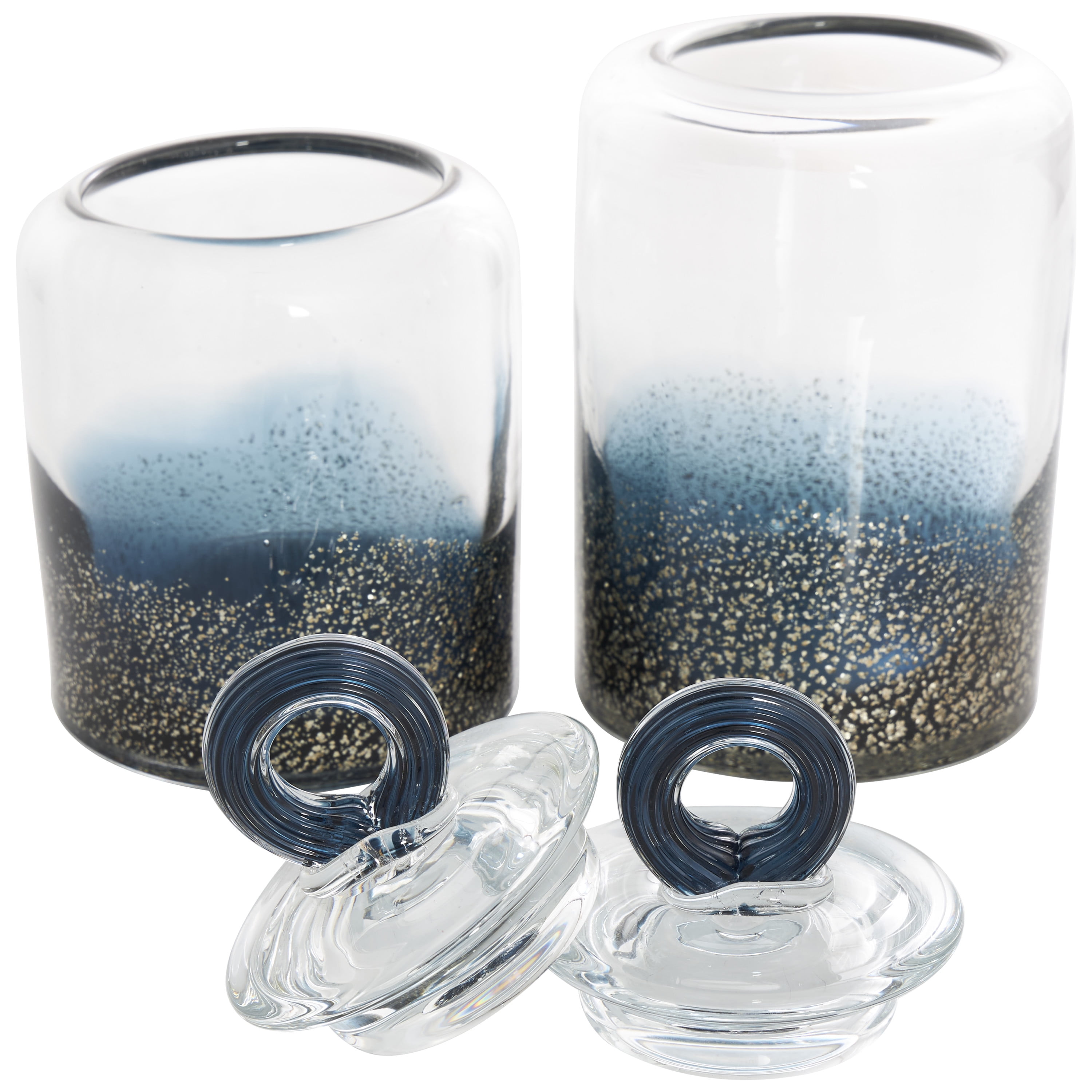 DecMode 9″, 8″H Blue Glass Handmade Decorative Jars with Gold Flake Details and Ring Lids, 2-Pieces