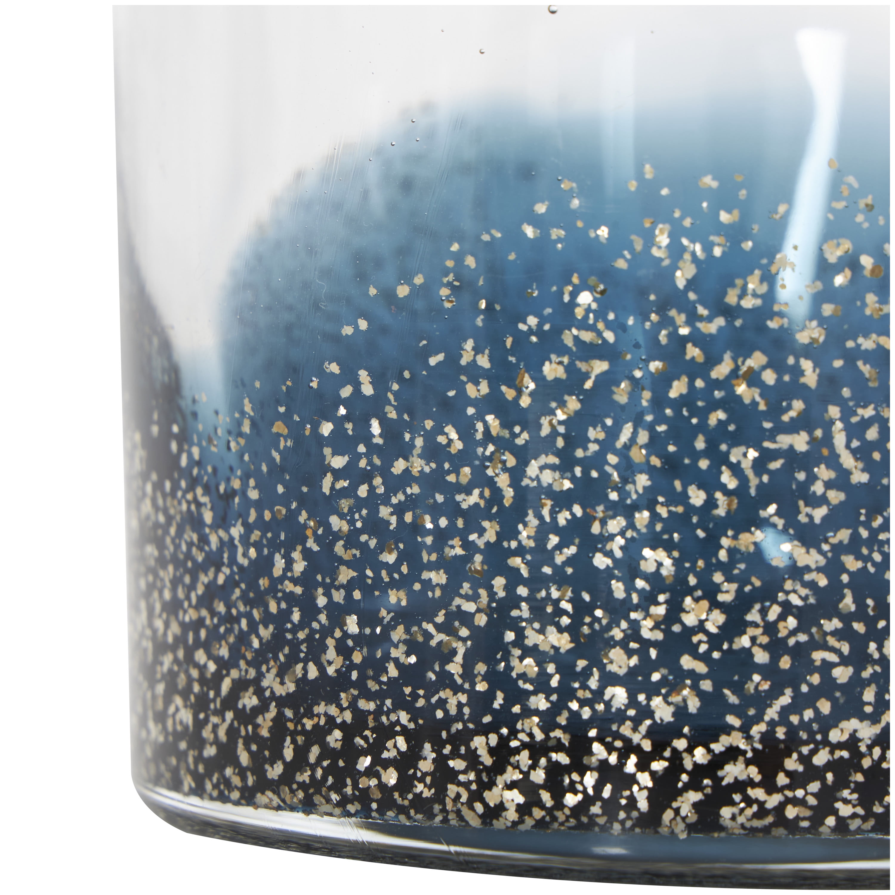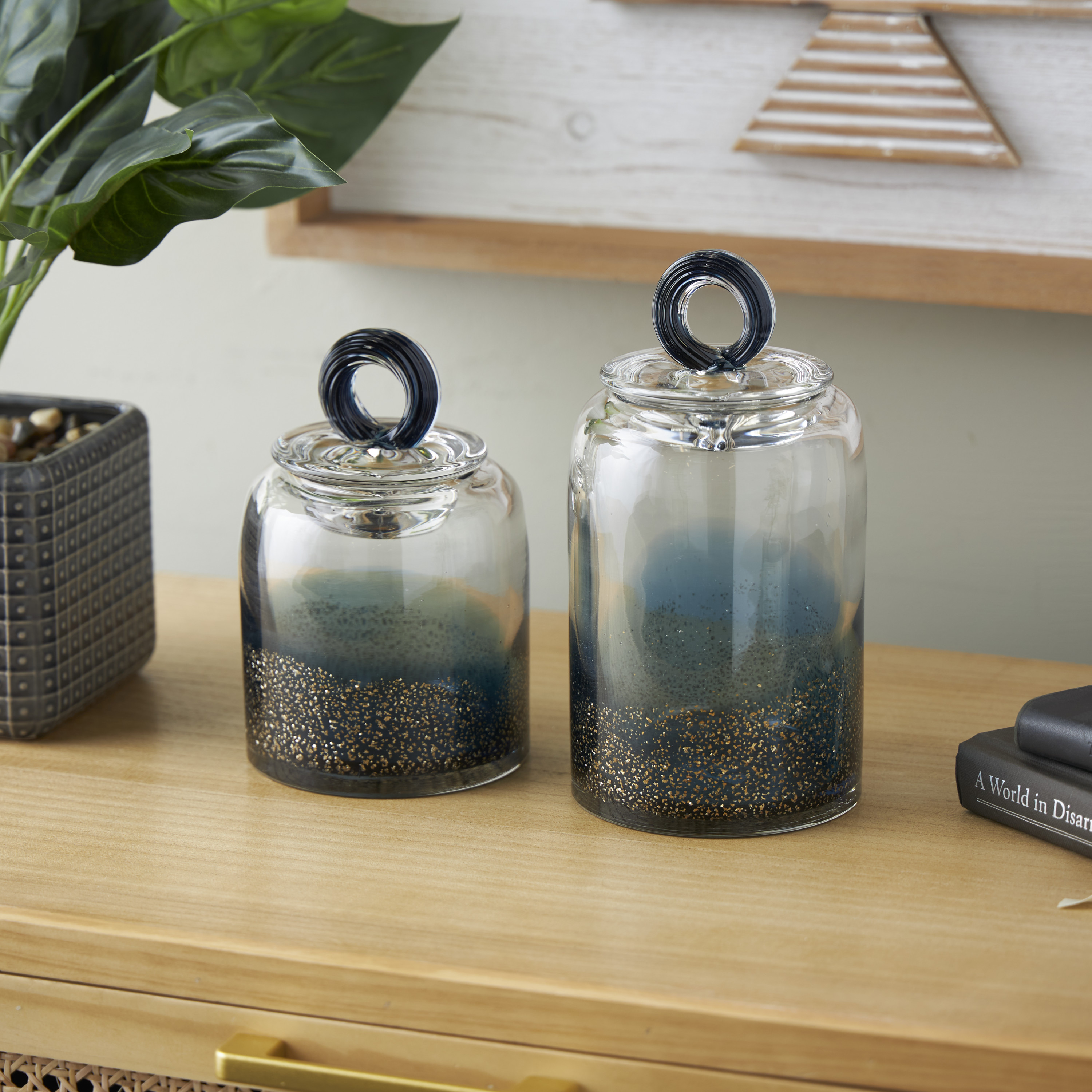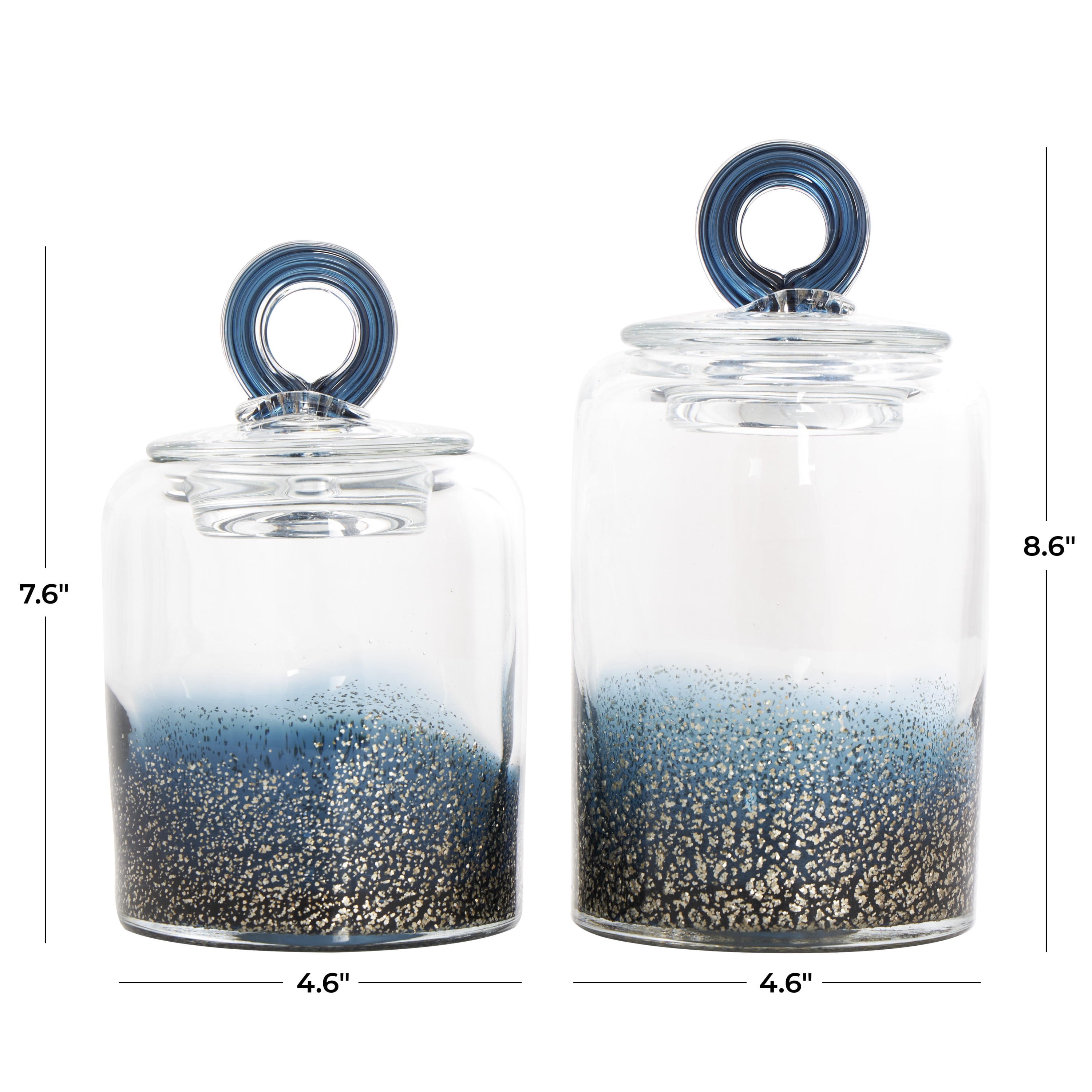 DecMode 9″, 8″H Blue Glass Handmade Decorative Jars with Gold Flake Details and Ring Lids, 2-Pieces