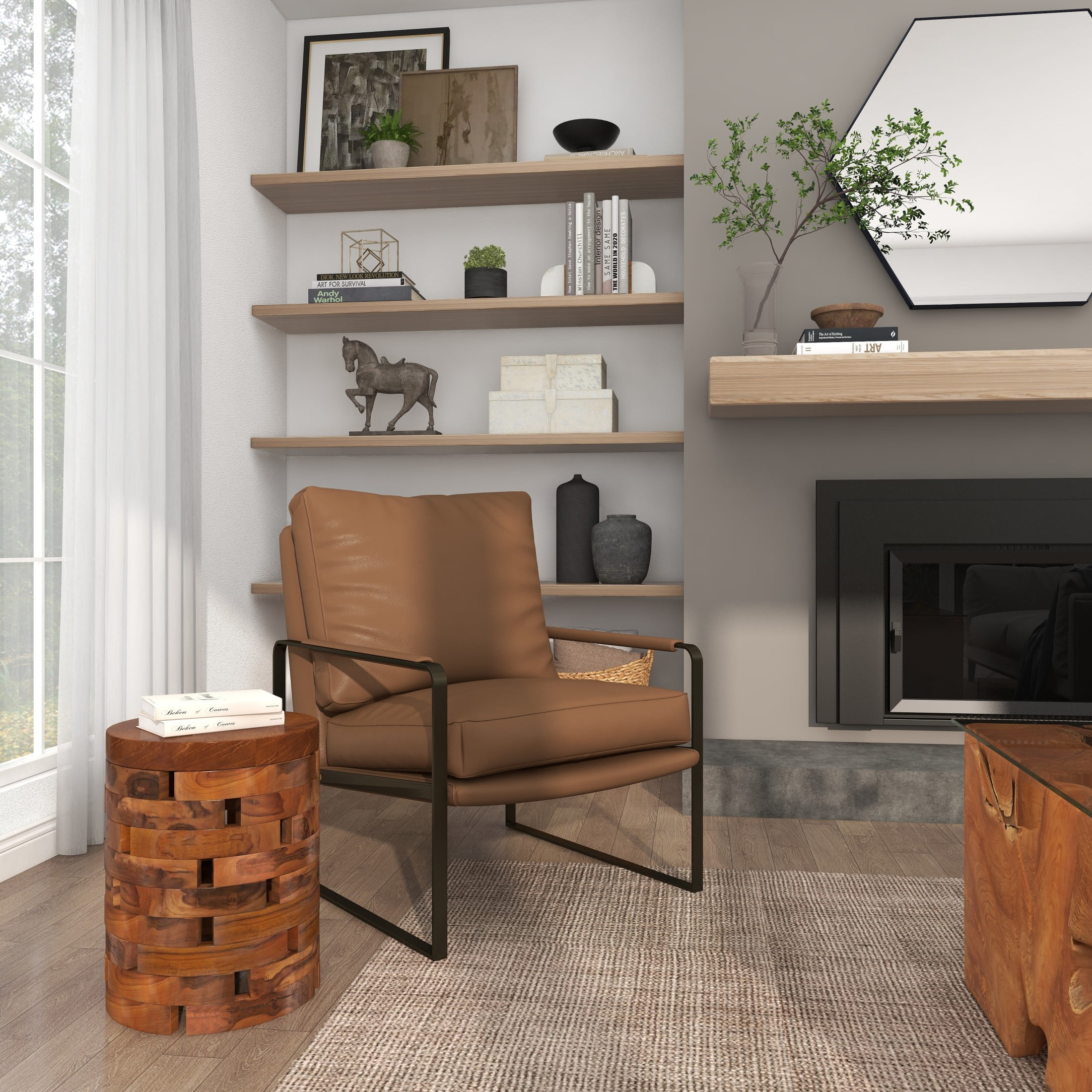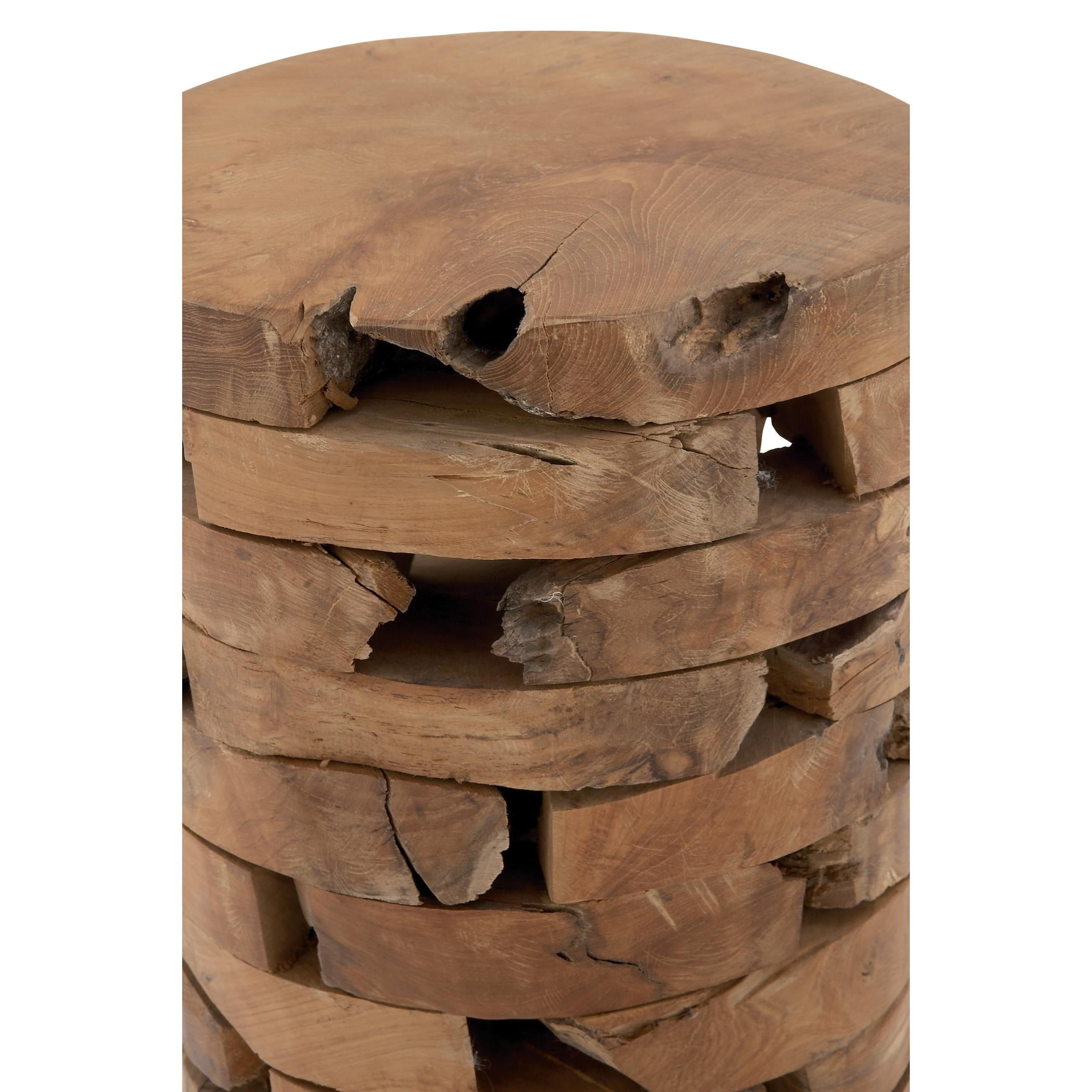 Embrace artistic expression with a style that highlights bold designs with sleek lines, neutral elements, and a minimalist aesthetic Brown corner end table composed of natural teak wood for durability Round wood accent table has a natural light brown finish perfect for light and neutral toned background Brick style teak wood accent table features a rugged design with natural wood patterns with a live edge inspired look The accent table measures 14L x 14W x 18H inches, and weighs 28.90 lbs This table take a form of combined teak wood into a cylinder shape Wipe clean with a dry cloth This corner accent table is constructed from carved wood that’s attached in a stacked design Contemporary style DecMode 14″ x 18″ Light Brown Teak Wood Handmade Live Edge Accent Table with Brick Inspired Design, 1-Piece makes a perfect addition to any home