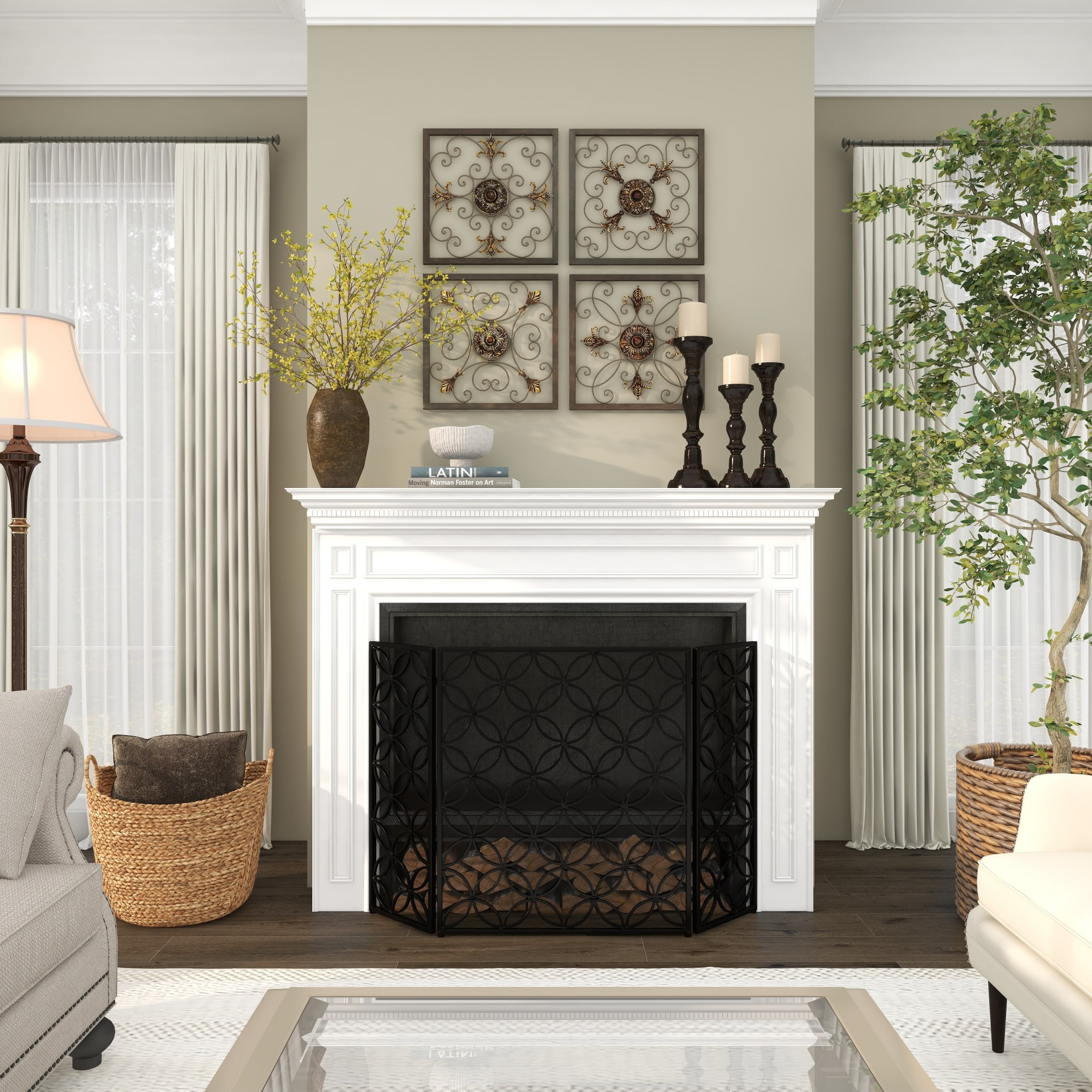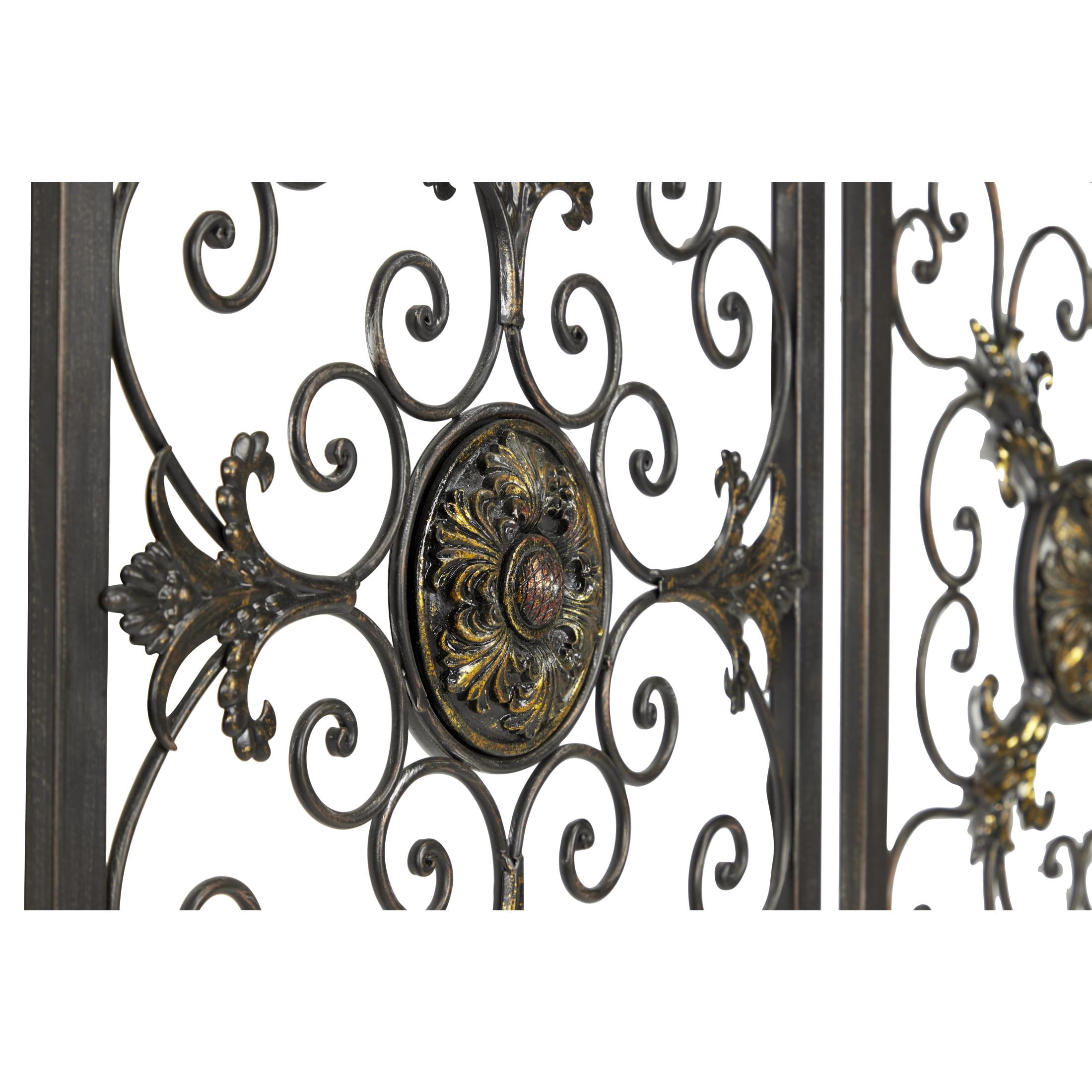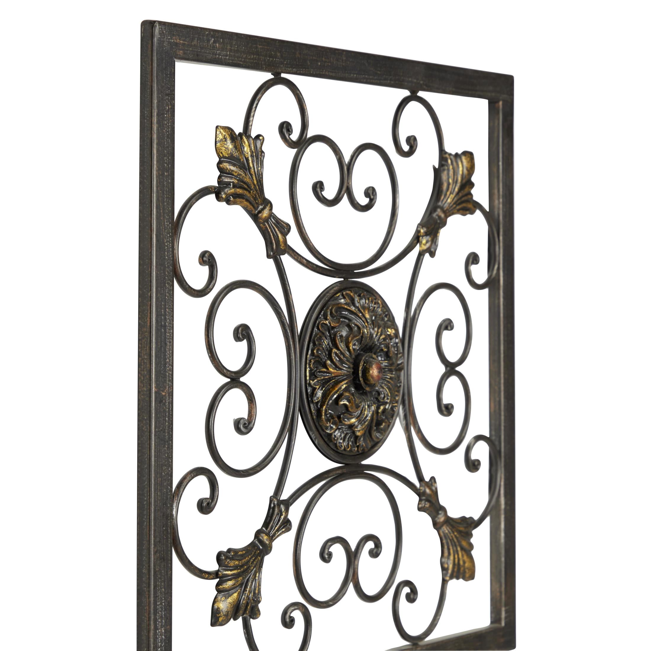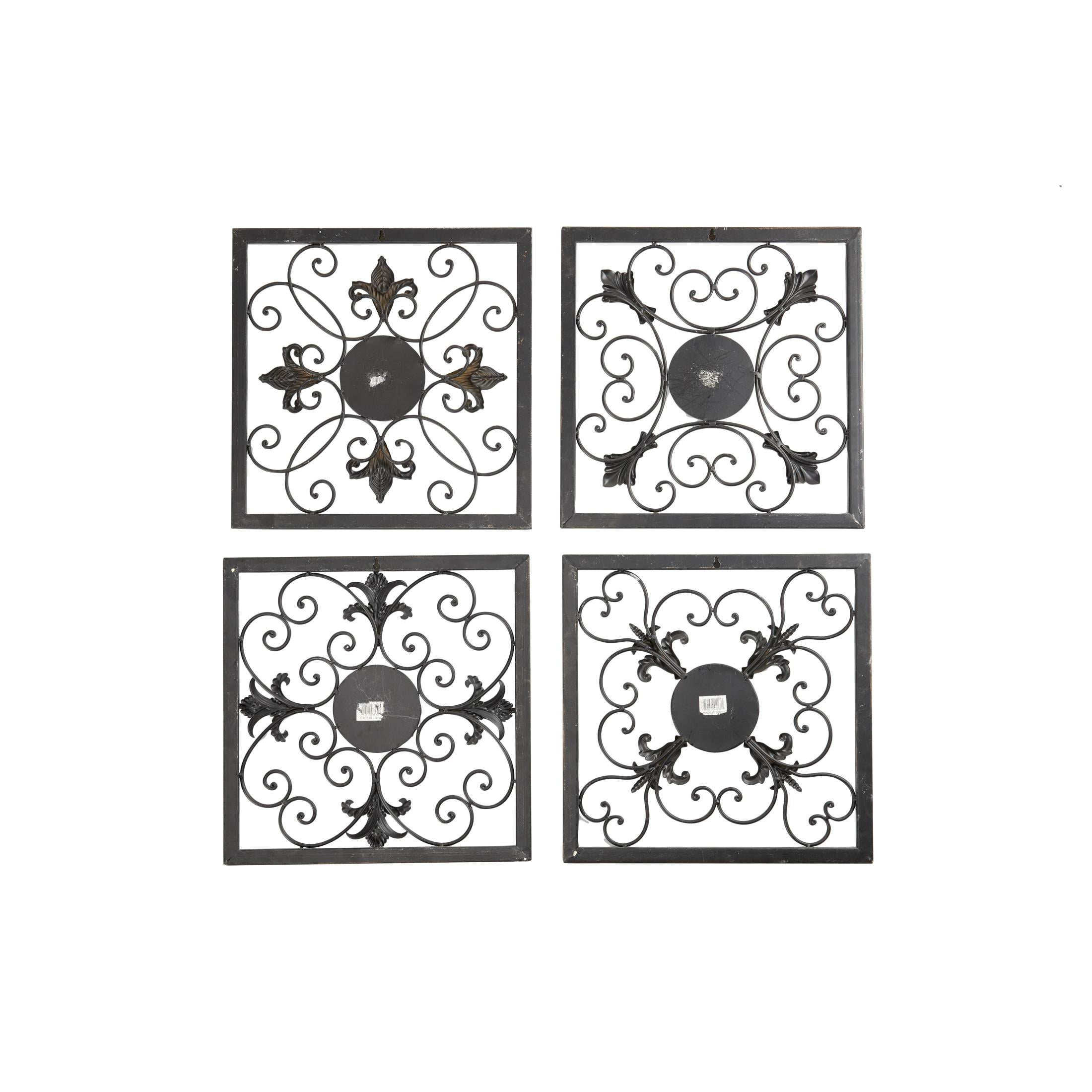 Designed with rugged beauty and an earthy charm, where natural simplicity, warmth, and organic materials create a wholesome atmosphere Constructed from solid iron materials, this brown home wall decor set promises a sturdy structure, ideal for long-term display Square decor set for wall features a rustic matte brown finish, enhanced by subtle gold accents that add dimension and texture Iron set of 4 wall decors showcases rich scrollwork and a medallion design, offering an elegant decorative motif suitable for traditional-themed or vintage-inspired spaces Each brown metal wall decor measures 15.75L x 1.25W x 15.75H , 15.75L x 1.25W x 15.75H, 15.75L x 1.25W x 15.75H, 15.75L x 1.25W x 15.75H inches, and collectively weighs 12.56 lbs Matte brown wall art set for living room presents a square profile with internal scrolling metal works and round fleur-de-lis figures adding to its charm Wipe clean with a dry cloth Each piece in this rustic set of 4 room wall decors has been meticulously crafted from shaped and welded iron materials to form intricate scrolling art designs Rustic style DecMode Brown Metal Wire Scroll Fleur De Lis Wall Decor with Gold Accents (4 Count) makes a perfect addition to any home