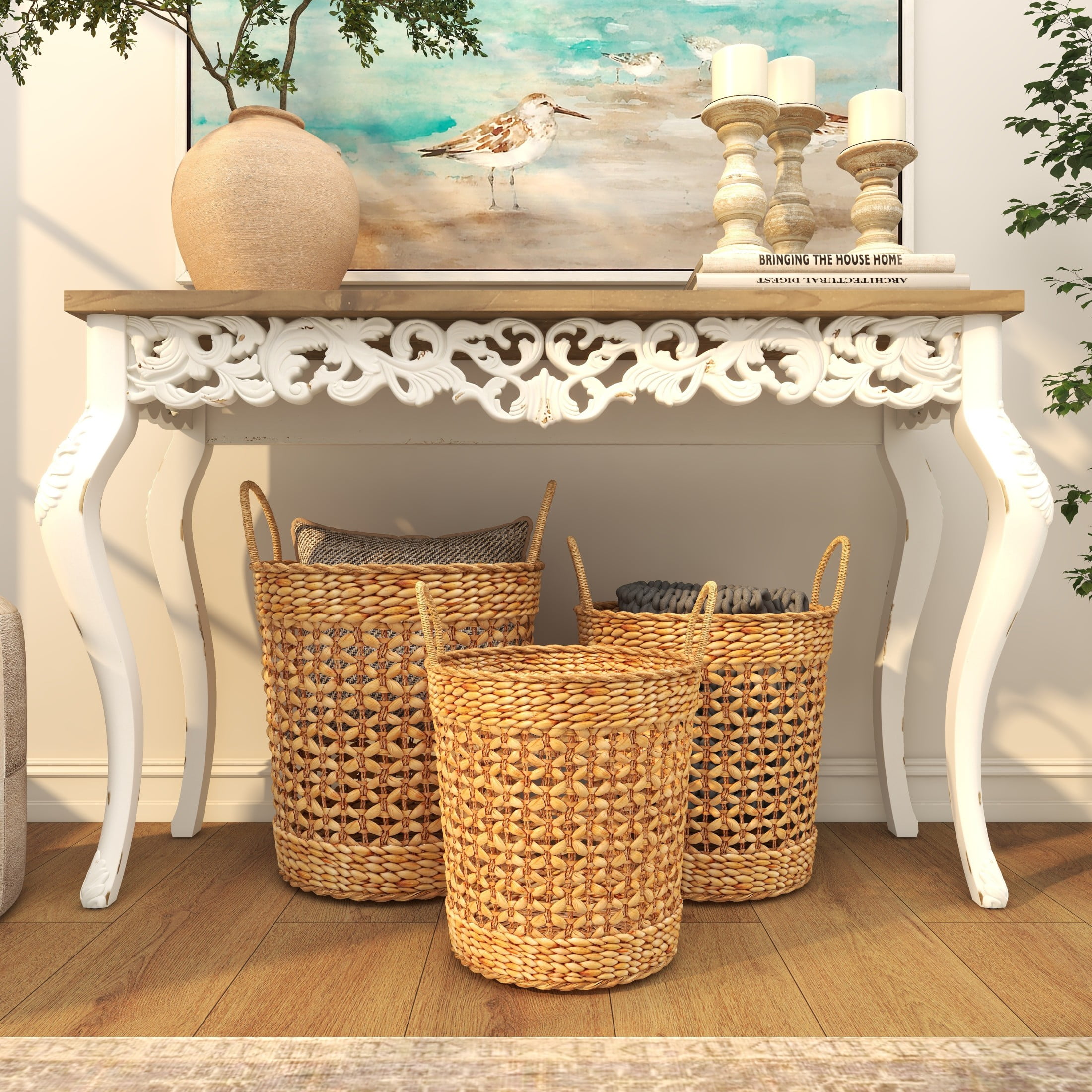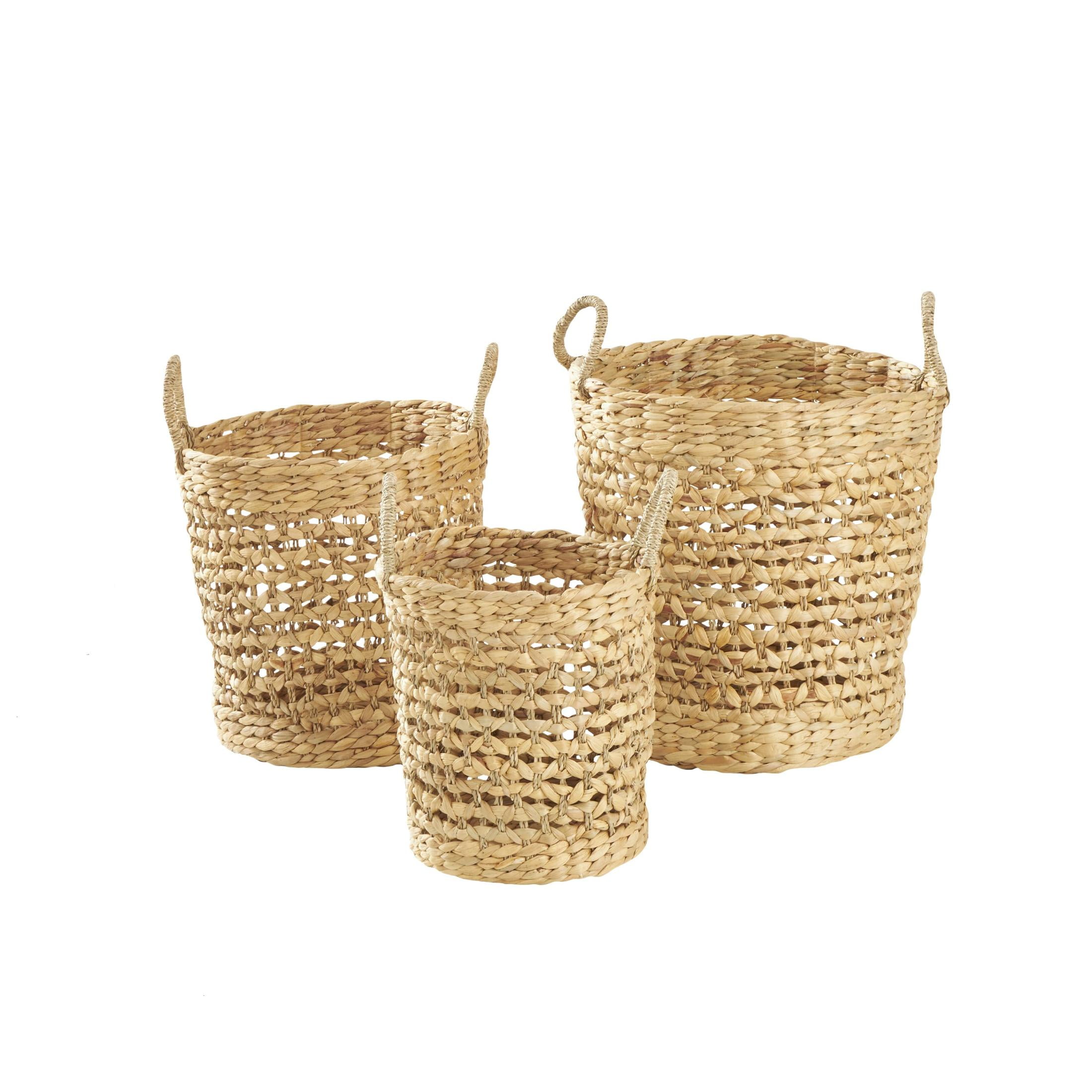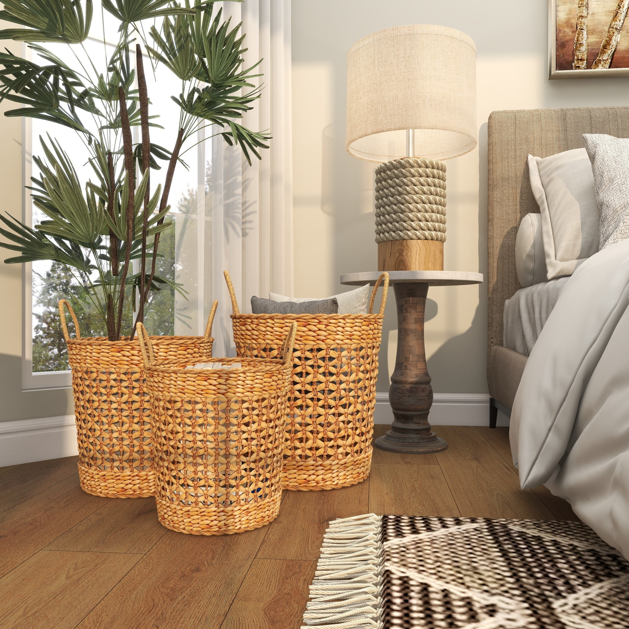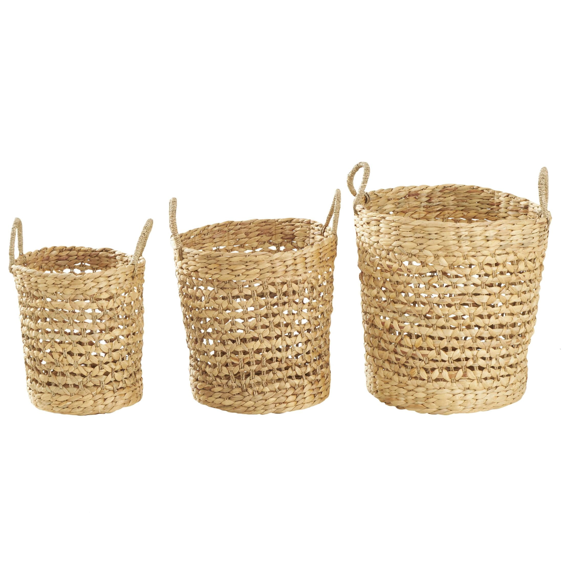DecMode Coastal Brown Seagrass Woven Storage Basket, Set of 3 21″, 18″, 16″H