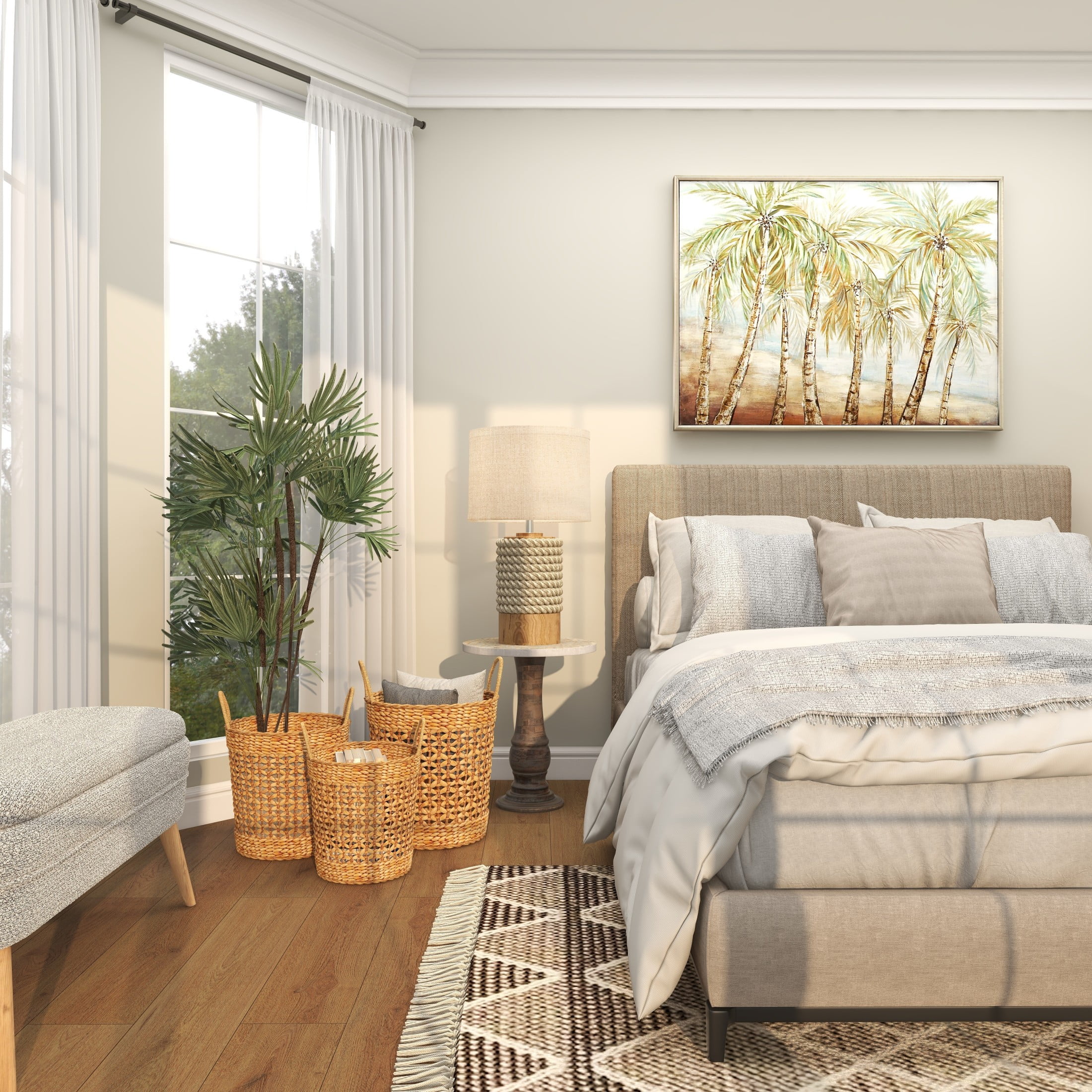 Inspired by blissful serenity and the allure of the sea, where soothing hues and natural textures bring effortless charm to the home The light brown decorative and functional storage basket set is crafted from high-quality seagrass, ensuring durability and aesthetic appeal The round basket for organizing set features a textured light brown finish and handles, offering an earthy charm to any space This seagrass set of 3 storage baskets features intricate braiding, forming sturdy receptacles with convenient handles Each light brown seagrass storage basket measures 13L x 13W x 16H , 15L x 15W x 18H , 17L x 17W x 21H inches, and collectively weighs 12.08 lbs The textured light brown basket for home decor boasts round shapes adorned with elegant tan braid and knot patterns, making it a versatile addition to any space Wipe clean with a dry cloth The coastal set of 3 basket for decor is meticulously crafted using braided plant fibers, with twisted handles securely attached via fiber loops Coastal style DecMode 21″, 18″, 16″H Light Brown Seagrass Handmade Woven Storage Basket with Handles, 3-Pieces makes a perfect addition to any home