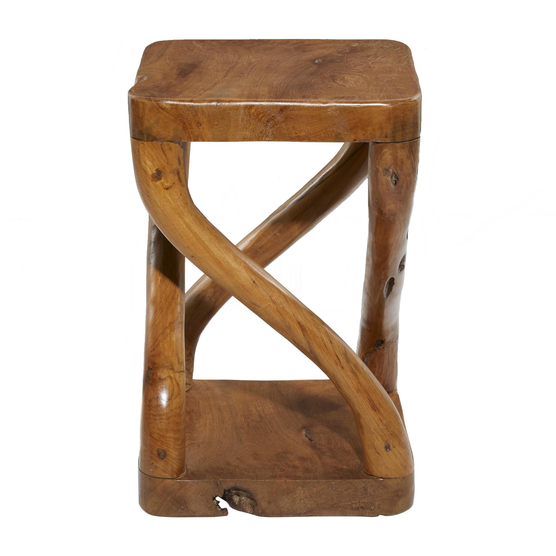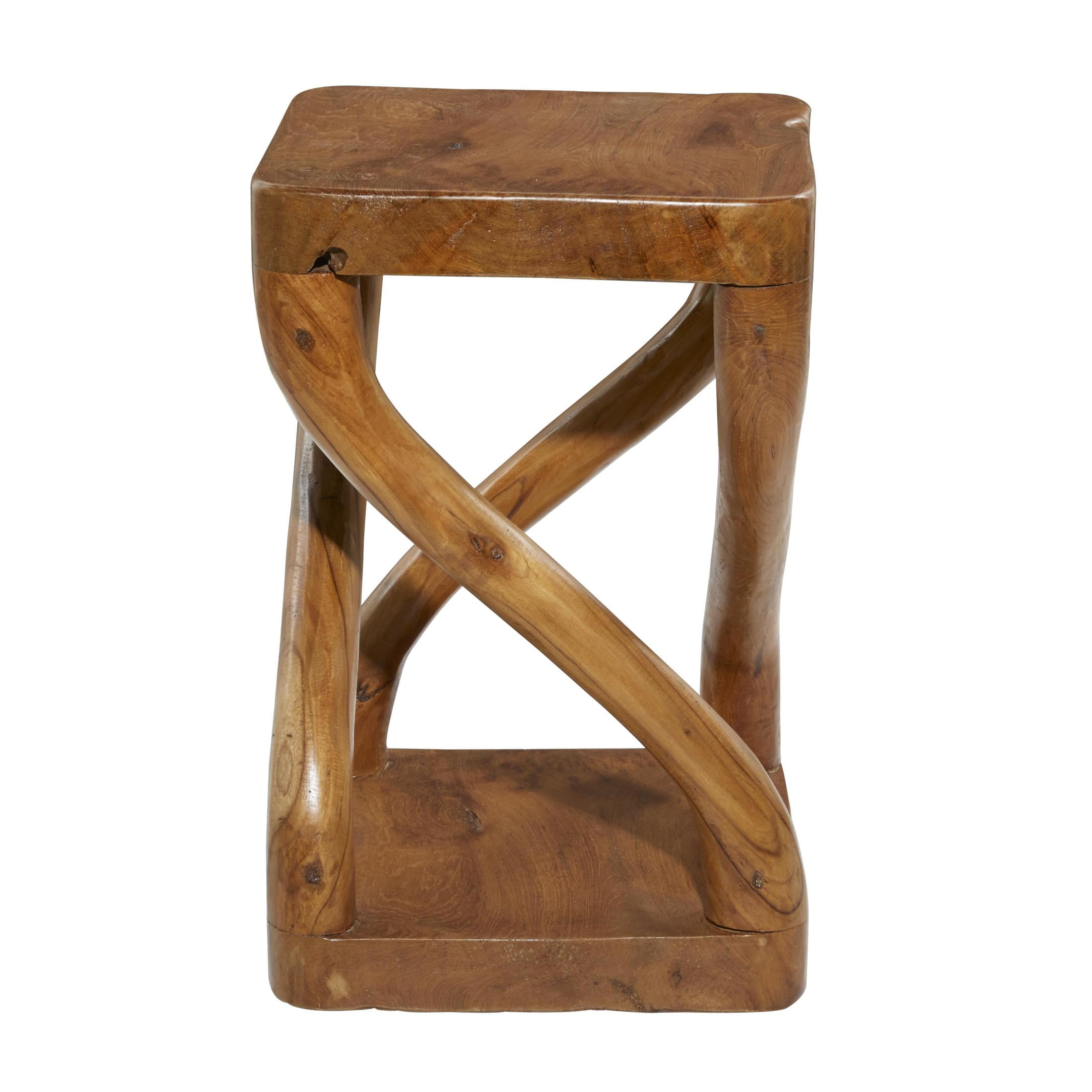 Embrace artistic expression with a style that highlights bold designs with sleek lines, neutral elements, and a minimalist aesthetic Pieces of carefully cut teak wood were put together to form the sturdy construction of this low-lying hourglass-shaped side table with a square tabletop and base It has a polished and marbled wood finish and innate tree trunk carvings, making it a suitable piece for natural design concepts Its focal point lies on the seemingly creative and modern take on the Double Twist furniture leg type, which creates this side table’s hollow center The accent table measures 12.88L x 12.88W x 20H inches, and weighs 23 lbs Features a non-meeting helix pattern for the support system Wipe clean with a dry cloth Designed with thick square slabs for the stool surface and the base Contemporary style DecMode 13″ x 20″ Brown Teak Wood Handmade Live Edge Accent Table with Curved Legs, 1-Piece makes a perfect addition to any home