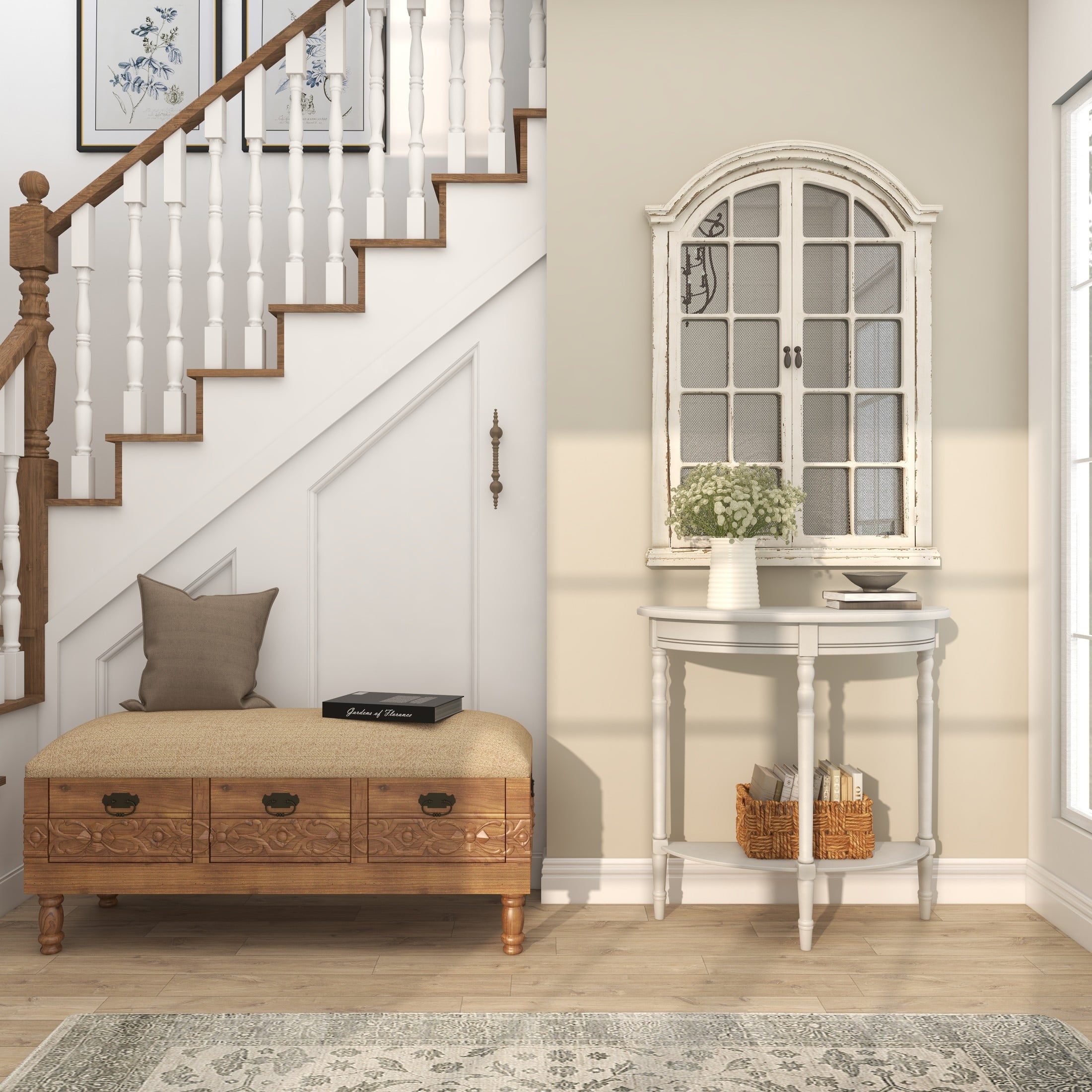 DecMode Cream Traditional Half Moon Shape Wood Console Table, 32″W x 32″H