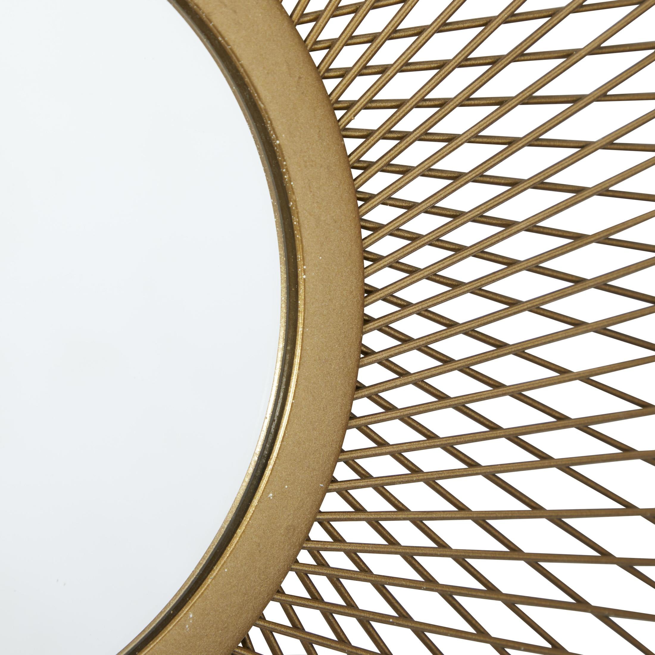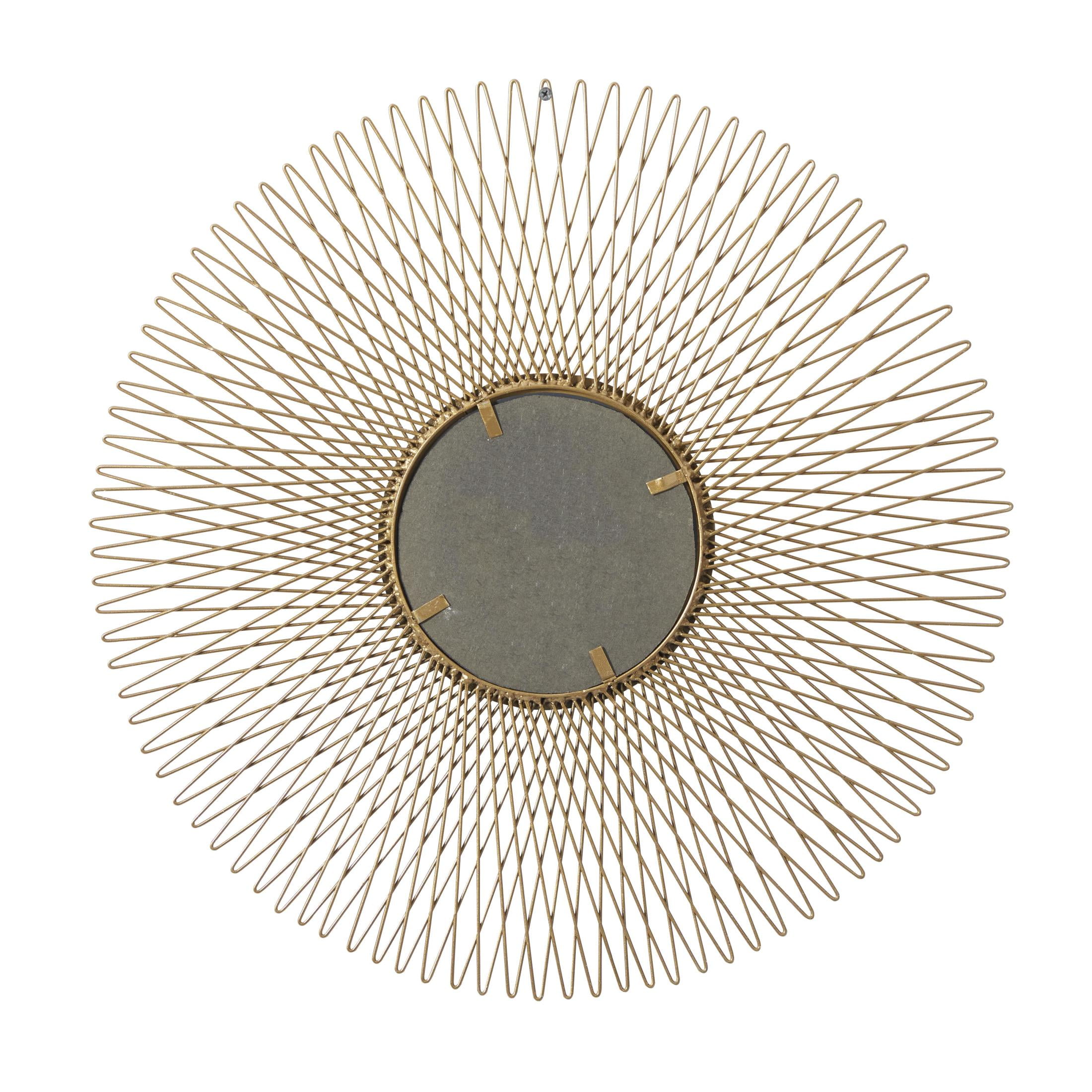 DecMode 18″, 22″, 27″D Gold Sunburst Wall Mirror with Mirrored Accent, Set of 3 is a unique addition to your stylish home. This sunburst set of 3 wall sculptures adds flair to your living room or hallway when displayed on a glam-themed wall. This item ships in 1 carton. Features circular iron frames with thin wires forming a radial sunburst patterned design. Can be hung vertically using the hanging hooks; nails and screws not included. Suitable for indoor use only. This item ships fully assembled in one piece. This gold colored tin wall sculptures comes as a set of 3. Glam style.