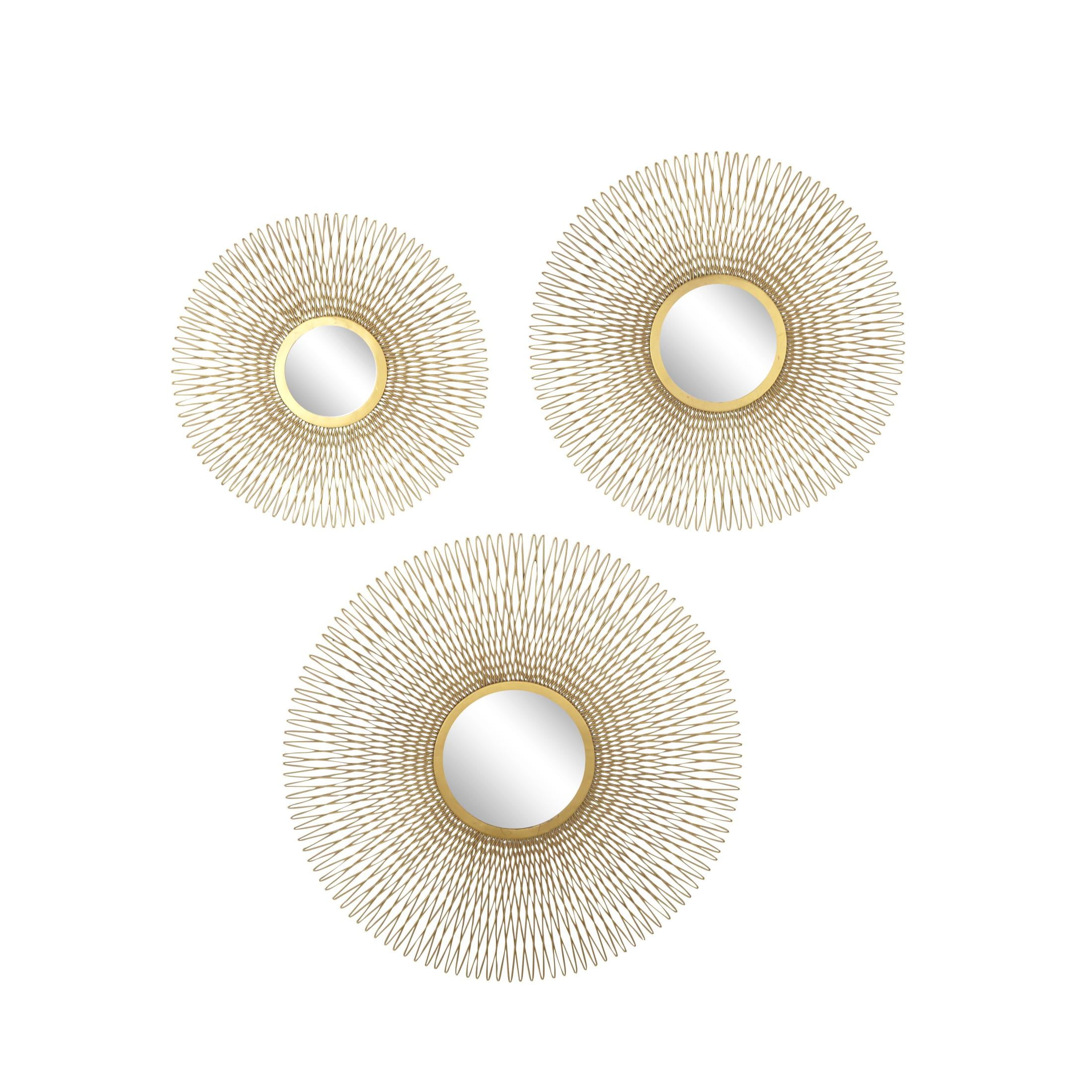 DecMode Glam Gold Metal Sunburst Wall Décor with Mirror Center, Set of 3 18″, 22″, 27″D