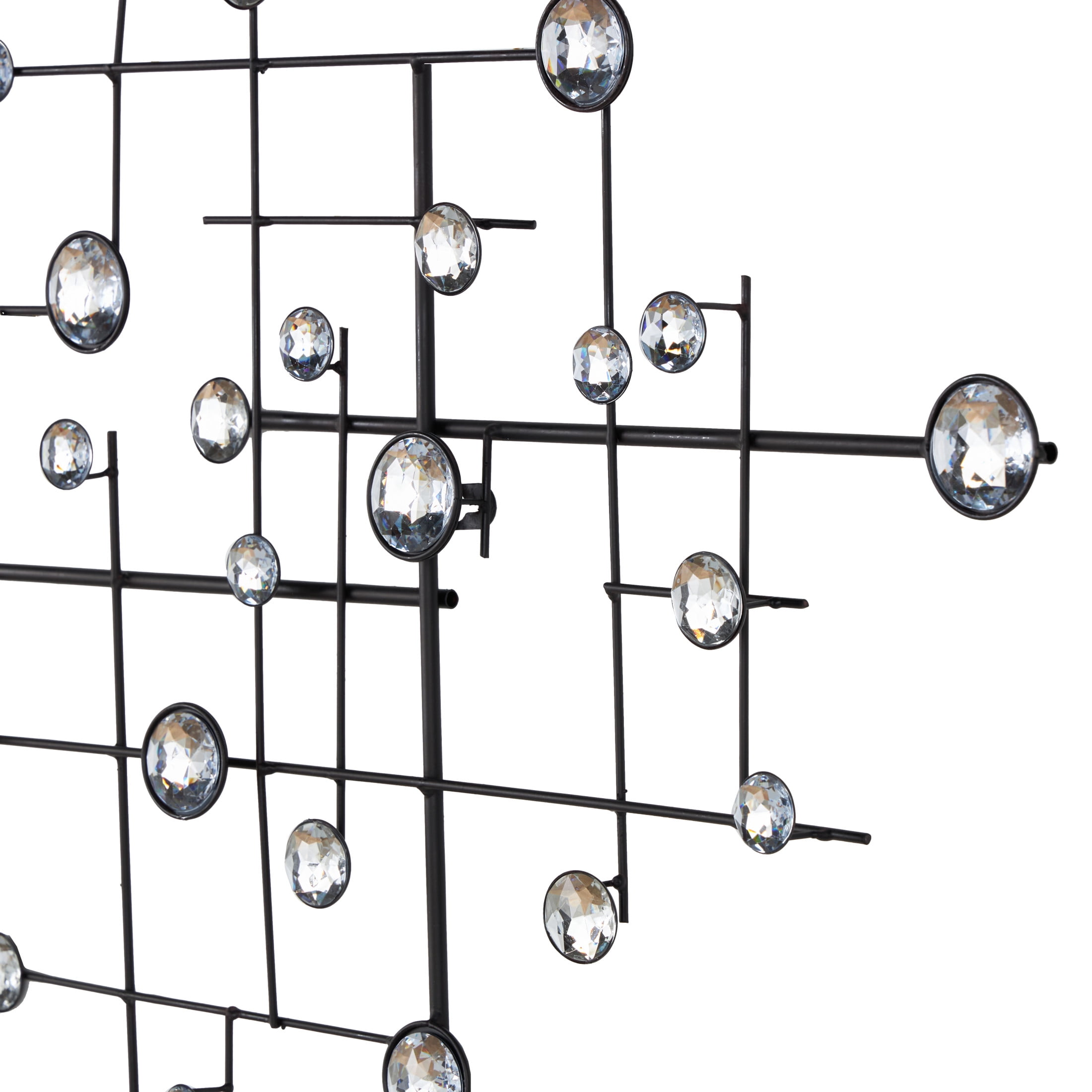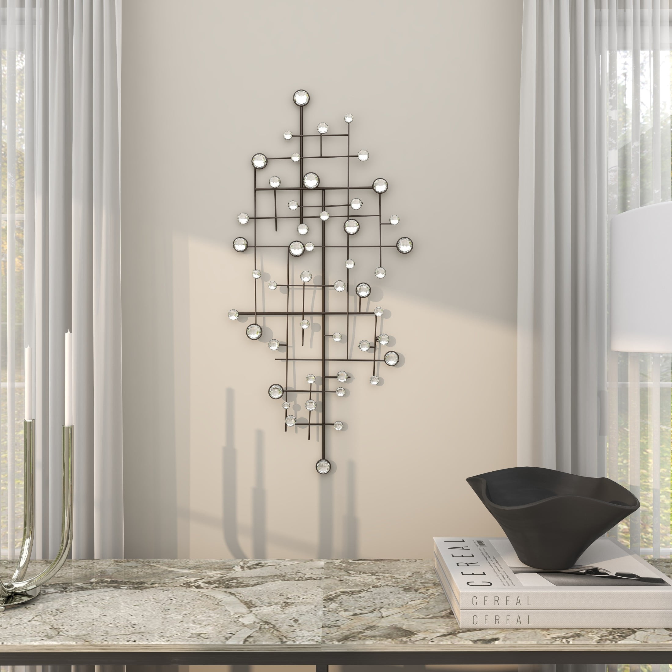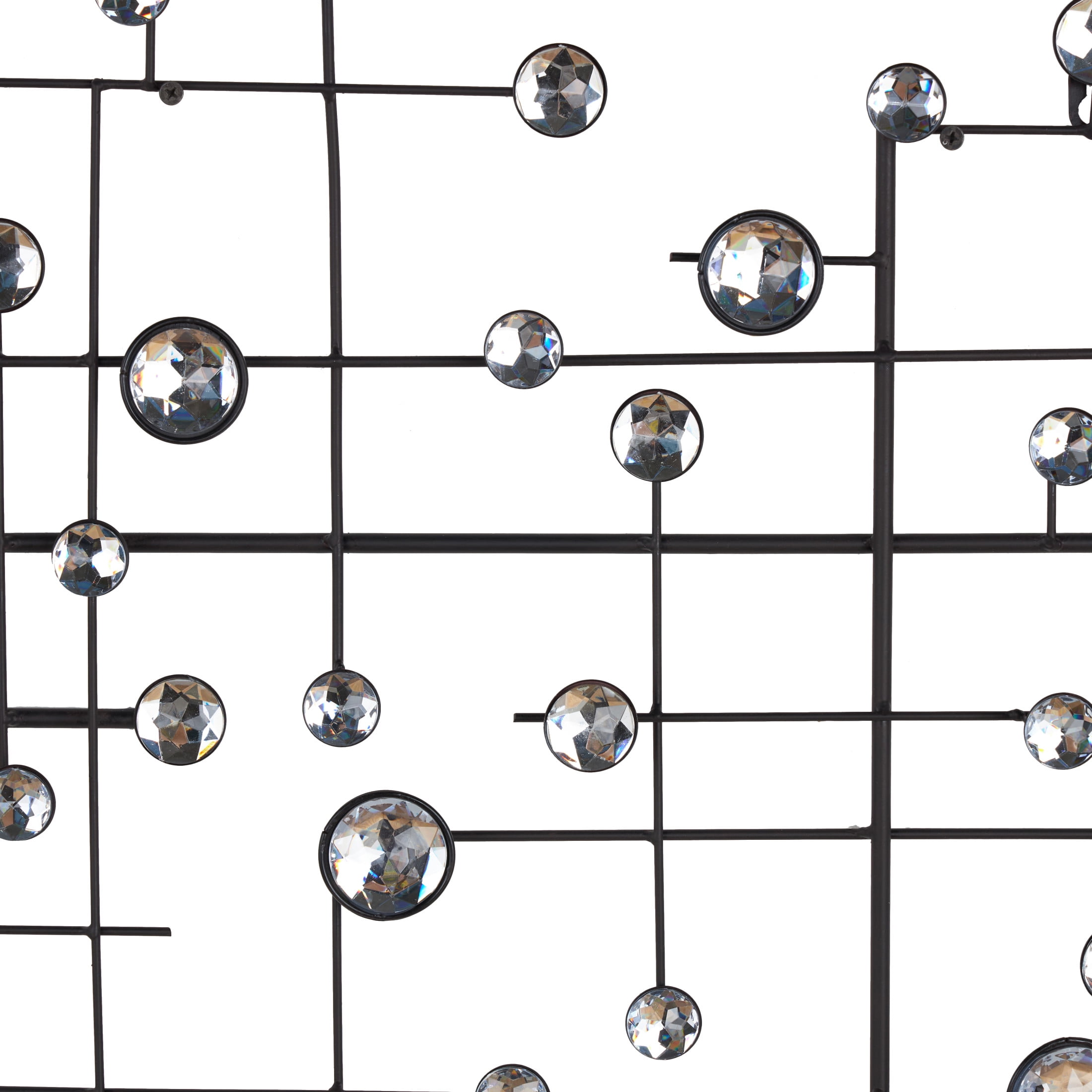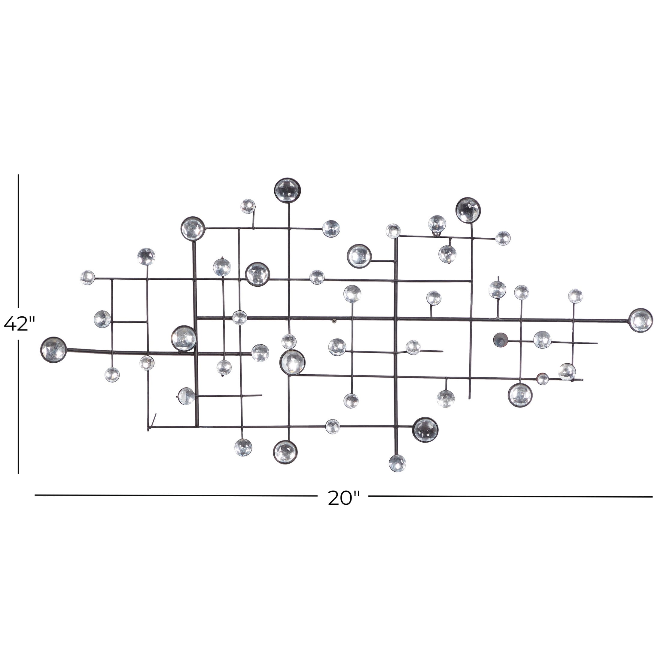 DecMode Glam Metal Silver Geometric Wall Décor with Round Glass Beads, 20″W x 42″H
