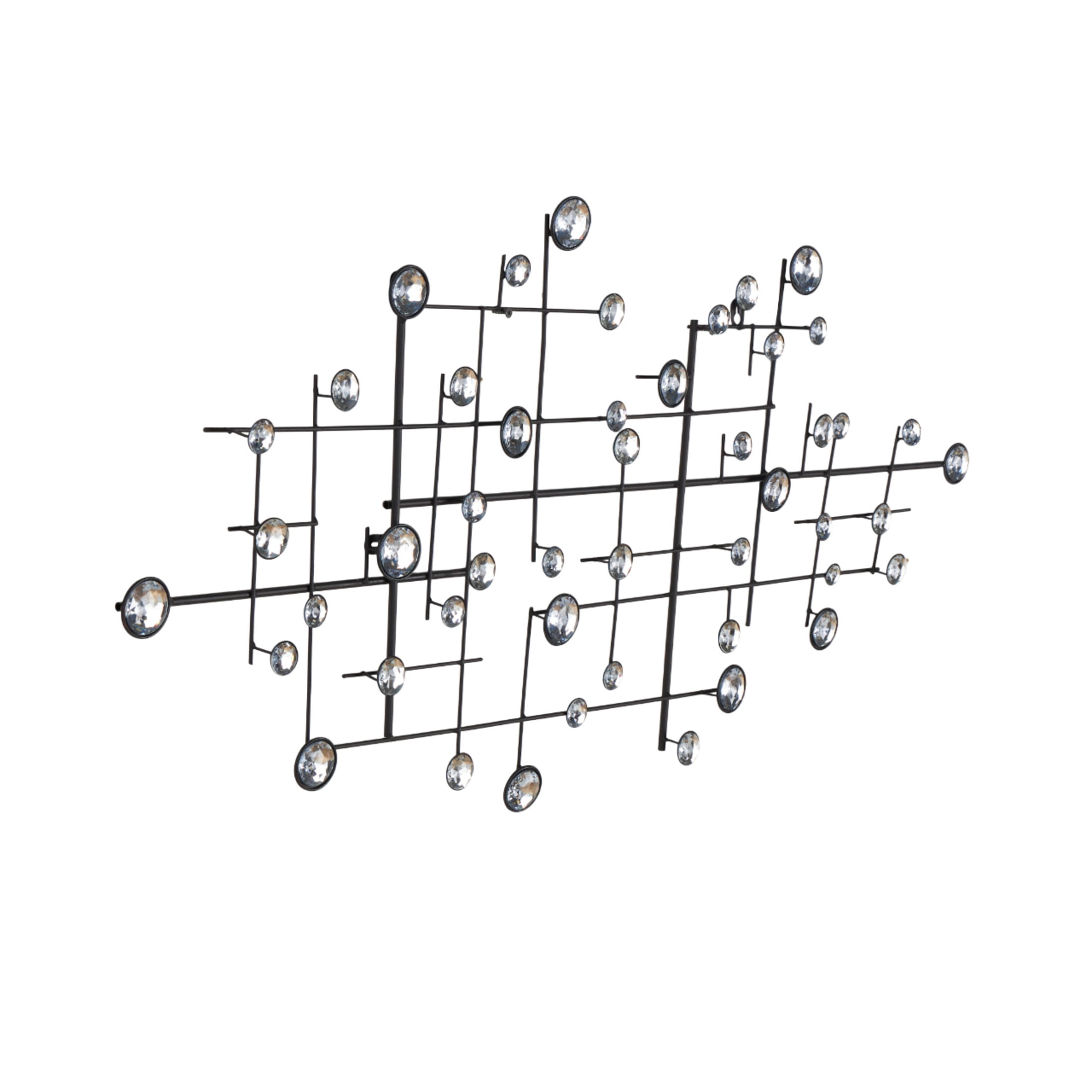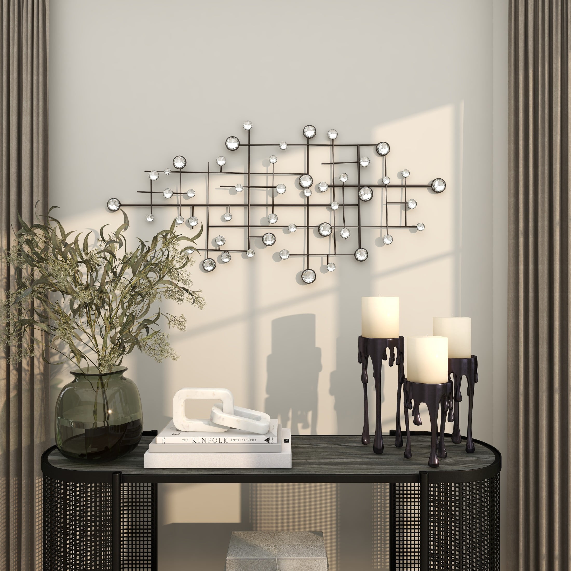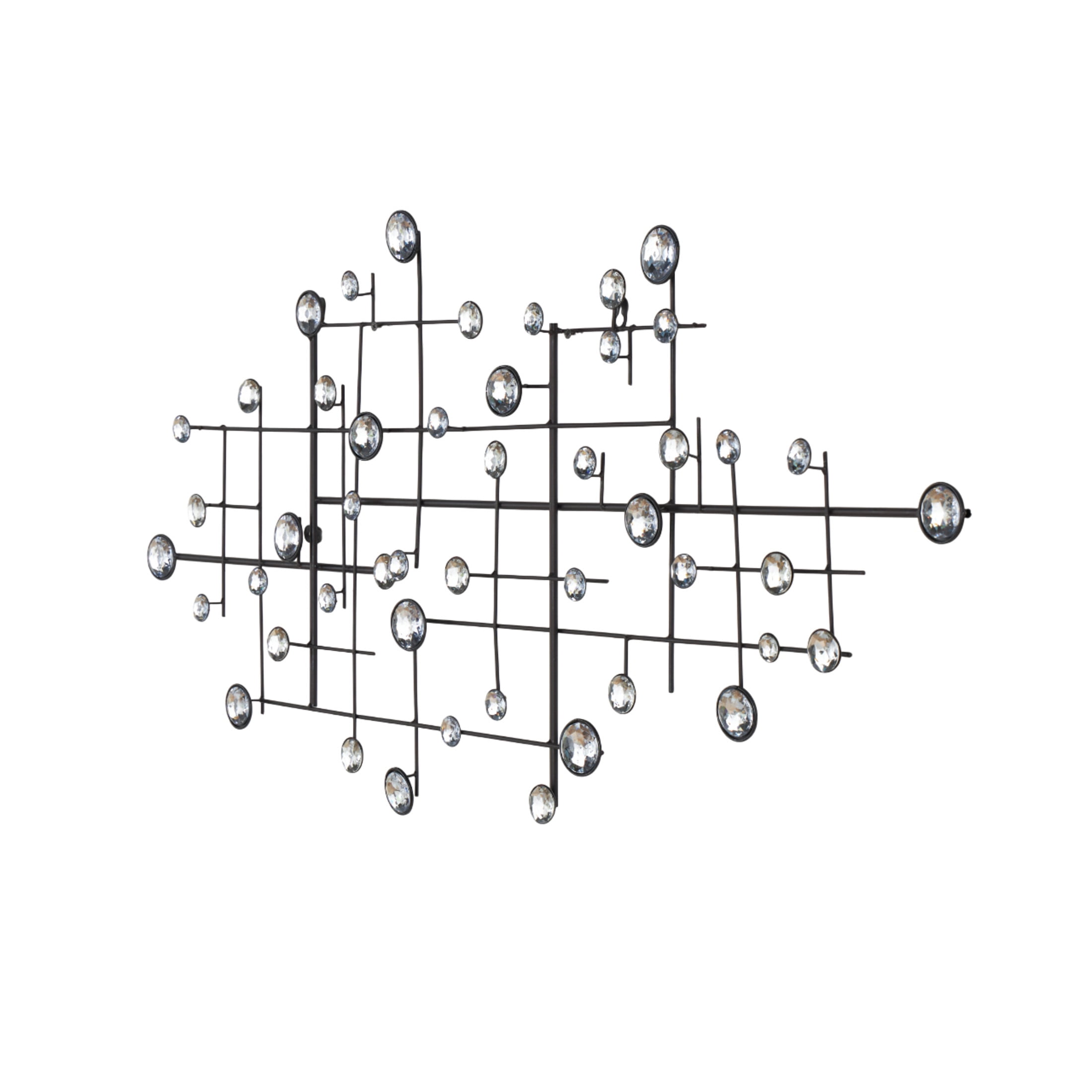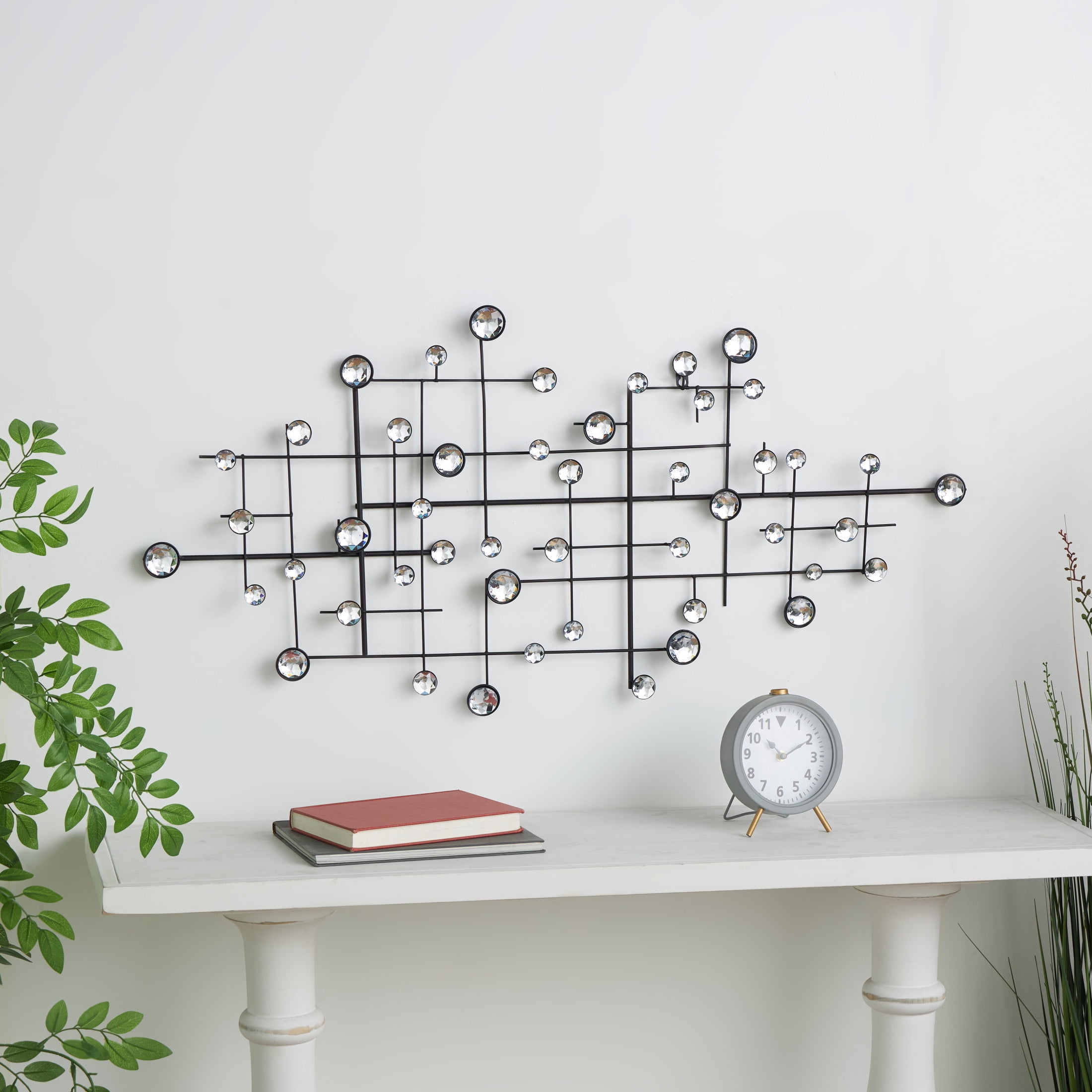 DecMode Glam Metal Silver Geometric Wall Décor with Round Glass Beads, 20″W x 42″H