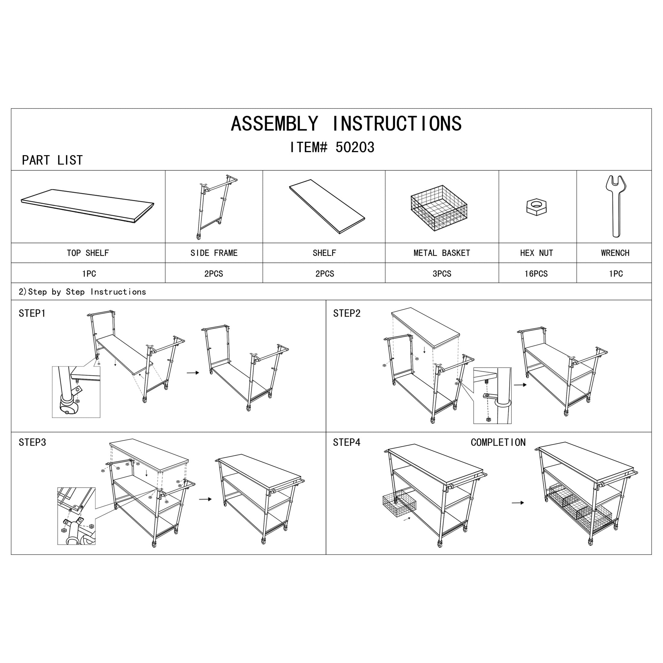 | Color | Brown Rolling Cart 3 Drawer Solid Rectangle 48" x 17" x 32" |