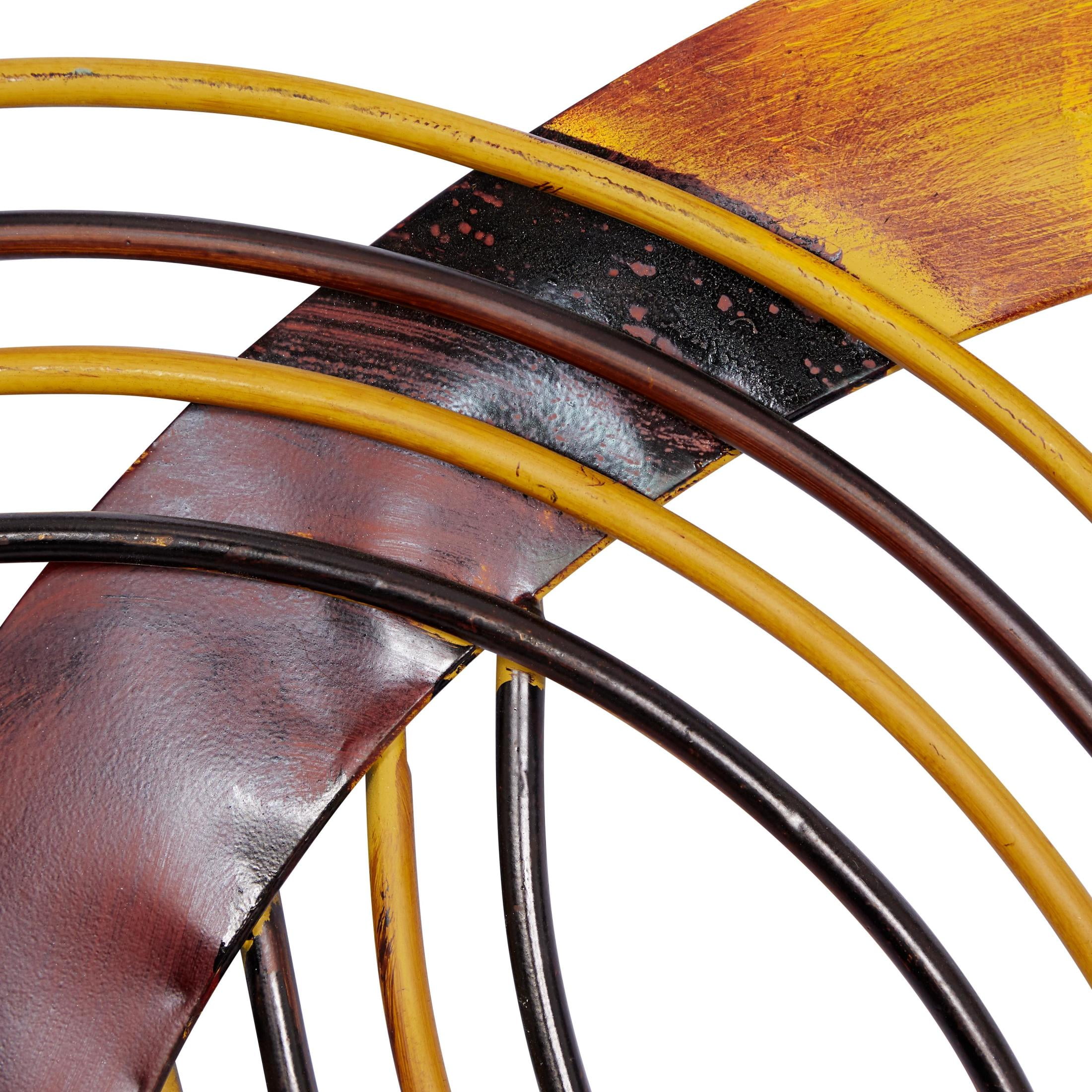DecMode Modern Metal Overlapping Semi Circle Design Abstract Wall Décor with Fire Orange, Dark Brown and Patterned Yellow Finish, 38″W x 25″H