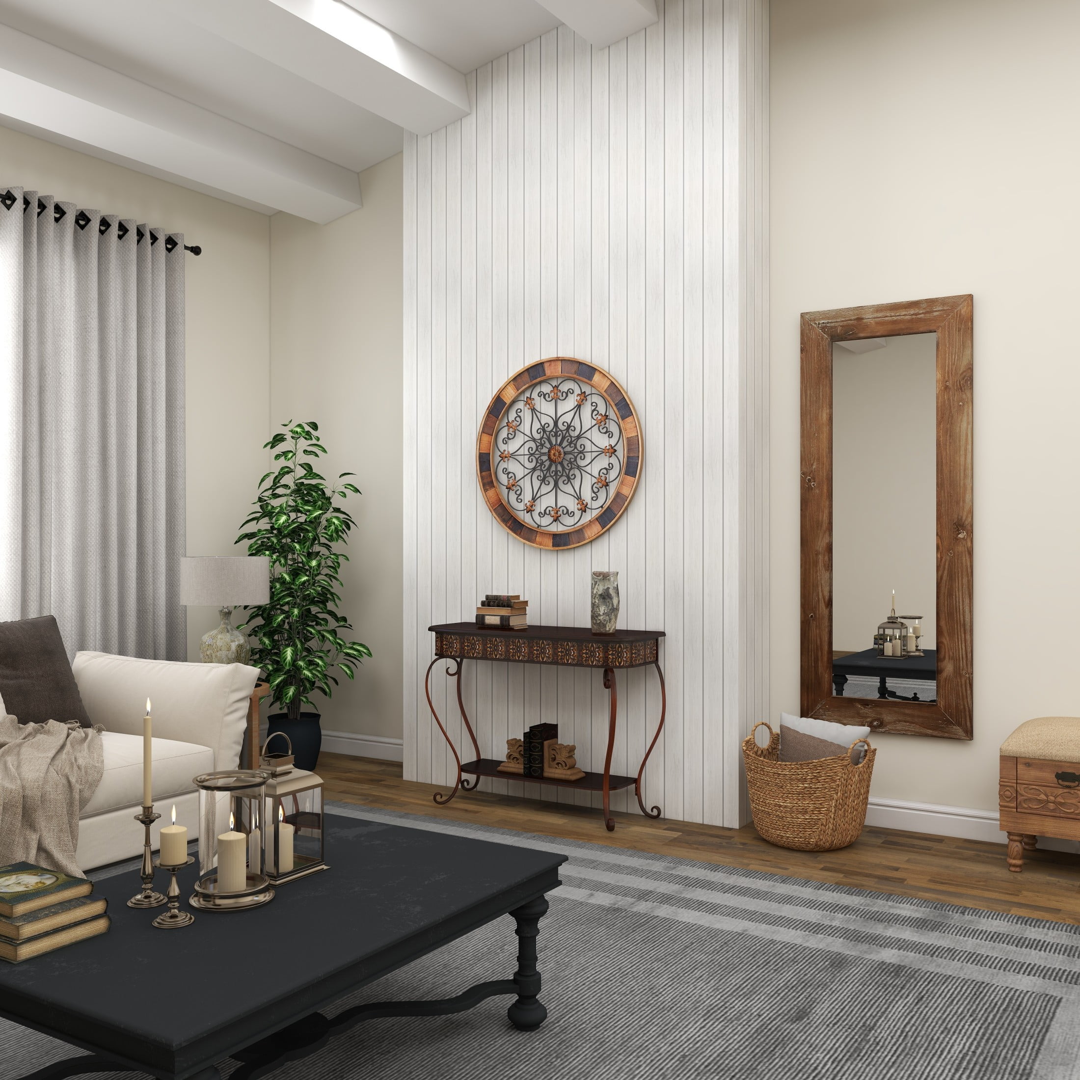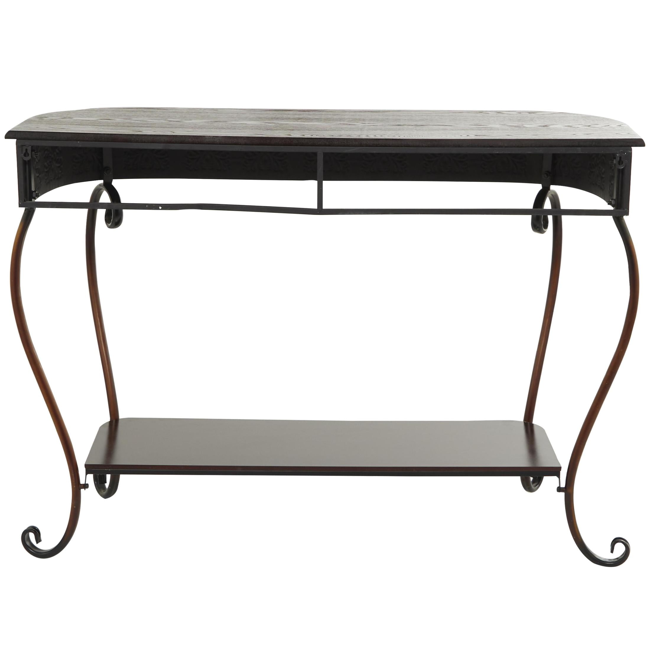 DecMode Traditional Brown Wood and Metal Console, Entryway, Hallway Table with Ornate Detailing and Round Edges, 43″W x 32″H