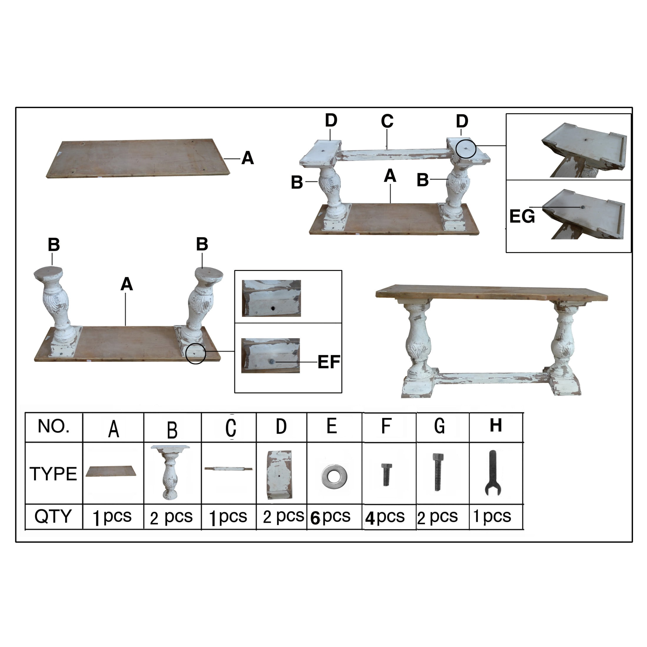 | Color | White Distressed Solid Rectangle 59" x 16" x 29" |