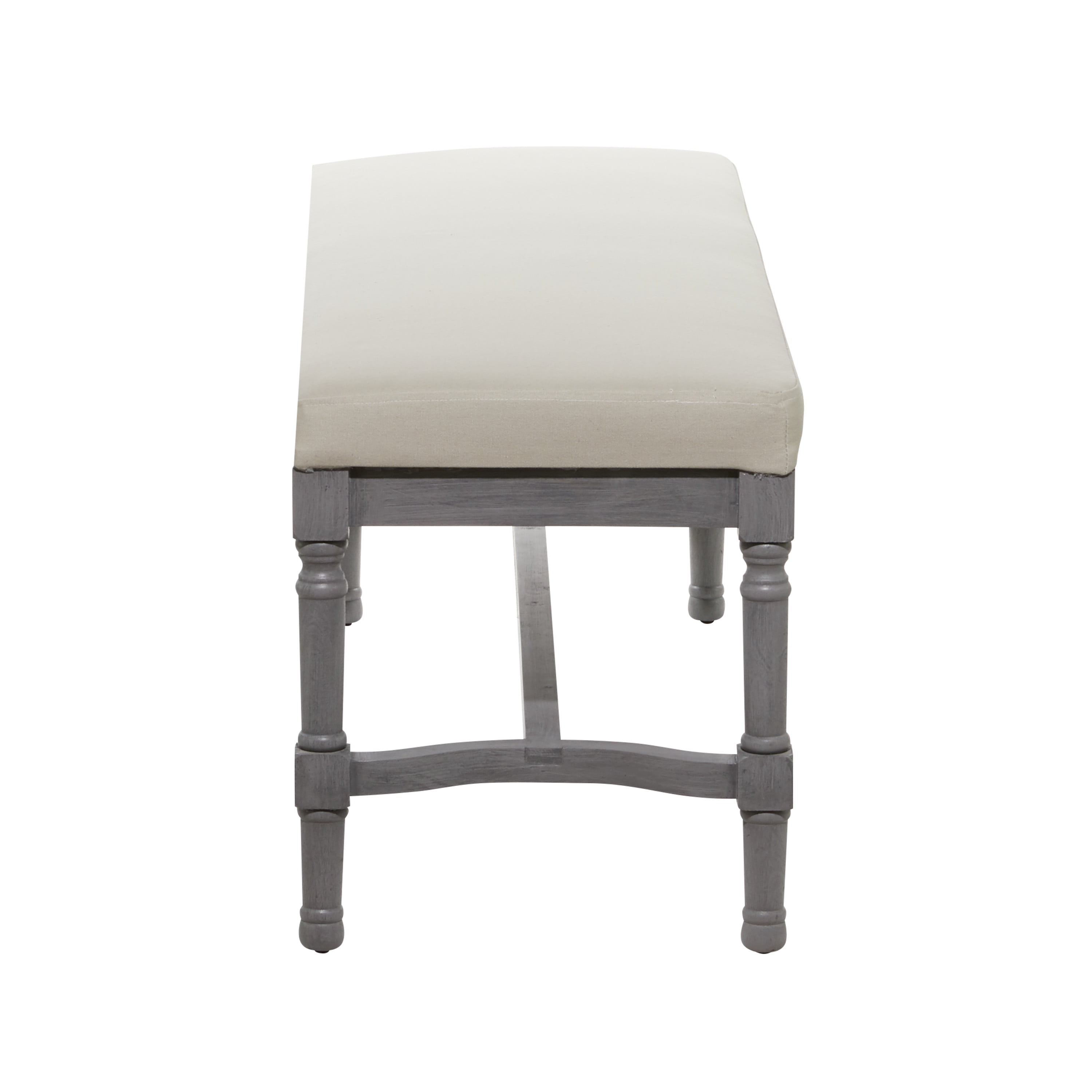 Designed with the essence of timeless sophistication, where rich old-world textures and warm hues come together for a refined classic taste of understated luxury Indoor upholstered bench is made of sturdy wood and mdf frames with upholstered linen fabric Traditional bench has beige cushioned seat with gray wood frames in a semi polished finish Long rectangular bench features classic form with pillar legs in a trestle style structure and upholstered cushioned seat for maximum comfort The bench measures 47L x 16W x 18H inches, and weighs 20.90 lbs This wood bench has a rectangular shape and turned wood legs Wipe clean with a dry cloth This indoor wood bench is constructed from an upholstered seat attached to a wooden frame Traditional style DecMode Wood Bench with Burlap Seat, Gray makes a perfect addition to any home