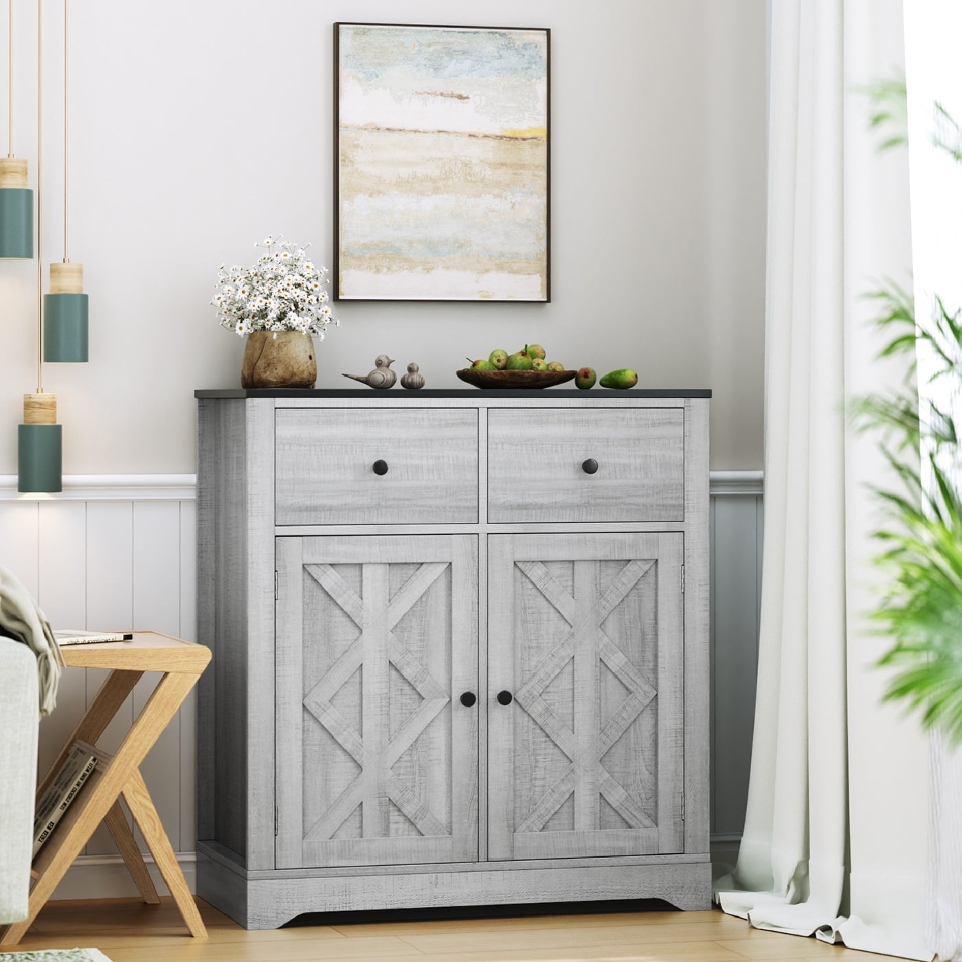 DecMode Wood Bench with Burlap Seat, Gray