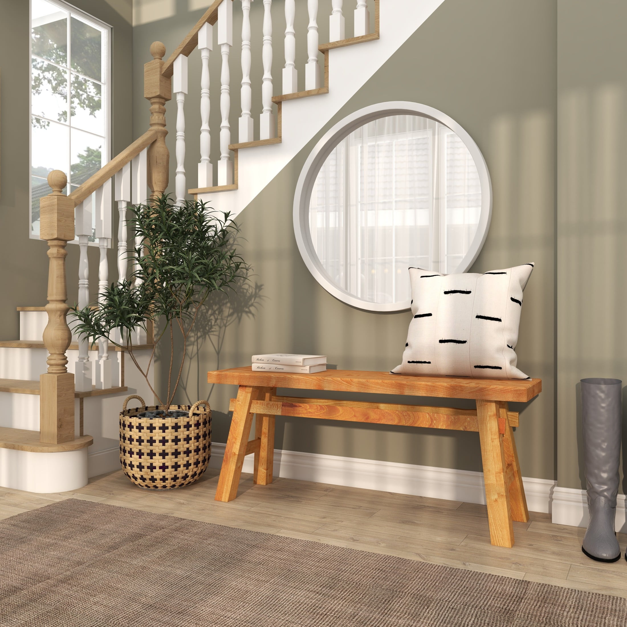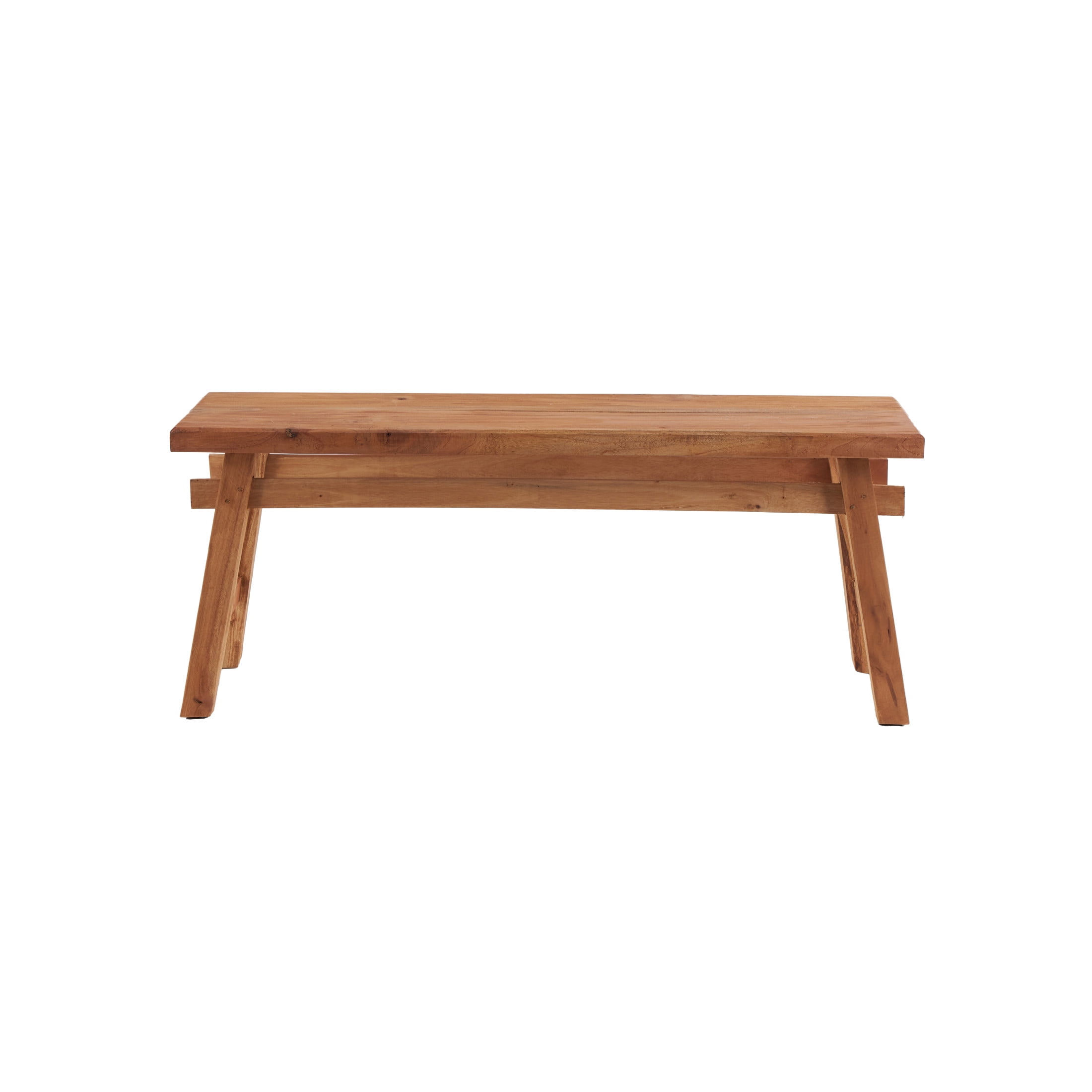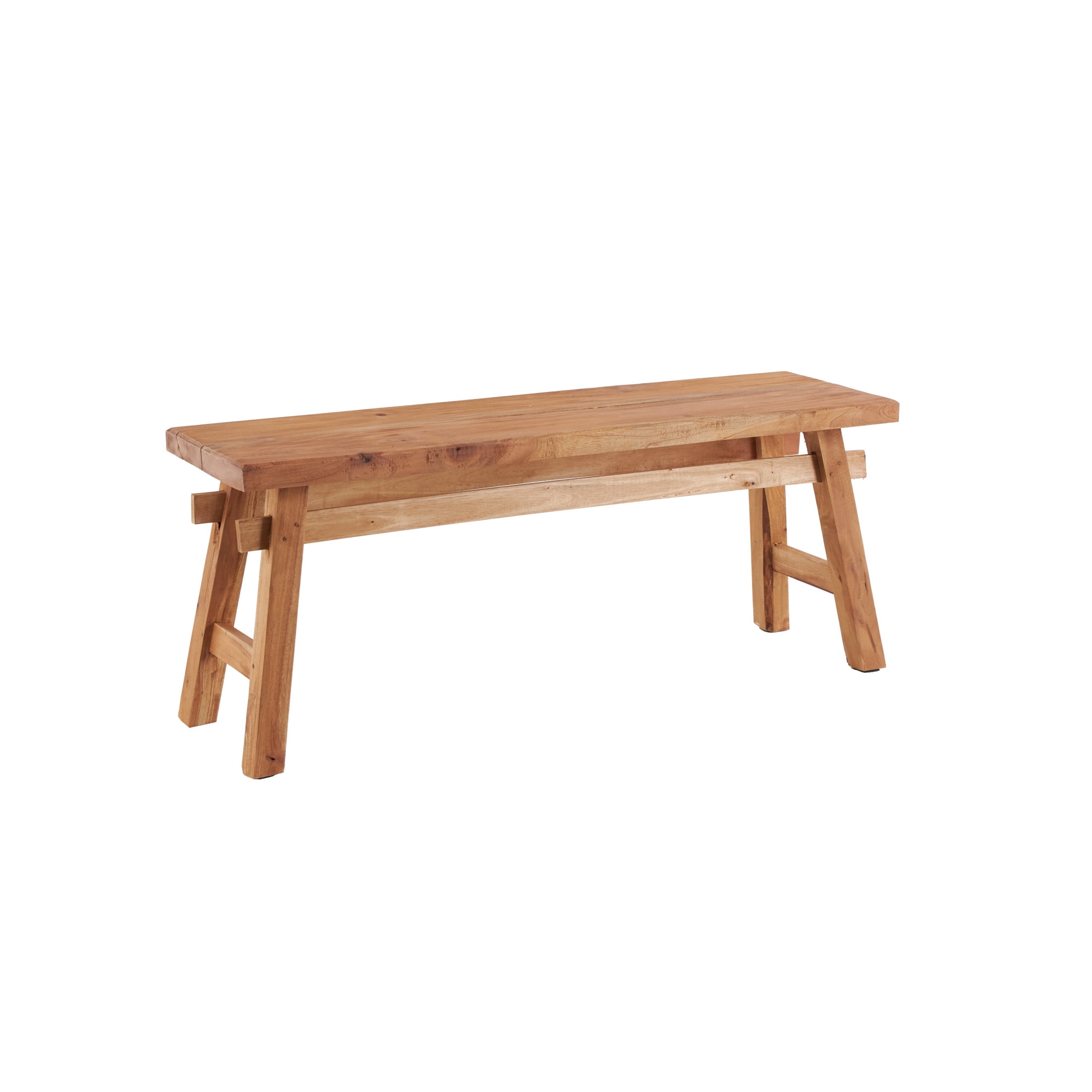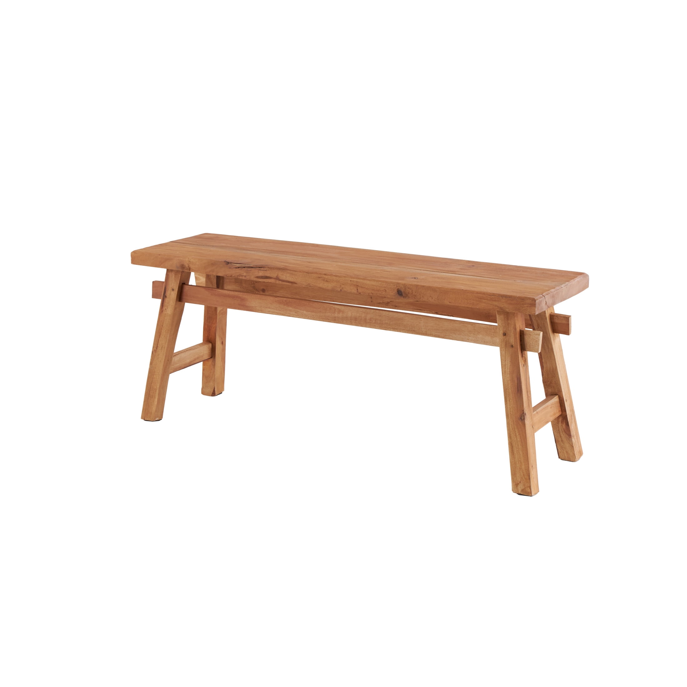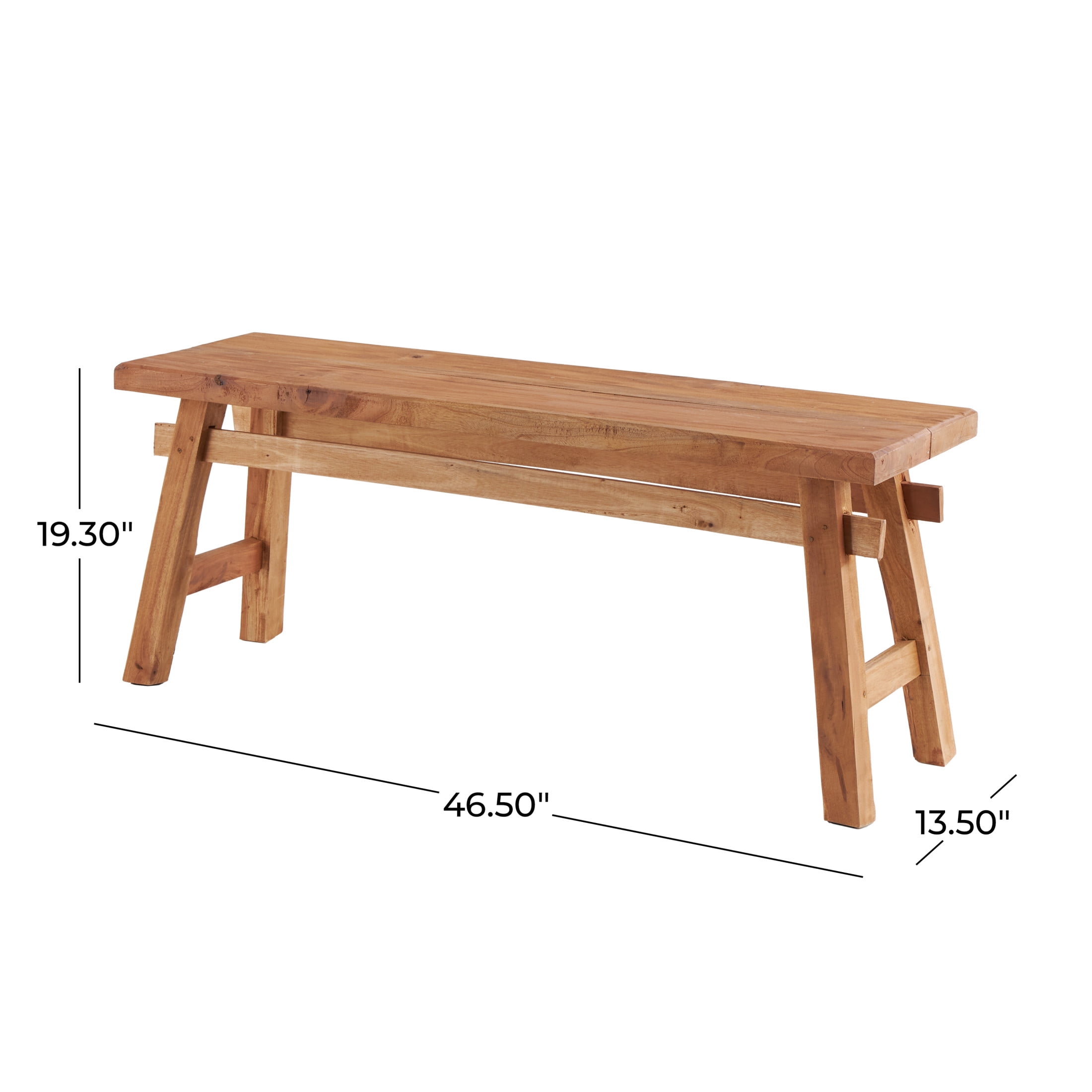 Designed with rugged beauty and an earthy charm, where natural simplicity, warmth, and organic materials create a wholesome atmosphere A combination of rustic and industrial style bench is made of a solid wood structure Long rustic wood bench features natural wood with a light brown finish Rectangular wooden indoor bench features angled legs in a trestle inspired structure with high under clearance The bench measures 46.5L x 12W x 21H inches, and weighs 20.35 lbs This brown wood bench accentuates a rectangular form Wipe clean with a dry cloth This wood bench is an assemblage of wood slats to form a single furniture Rustic style DecMode Wood Handmade Distressed Bench with High Trestle Legs, Brown makes a perfect addition to any home