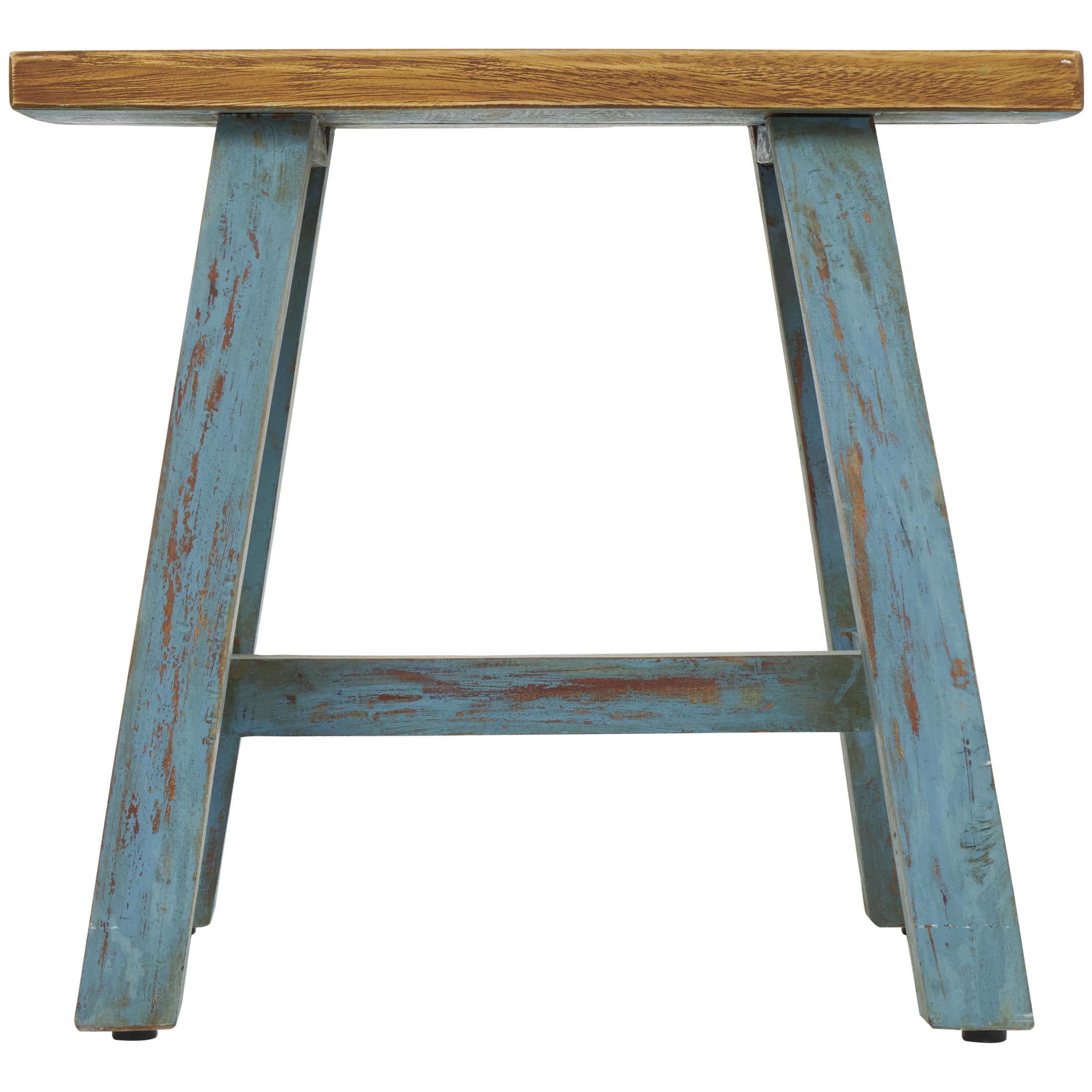 Infuse your home with cozy charm, where weathered textures, rustic finishes, and warm earthy tones create a wholesome atmosphere This blue living room stool is crafted from solid wood, ensuring longevity and sturdiness The rectangle stool for home decor showcases a light brown seat with a distressed blue leg base, creating a rustic feel The wood stool boasts a slender frame and wide smooth seat, combining durability with elegant style The blue wood stool measures 19.65L x 13.55W x 18.25H inches, and weighs 11.53 lbs The distressed blue chair stool features a wood grain rectangle seat supported by four legs with a trestle-inspired frame for added stability Wipe clean with a dry cloth The farmhouse ottoman foot rest features expertly carved wood pieces that have been securely mounted together for a robust structure Farmhouse style DecMode Wood Stool with Brown Wood Top, Blue makes a perfect addition to any home