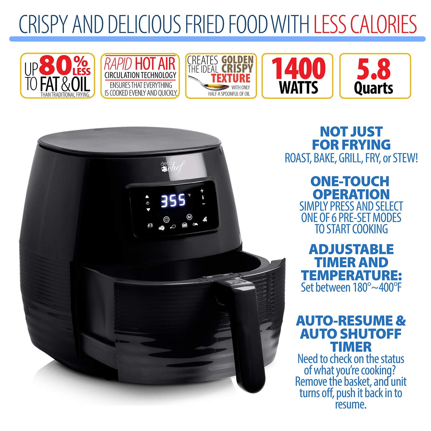 Deco Chef 5.8QT (19.3 Cup) Digital Electric Air Fryer with Accessories and Cookbook- Air Frying, Roasting, Baking, Crisping, and Reheating for Healthier and Faster Cooking (Black)