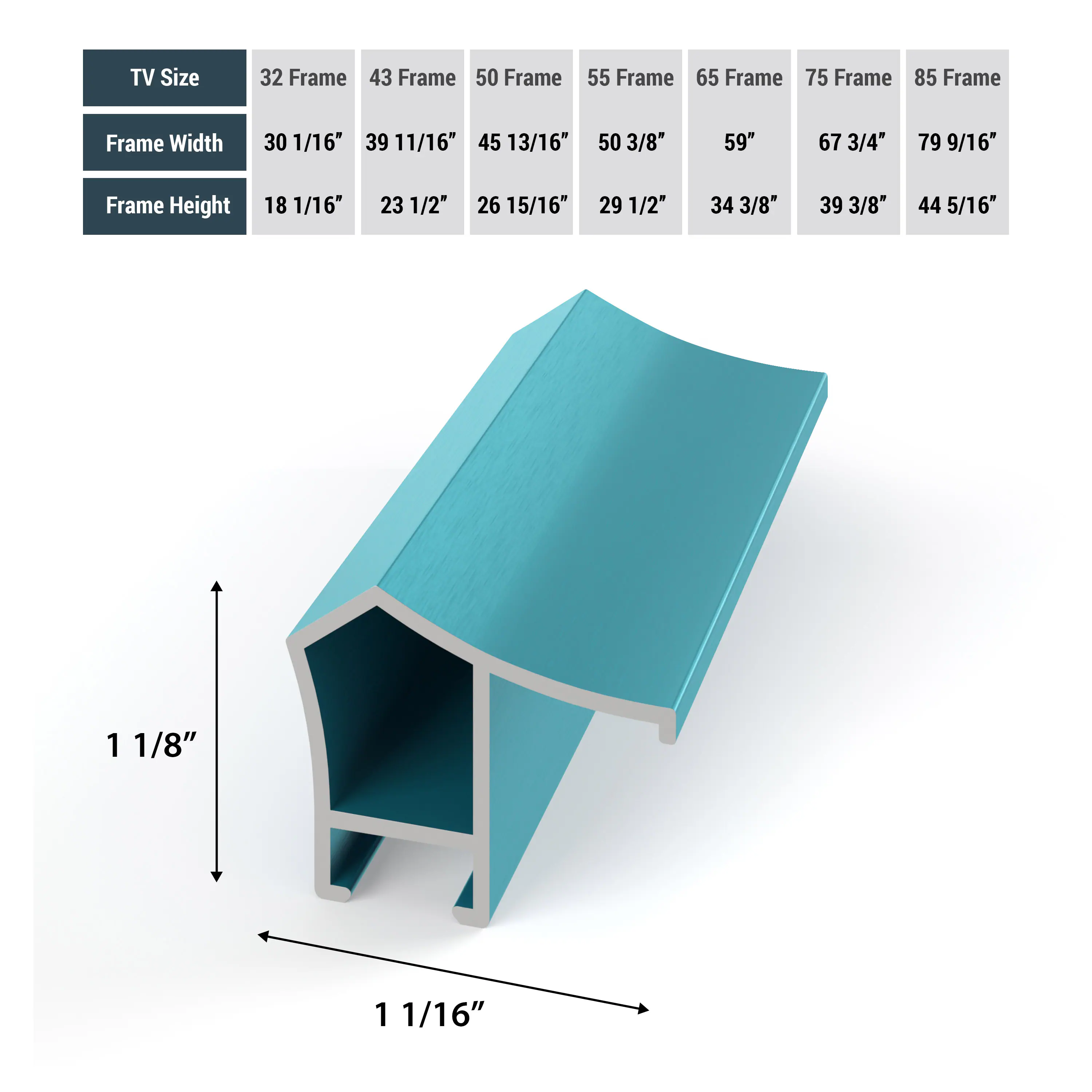 Elevate your Samsung Frame TV to the next level with our premium Alloy Bezels made of solid aluminum. Each Alloy Bezel easily snaps together and clips onto your TV in under 2 minutes. With each frame made of true aluminum, the metallic finish beautifully enhances your room through the deep turquoise finish. Our Alloy bezels are a great solution for not only contemporary decors where a sleek look is the perfect solution, but also they are great for tight spaces with the Alloy bezels at only 1.5″ wide. NOTE: Our Alloy Bezels are ONLY compatible with Samsung The Frame TVs. All alloy frames are entirely Made in the USA. The aluminum moulding is extruded and forged in Tennessee and each frame is hand made and tested in Massachusetts. The installation process couldn’t be easier. Simply connect the four corners using the provided corner keys then hook the frame onto the top edge of the TV and let go and watch as the side latches instantly click into place on your Samsung Frame TV. The entire process will take approximately 2 minutes. This item fits all Samsung The Frame and Frame Pro TV models from 2021-2025.