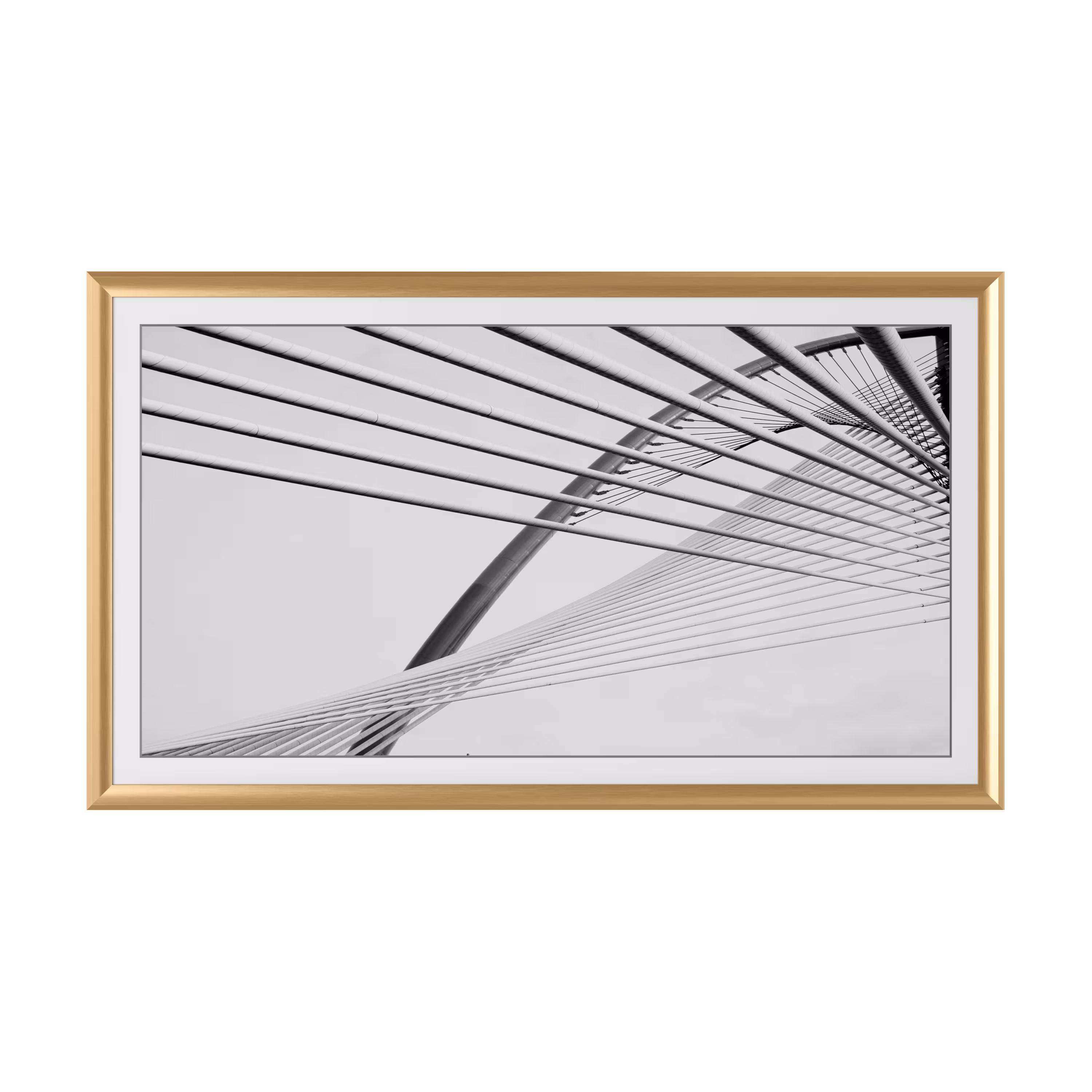 Elevate your Samsung Frame TV to the next level with our premium Alloy Bezels made of solid aluminum. Each Alloy Bezel easily snaps together and clips onto your TV in under 2 minutes. With each frame made of true aluminum, the metallic finish beautifully enhances your room through the deep anodized pale gold finish. Our Alloy bezels are a great solution for not only contemporary decors where a sleek look is the perfect solution, but also they are great for tight spaces with the Alloy bezels at only 1.5″ wide. NOTE: Our Alloy Bezels are ONLY compatible with Samsung The Frame TVs. All alloy frames are entirely Made in the USA. The aluminum moulding is extruded and forged in Tennessee and each frame is hand made and tested in Massachusetts. The installation process couldn’t be easier. Simply connect the four corners using the provided corner keys then hook the frame onto the top edge of the TV and let go and watch as the side latches instantly click into place on your Samsung Frame TV. The entire process will take approximately 2 minutes. This item fits all Samsung The Frame and Frame Pro TV models from 2021-2025.