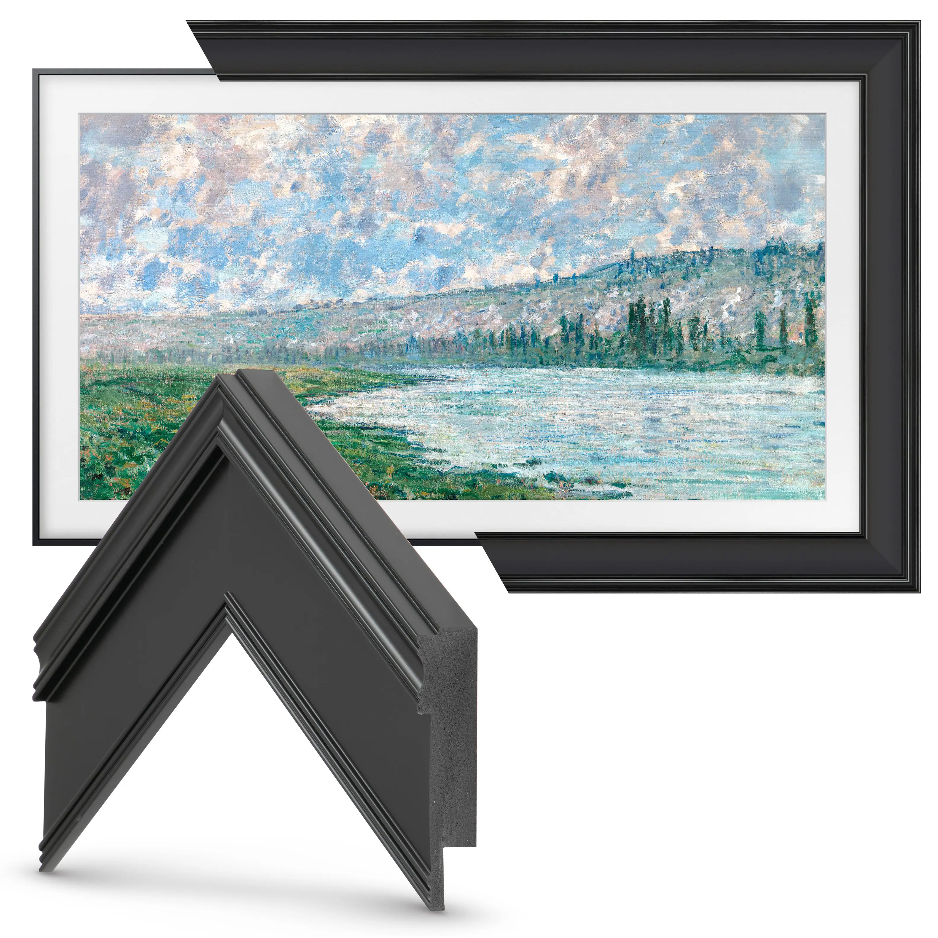 Samsung “The Frame” is a television that has redefined how TV’s impact décor. Now that the TV can be a work of art on a wall and incredibly thin, it’s only natural that it should be accompanied by a beautiful frame to complement the piece of art. The result, is the perfect harmony between technology and décor to to create the finishing component at the center point of your room. Discover our 16 Premiere Frames that are the cornerstone of our our Deco TV Frames line. Each frame magnetically assembles in under 2 minutes! This item fits all Samsung The Frame and Frame Pro TV models from 2021-2025.