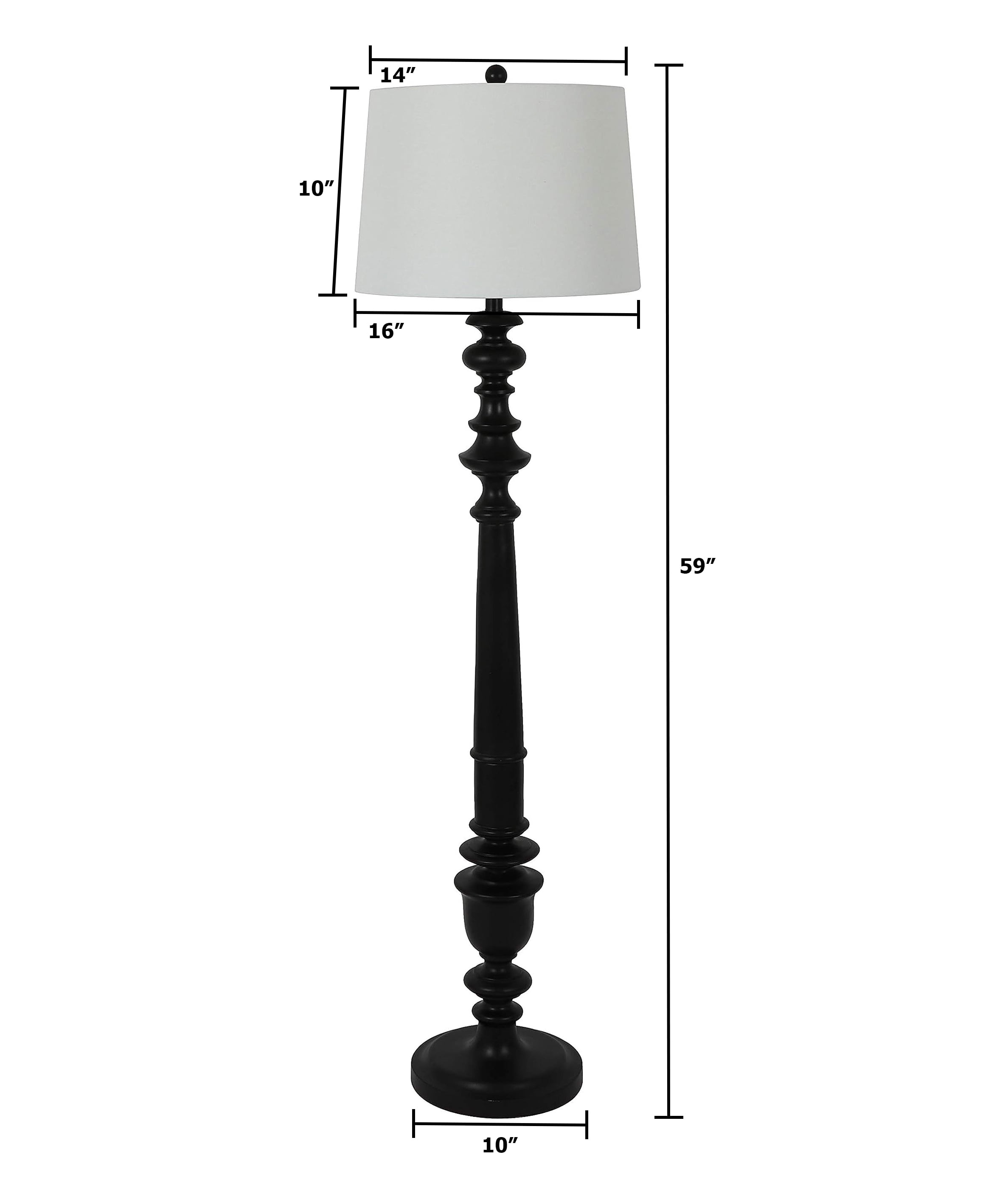 Traditional Charm, Modern Functionality (19″x19″x59″): This classic lamp features a timeless design in a versatile Satin Black finish that complements both traditional and modern décor styles. Transform your space: Classic floor lamp with a chic satin black finish elevates your bedroom or living room décor Effortless Assembly, Lasting Quality: This lamp comes with easy-to-follow instructions for a quick setup. The durable resin construction ensures long-lasting use. Warm & Functional Lighting: The lamp provides ample illumination, perfect for reading, working, or creating a warm and inviting atmosphere in your living room or bedroom. Value for Money: This stylish and practical lamp offers exceptional quality at an affordable price. Enhance the ambiance and functionality of your space with this smart investment.