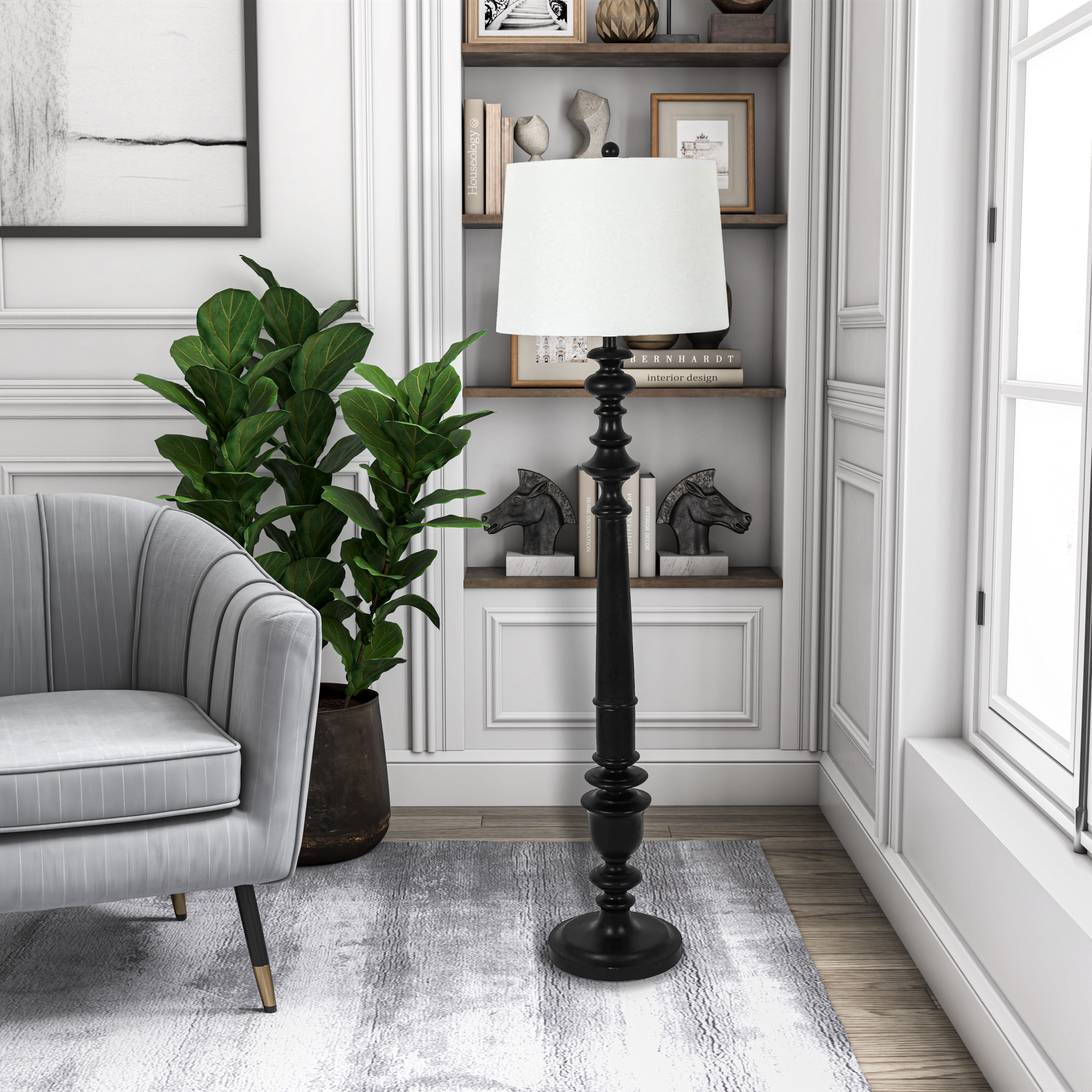 Decor Therapy Benjamin Traditional Resin Floor Lamp, 150 W, 19″ x 19″ x 59″- Satin Black