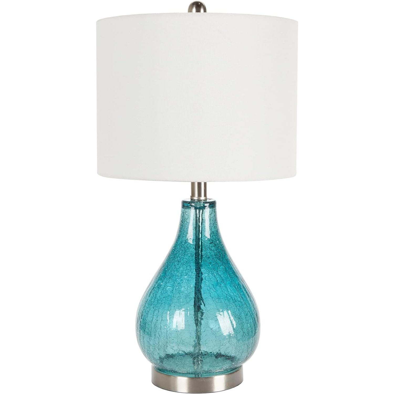 Decor Therapy Emerald Crackle Glass Table Lamps, Set of 2 Glass and Steel Lamps, Blue Green Finish
