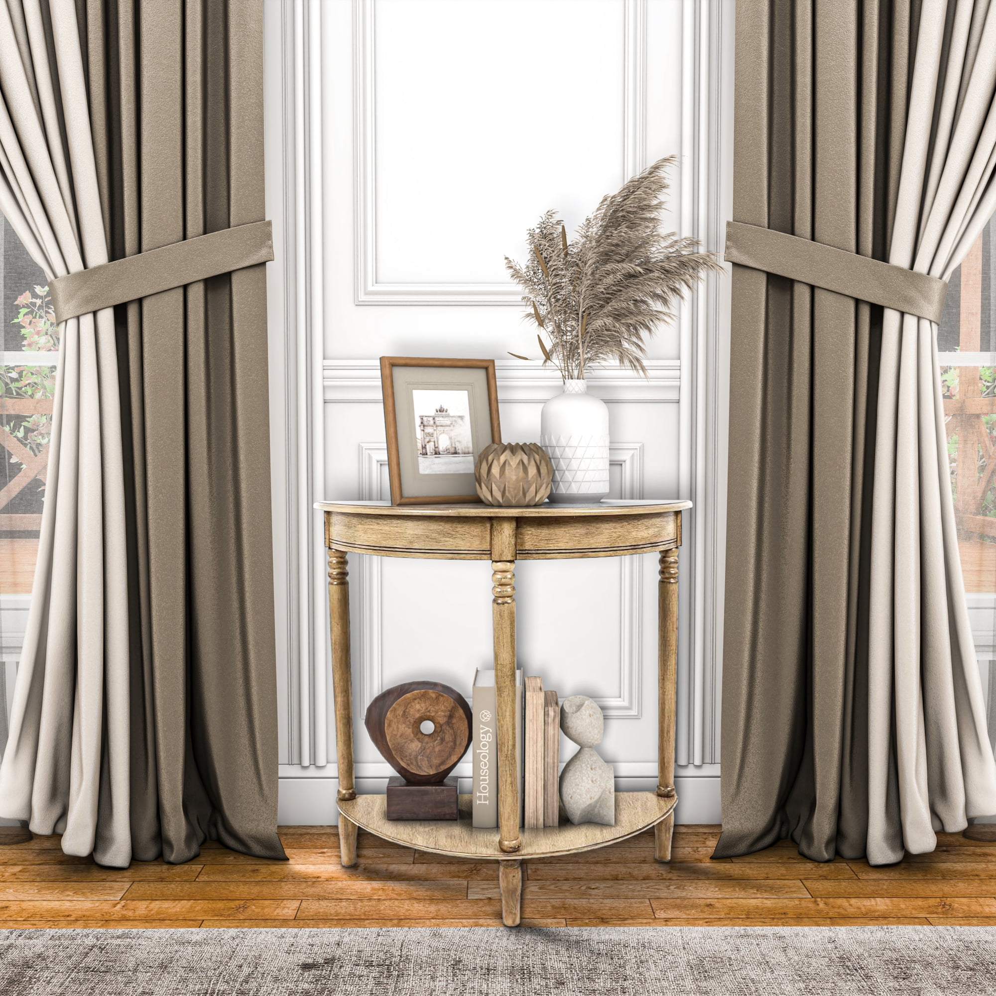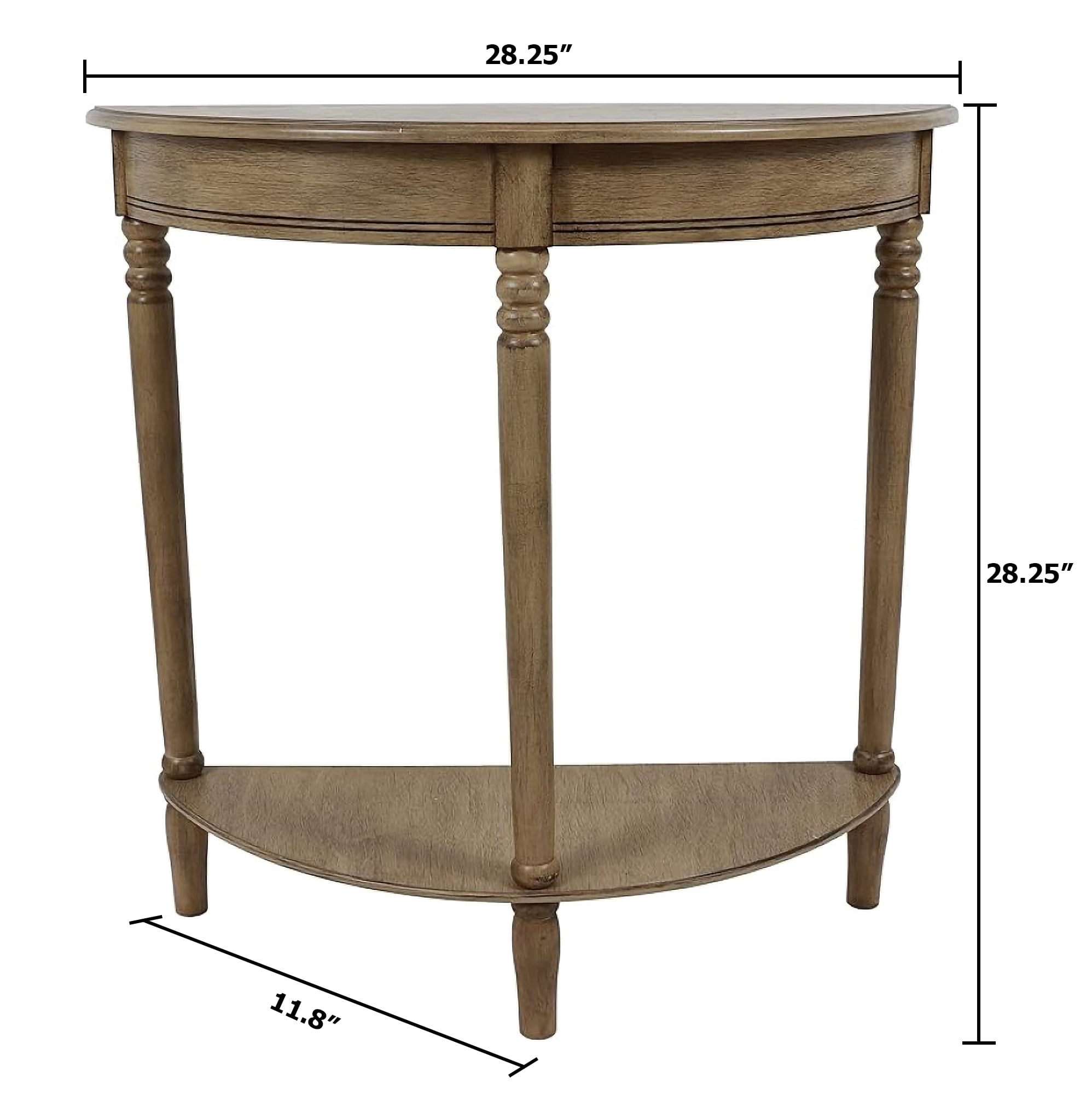 Space-Saving Design: The half-moon shape fits snugly against walls, maximizing floor space (28.5″ x 11.8″ x 28.5″). Its compact size makes it ideal for small entryways, hallways, or living areas. Dual Functionality: This versatile piece serves as both a storage shelf and a stylish side table. Use the lower shelf to store shoes, bags, books, or decorative items, while the tabletop provides a convenient surface for drinks, lamps, or other essentials. Extra Storage: The lower shelf provides additional space to keep your belongings organized and out of sight. It’s perfect for storing shoes, bags, books, or other everyday items. Effortless Assembly: The table comes with simple instructions and all necessary hardware for quick and easy assembly, saving you time and frustration. Elegant Style: The Sahara finish and farmhouse design add a touch of elegance and sophistication to any space. The warm wood tones and simple lines complement a variety of décor styles, from traditional to modern.