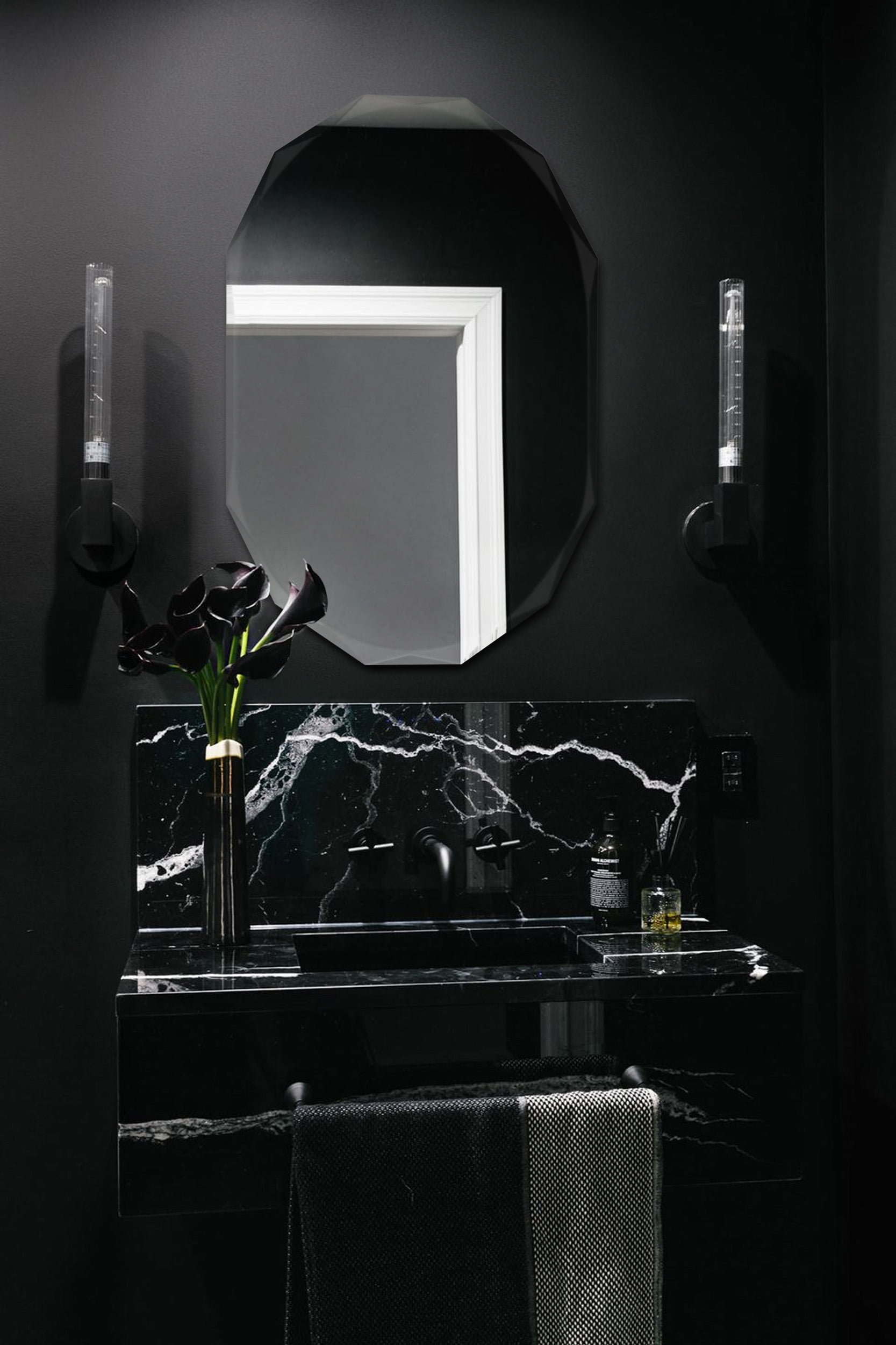 Renew and refresh your master bathroom or powder room with this oval frameless wall mirror. This bathroom mirror has unique double angle bevel that reflects light in all directions. This mirror features premium 5mm glass and a protective coating that helps prevent tarnishing and corrosion so ideal for high-humidity areas. Alone or in multiples, this decorative wall mirror is perfect for a quick update to your wall decor or the finishing touch in a bathroom renovation. When used in a bathroom this versatile mirror suits chrome, brushed nickel or matte black fixtures. Easily mount this mirror on a variety of surfaces, including tile and drywall. Works perfectly over vanities in a variety of sizes from 24 inches wide to double vanities. Also available in 22″x 28″ (SSM8002S)