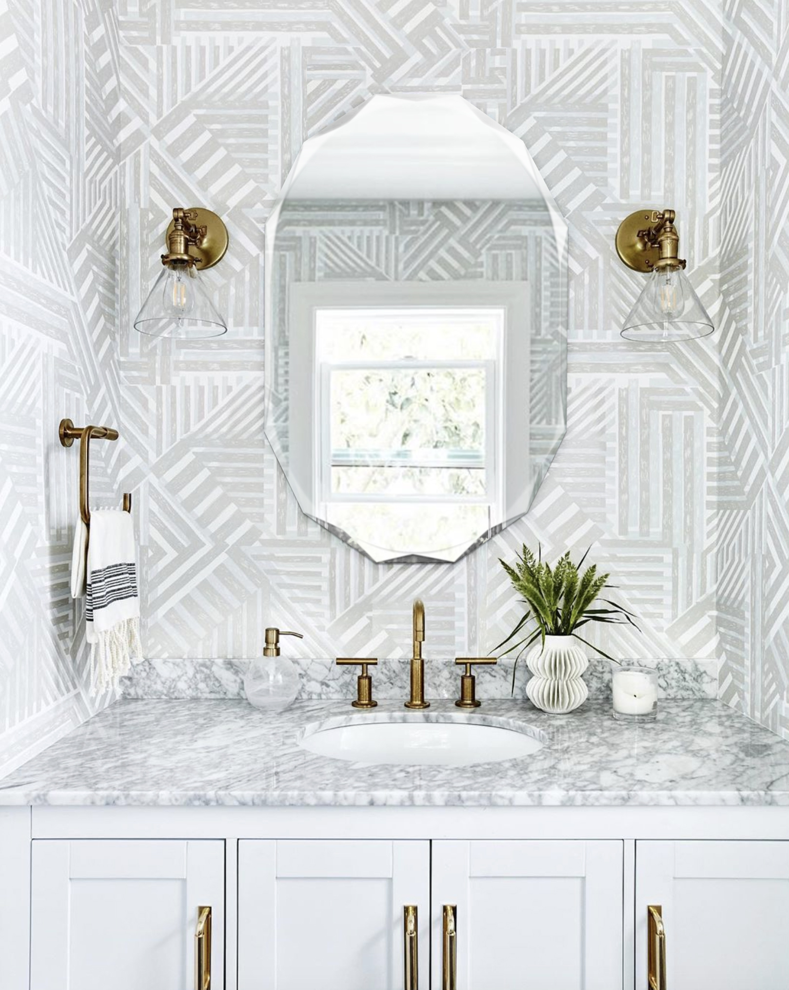 Decor Wonderland 23.6″ x 31.5″ Diamond Double Bevel Frameless Bathroom Vanity Mirror – Hangs Horizontally or Vertically