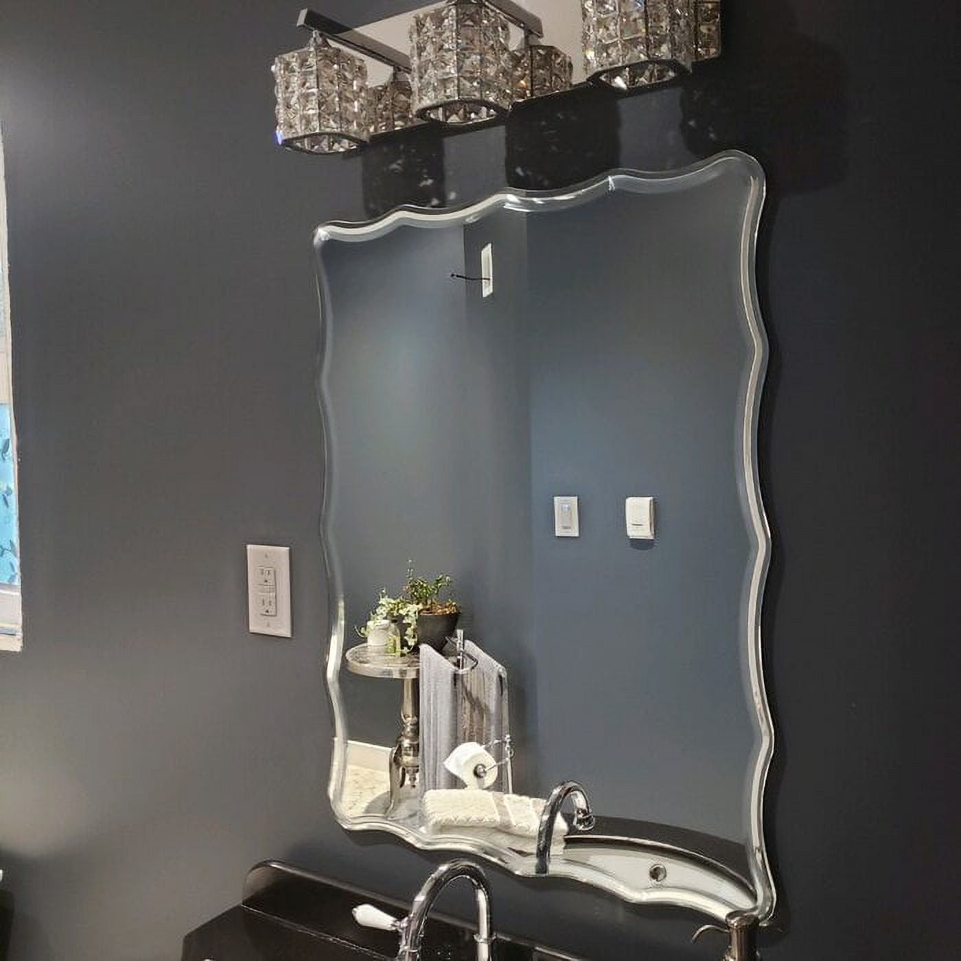 This mirror is made using real silver, not aluminum. Silver mirrors last longer and provide a warmer reflection. Distortion free. We use high quality glass so you wont get that funhouse effect that is common in inferior cheap mirrors The invisible mounting hardware Mounting hardware included Comes ready to hang Hangs vertically and horizontally Crafted of thick, strong 3/16 float glass Wipe clean with a damp cloth. Use only water or window-cleaner. Great for Bathroom mirror, Vanity mirror, Living Room mirror or Bedroom mirror Available in Large 31.5″ x 23.6″, XL 39.5″ x 23.6″, and Mini 22″ x 28″ Made from premium glass with silver for years of reliable use; Protective coating prevents corrosion and tarnish; Designed for safe and easy vertical or horizontal installation