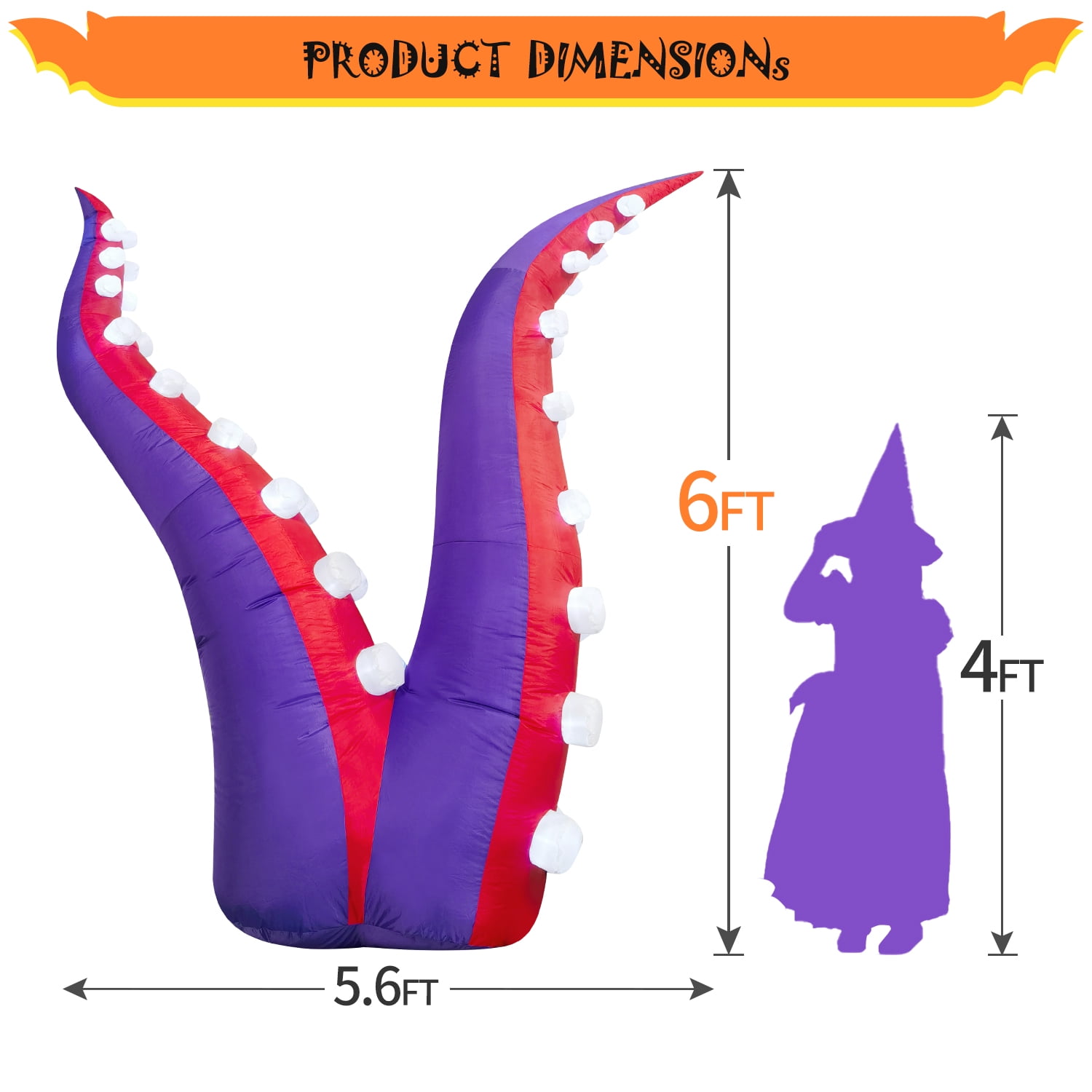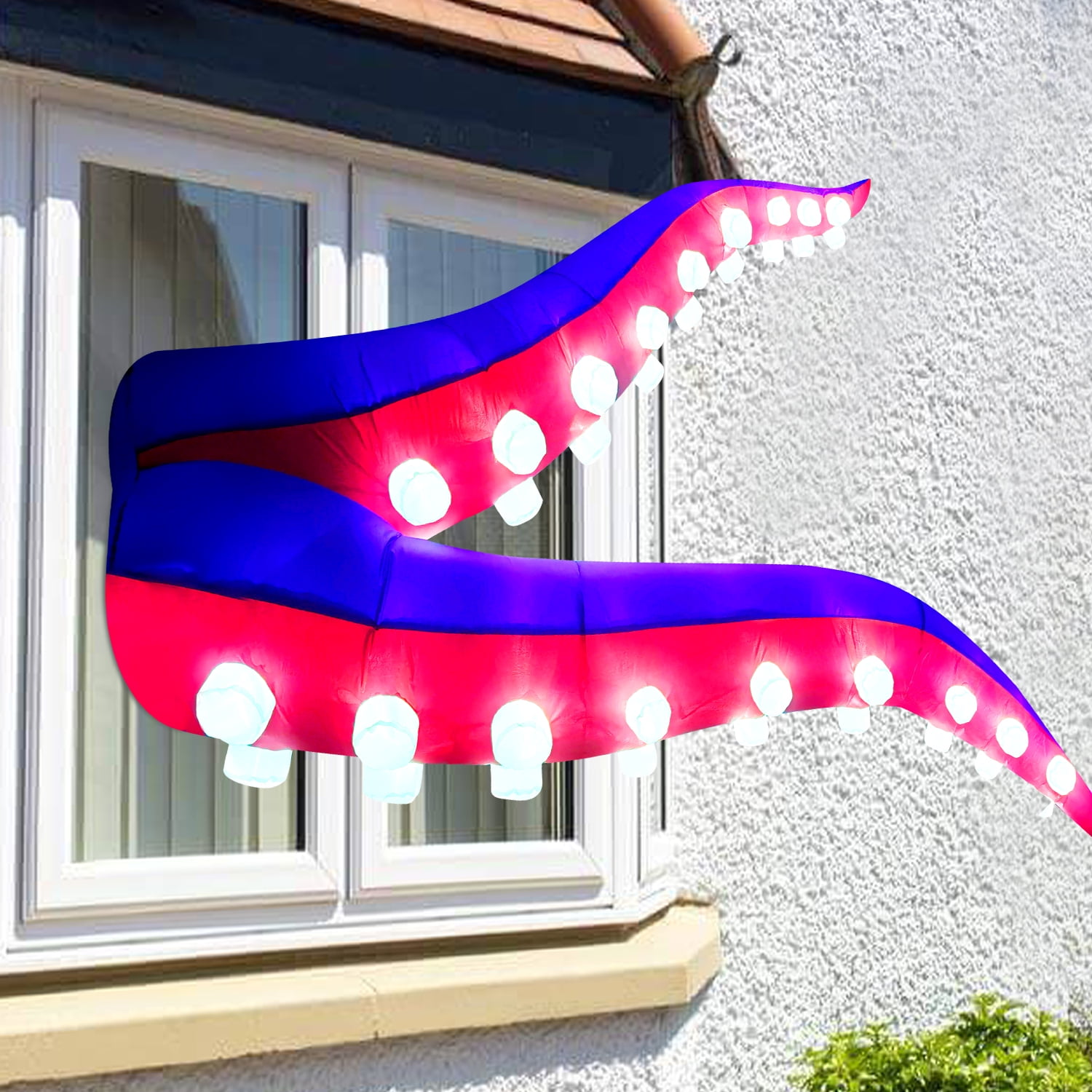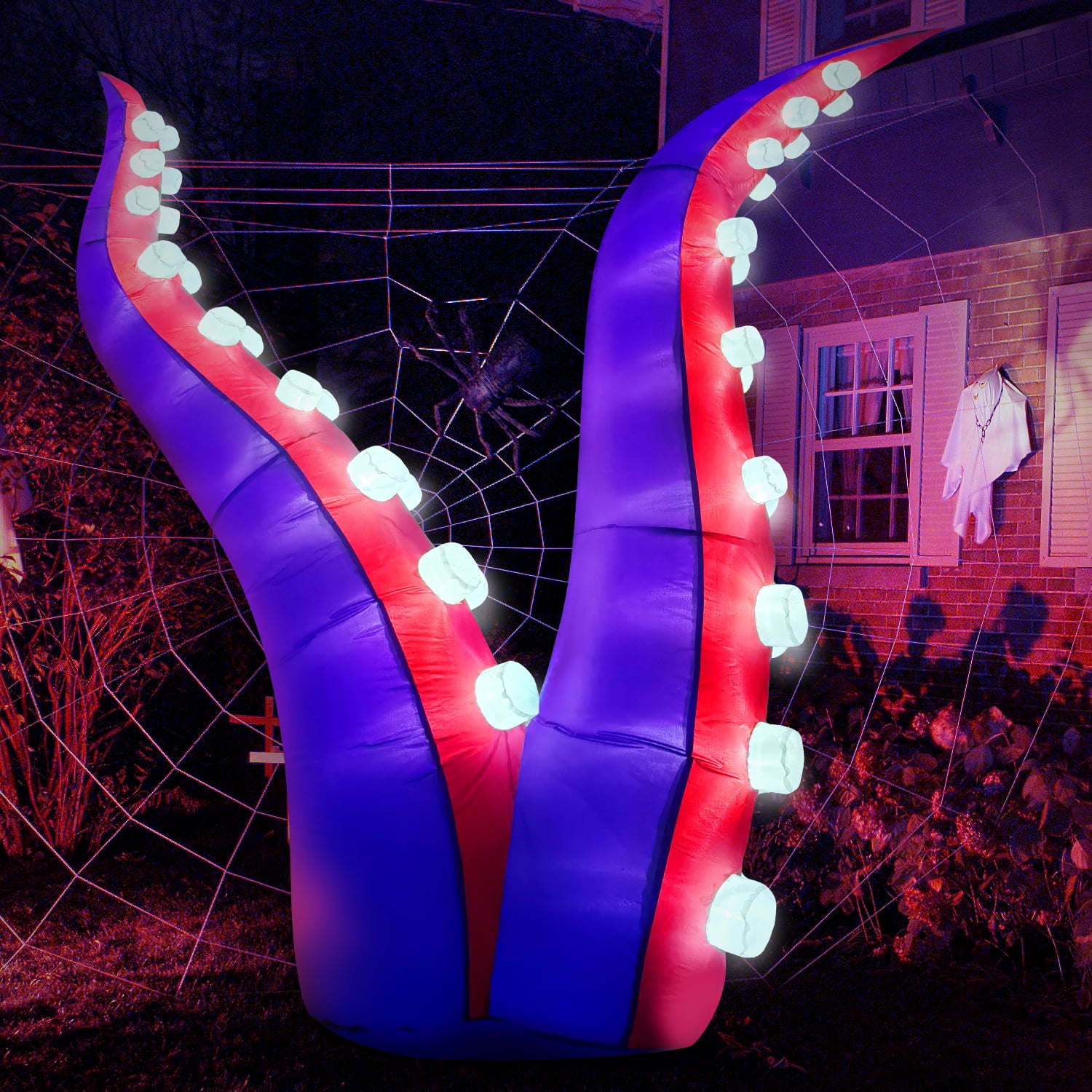 Features 36 dazzling LED lights that create a chilling ambiance, making each octopus suction cup visible from a distance Crafted with exceptional attention to detail using double-coated high-quality fabric, ensuring durability and longevity The sturdy octopus tentacles can sway with the wind, adding to the spooky Halloween atmosphere in your lawn, yard, or garden Easy setup and storage, with built-in water bags and ropes for stability to ensure the inflatable stays secure in windy conditions