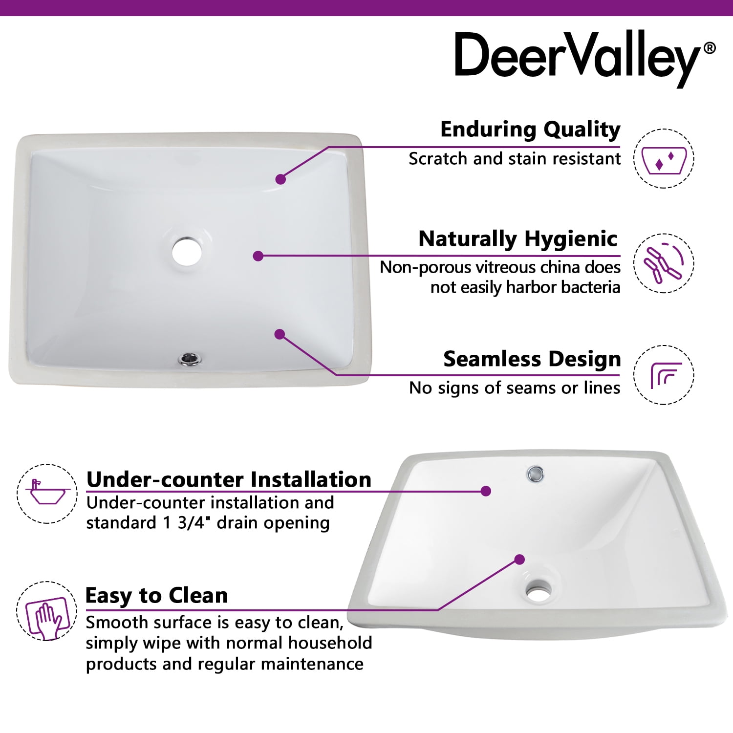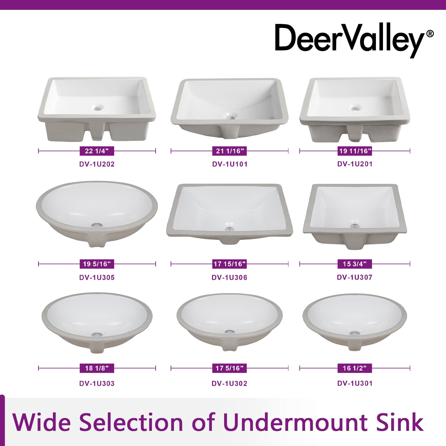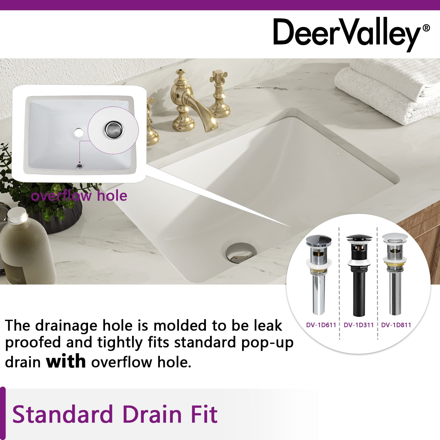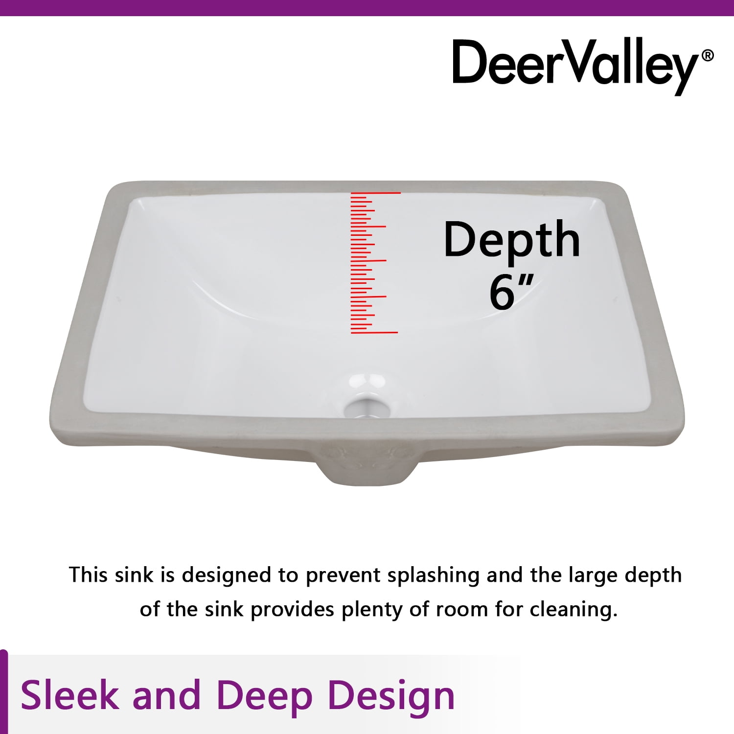 DeerValley DV-1U306 18″ x 13″ Rectangular Overflow Ceramic Undermount Bathroom Sink