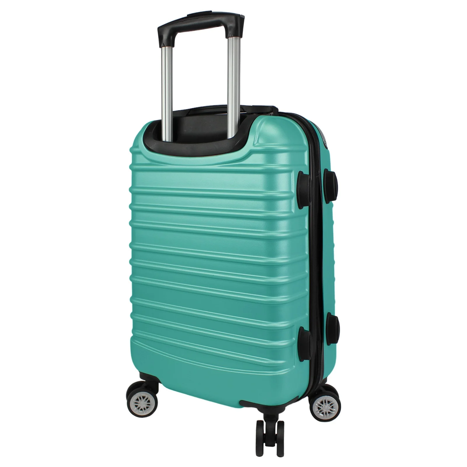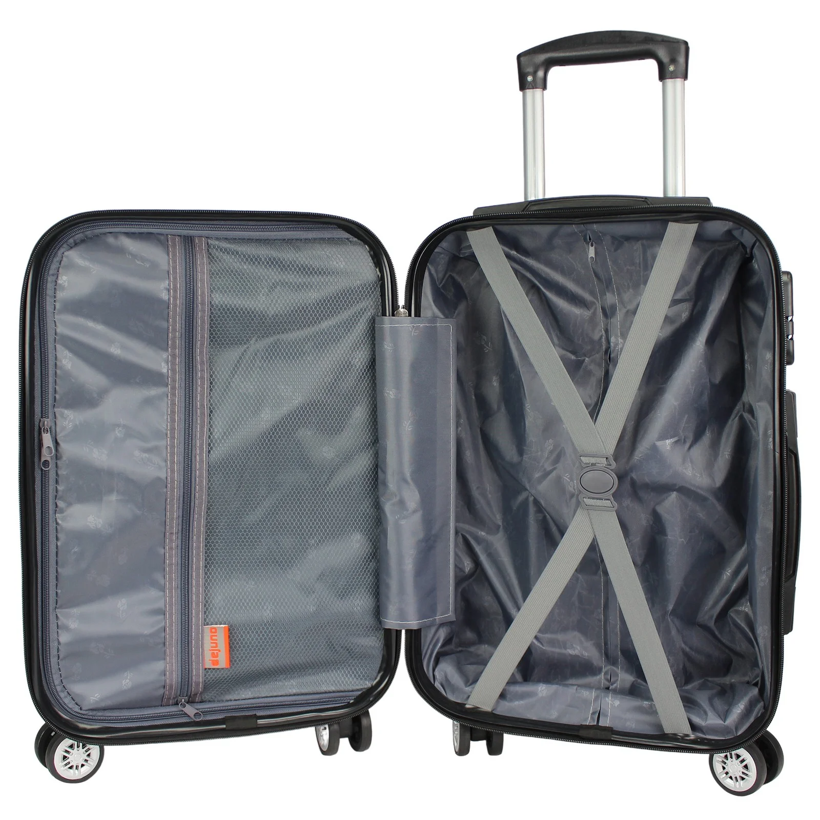 Durable ABS Shell Construction Front corner protectors Spinner wheels and push-button telescopic handle Padded top and side grip handles Dual interior zipper compartment, Large Mesh zipper pocket, small accessory pocket & compression straps 20″ Carry-On Dimensions: 20″ H x 13″ L x 8″ W – 7.5 lb 24″ Upright Dimensions: 24″ H x 15″ L x 9.5″ W – 9 lb 28″ Upright Dimensions: 28″ H x 17.5″ L x 11″ W – 10.3 lb