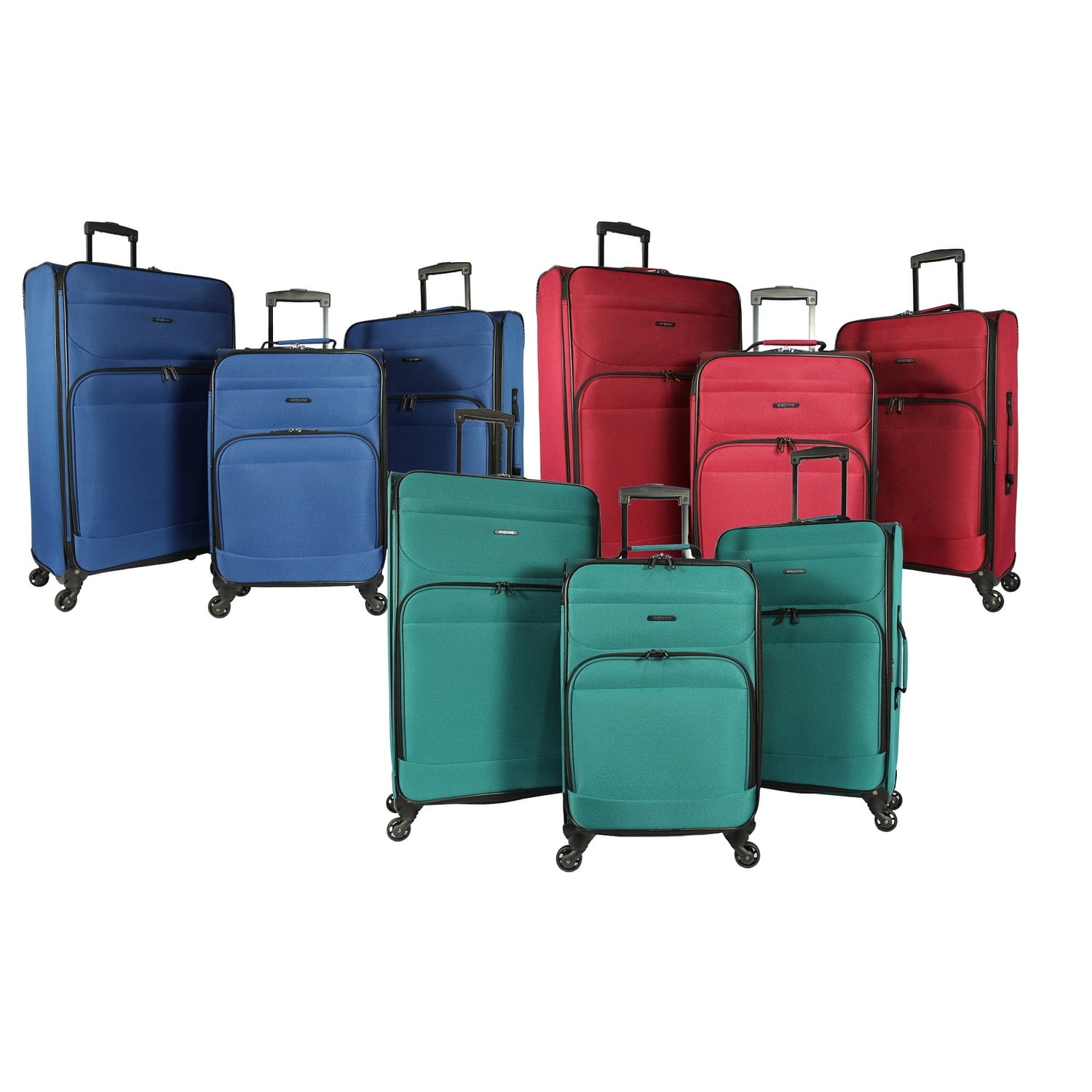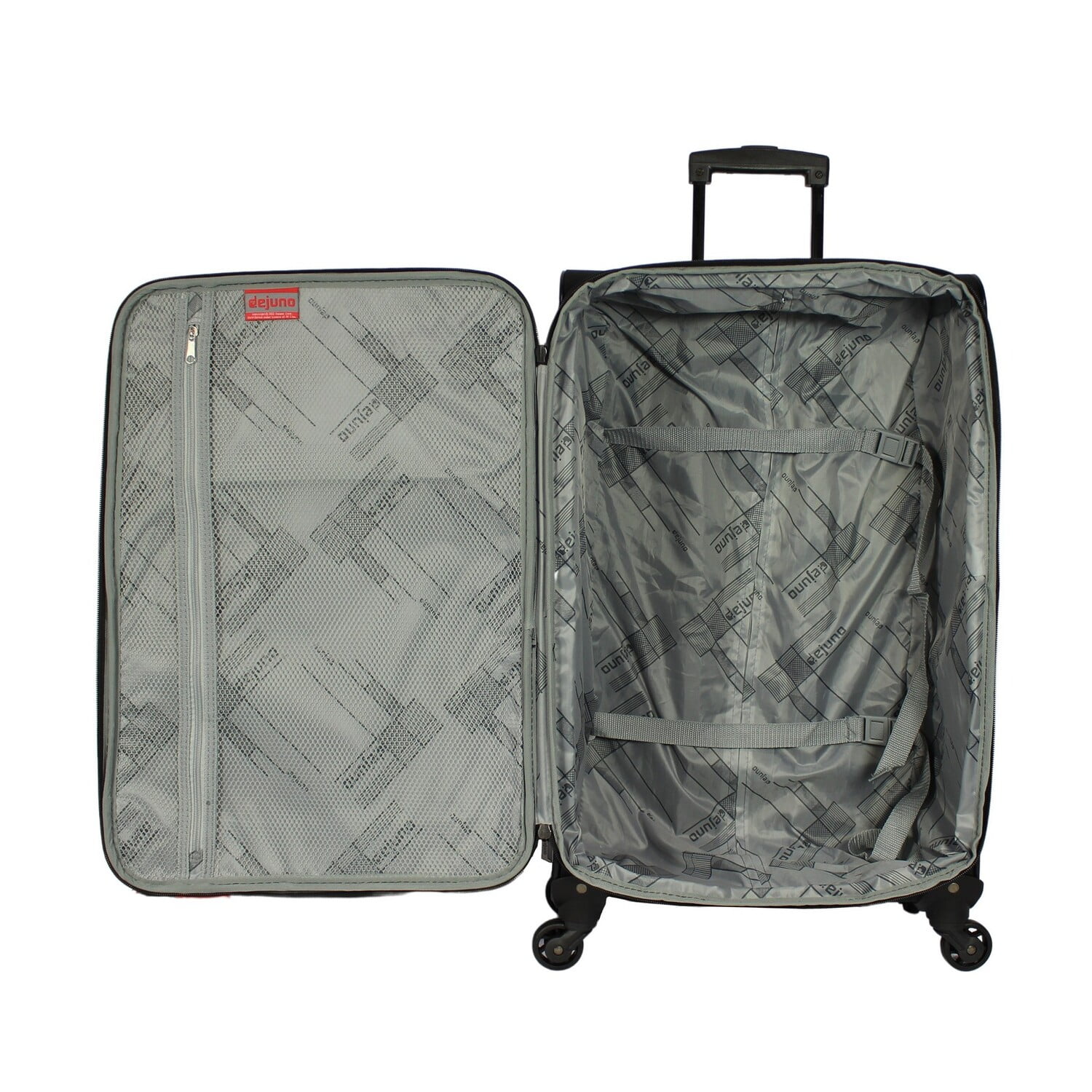 This Dejuno 3-Piece luggage set is made of durable and lightweight Polyester material and features four(4) spinner wheels, a retractable telescopic handle, two front zipper pockets, top and side grip handles a rear ID tag, and a fully lined interior with a large zipper pocket, and compression straps. It is lightweight and expands two inches for more packing capacity.