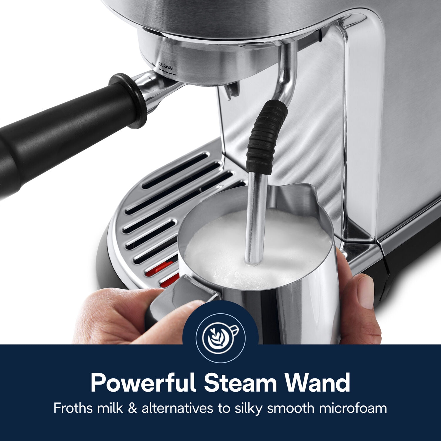 Designed to provide a simple, authentic brewing experience, the De’Longhi Dedica Maestro, features 3 preset recipes, single and double espresso and coffee. Indulge in crafting your perfect cup with 15 bar pressure that delivers quality, consistent results. With 3 different brewing temperatures, the Active Temperature Control is designed to match the water temperature to beans for optimal extraction. Achieve your ideal level of froth with the MyLatte Art steam wand, from rich creamy foam for latte art to a thick foam for cappuccinos. The Dedica Maestro includes a professional tamper, stainless steel portafilter, espresso shelf, and double wall filters – allowing you to expertly extract single and double shots of espresso. With a fast heat up time and 54 oz water tank, save time and brew your perfect drink quickly. The fully stainless steel finish makes clean up simple. With hands-on crafting experience, the Dedica Maestro is the perfect addition to any countertop.