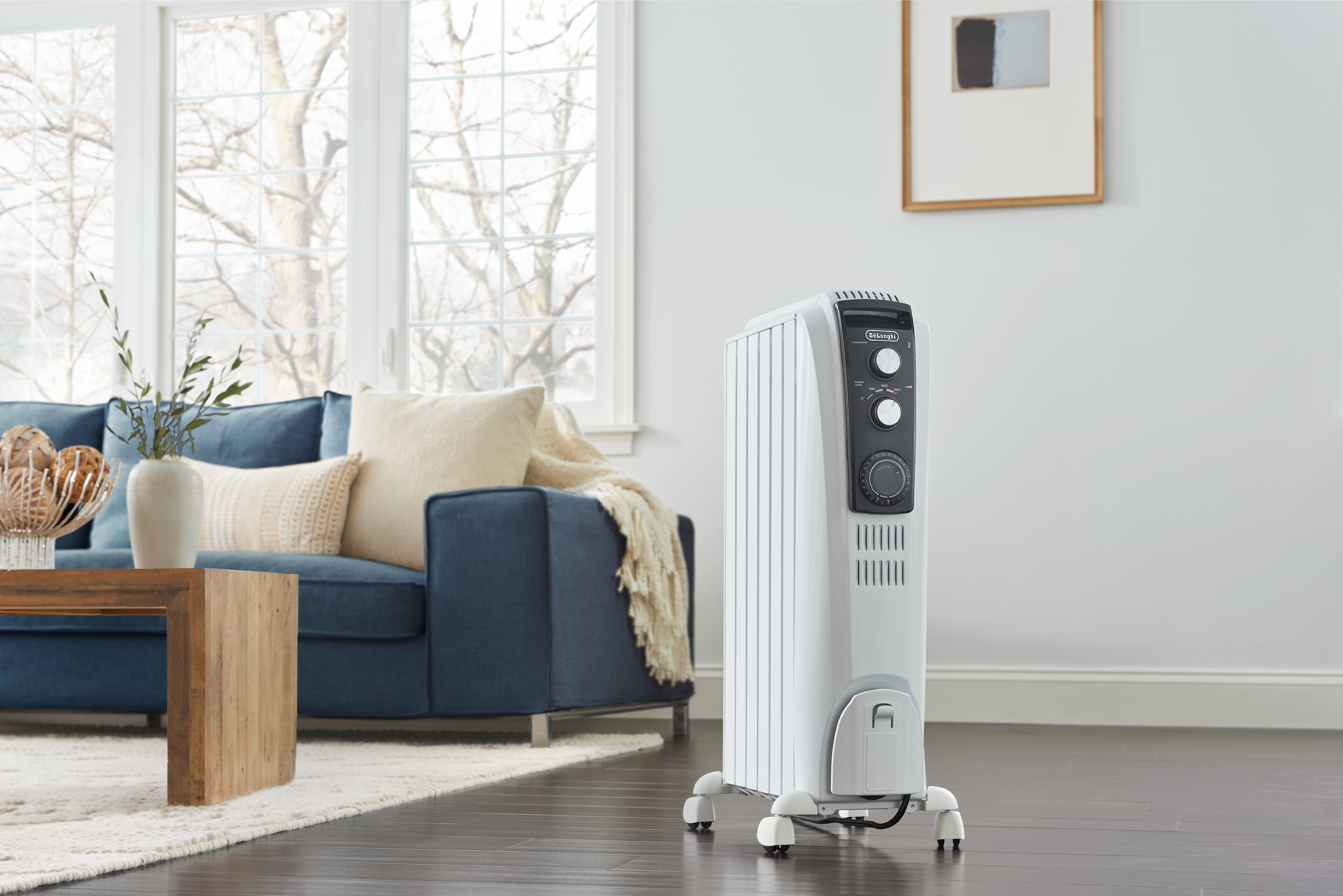 SAVE ENERGY, HEAT ONLY THE ROOM YOU’RE IN By cooling only the room you’re in vs. your entire home, you’ll save energy. Easy-to-use control panel for selection of temperature and power level with programmable 24 hour timer. De’Longhi Exclusive: 75% more radiant surface area than RadiaS due to unique design*- the more radiant surface= the more heat transferred to you and your environment. Quick Heat Up: Warm air is rapidly distributed thanks to the increased convection heating effect and exclusive battery design. Better Heating- delivers gentle heat minimizing dry air, creating a better breathing environment that is more allergy friendly with no fan to stir up dust, pollen and dander. Integrated handle and control panel allow you to easily operate and relocate your heater at any time during or after use. Ergonomic Portability: Enjoy easy movement from room to room thanks to ergonomic front and rear handles Exclusive Smart Snap wheels require no installation and are rubber coated for smooth transition between surfaces. 1500 watts of Long lasting, quiet heat for small to medium spaces. Built-in Safety Elements: Important safety features include child lock and a thermal cut-off function that turns off the machine in case of overheating. Additionally, anti-freeze setting automatically switches your heater on in cold weather to help prevent frozen pipes. Durable & Low Maintenance: High quality steel assembly and permanently-sealed diathermic oil reservoir never needs refilling. A specialized multilayered painting process provides a complete, corrosive resistant finish.